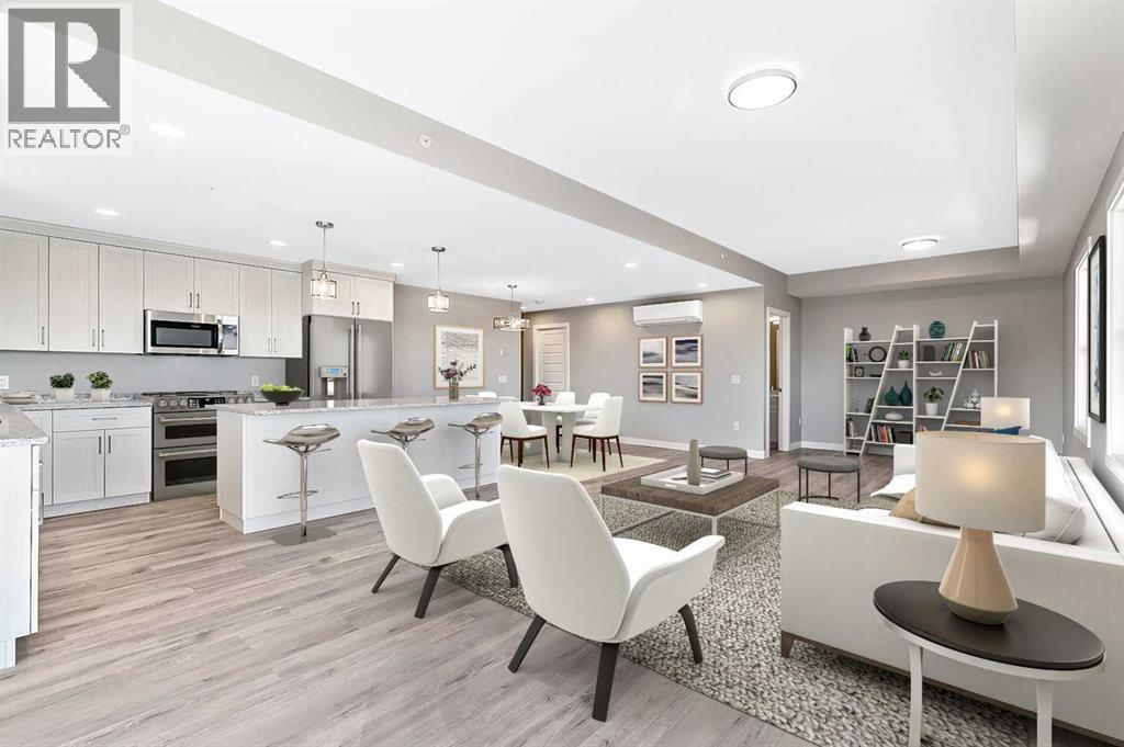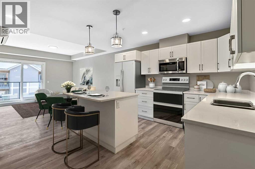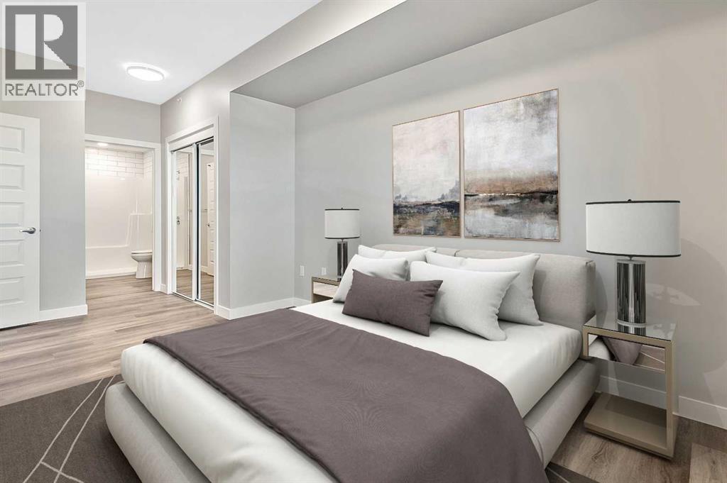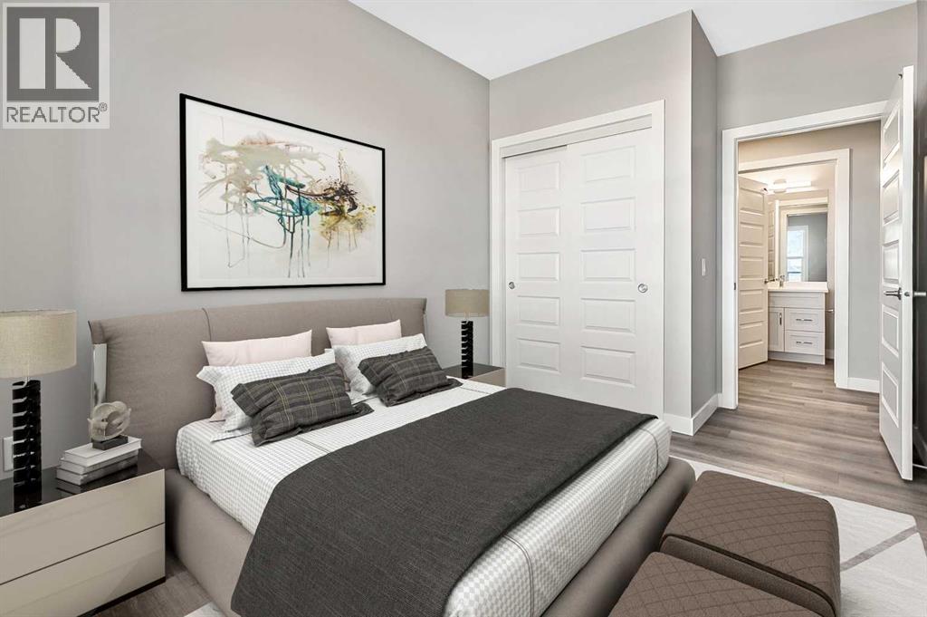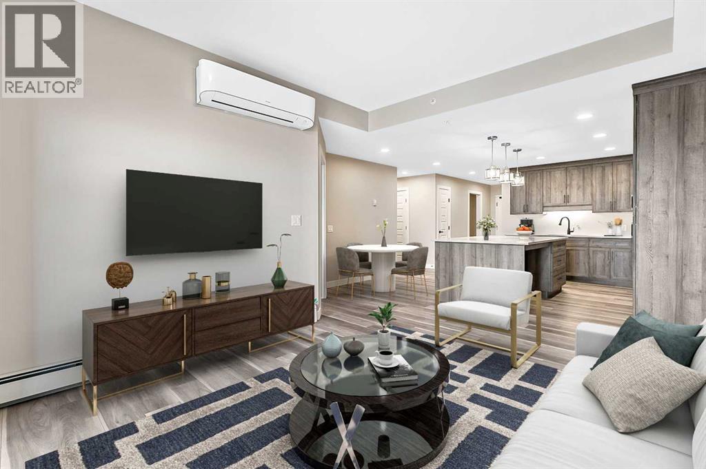 Welcome to modern condo living designed for comfort, quality, and convenience. Construction to begin Spring of 2026! This well-appointed residence offers 9-foot ceilings, 8-inch hollowcore concrete floors, and a dual-wall construction system, providing exceptional durability and superior soundproofing.The open-concept kitchen is finished with quartz countertops, a large island with power and pendant lighting, built-in microwave and dishwasher, and a water line to the refrigerator for an ice maker—perfect for both everyday living and entertaining. Luxury vinyl plank flooring flows through the main living areas, with soft carpeted bedrooms offering a warm and comfortable retreat.Enjoy year-round comfort with split air conditioning units, LED lighting throughout, and the convenience of a gas line for your BBQ on the balcony. Each unit includes a private storage room accessible directly from the balcony, adding rare and practical extra space. The building offers thoughtful amenities including indoor heated parking, optional exterior garage units, a pet wash, designated outdoor pet relief and smoking areas, and a EV charging station. A professional decorating consultation is also included to help personalize your new home. Buyers have a rare opportunity to select finishings and tailor the space to their personal style. The Condo fees are 245.35 per month, and provide excellent value. They include heat, water, sewer, garbage collection, common area maintenance, building insurance, reserve fund contributions, water softening, groundskeeping, and snow removal—allowing for worry-free ownership.Ideal for professionals, downsizers, or investors seeking quality construction and low-maintenance living in a well-managed community. Listing photos are virtual staging and/or artists renderings. Information/Meet the builder session happening April 24 5:30-7:30 at 901 13th st SW in the milestone room! (id:63190)
