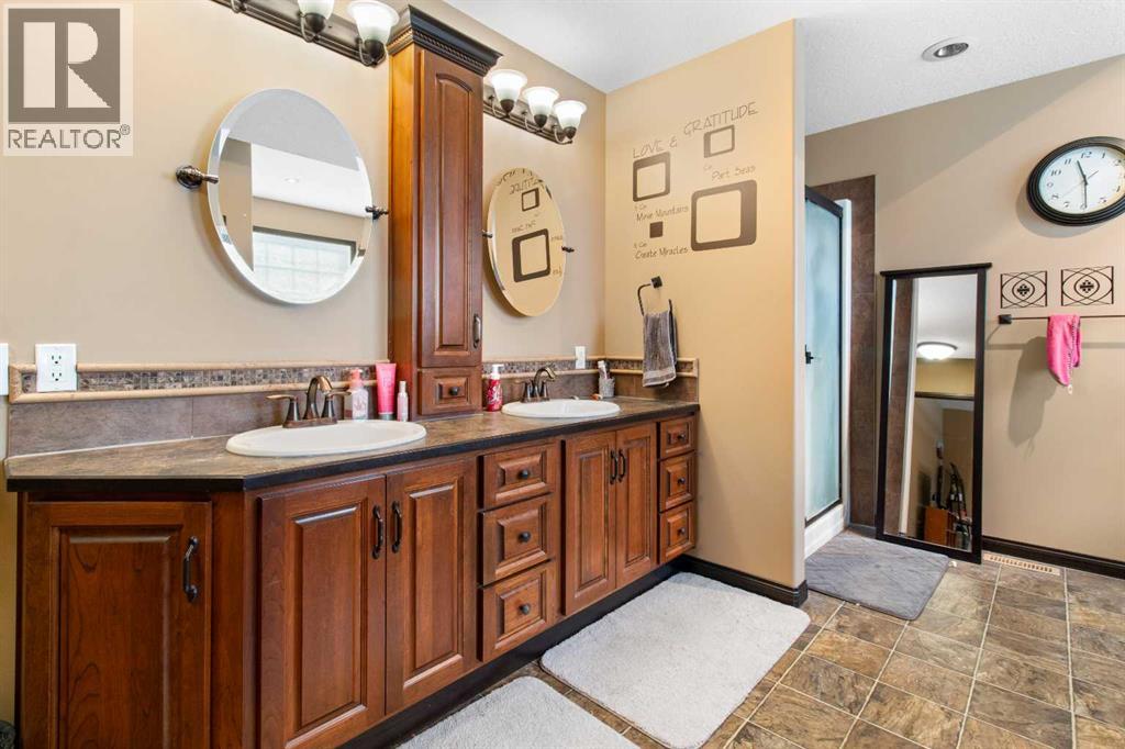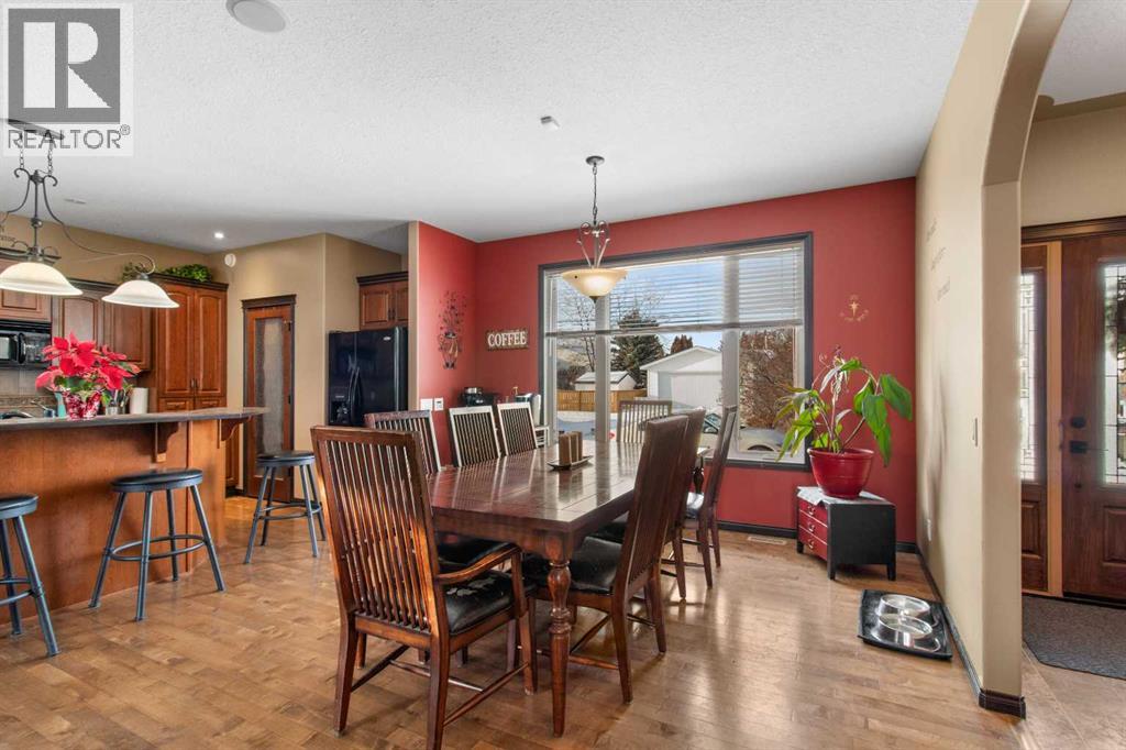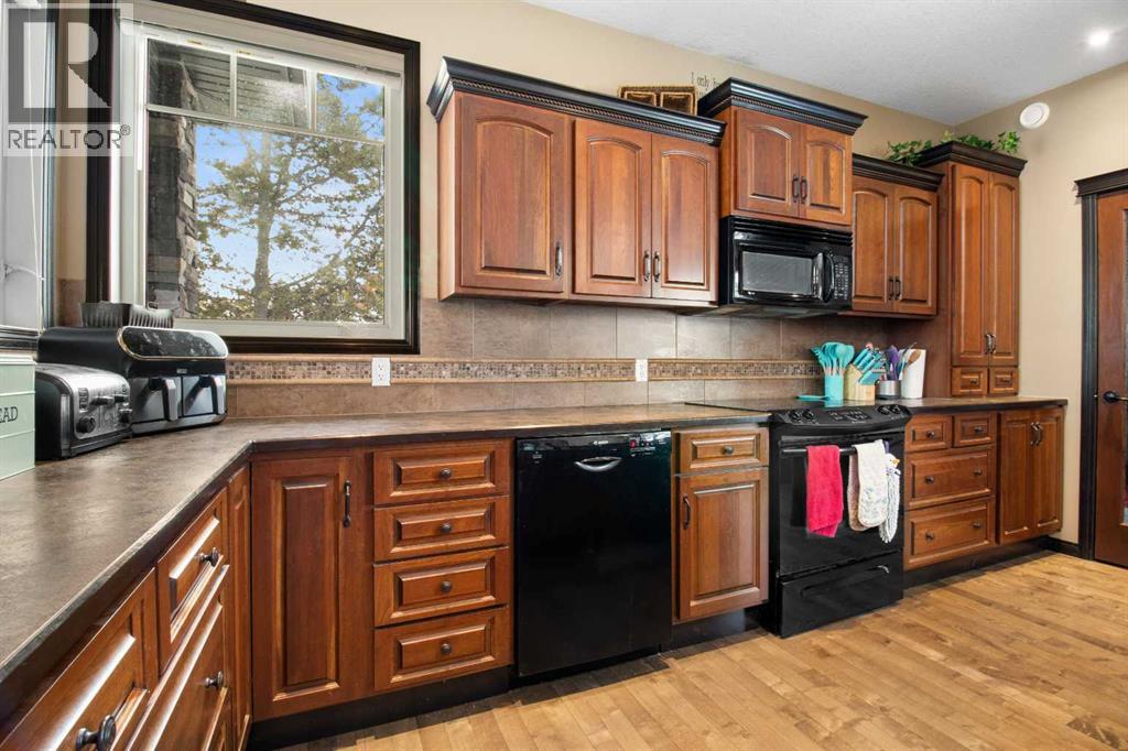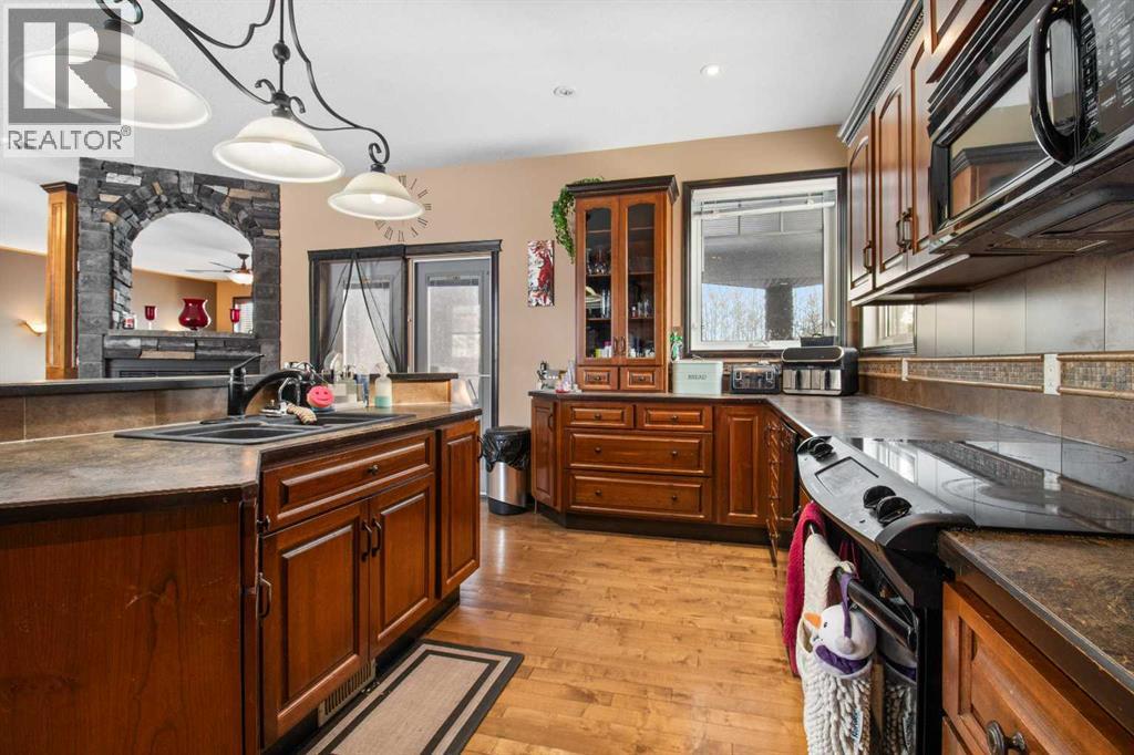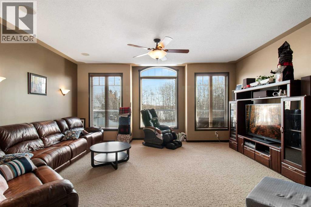 Welcome to this beautiful custom built home on just over half an acre of property. Coming in through the foyer brings you to a large kitchen and dining room area with corner pantry, center island with sinks and plenty of storage underneath, plenty of countertop and loads of cabinets. Strolling down the hall we will find a sunken living room with a double sided gas fireplace and large windows to capture the sunlight in the mornings. A little farther brings us to a large primary bedroom with an ensuite like no other. Double vanity sinks, shower, a large relaxing tub and a huge walk in closet. Another bedroom, a 2 piece bathroom and full laundry room complete the main floor. As well as the Entrance to the 1500 + sq ft heated garage that has room for 4 vehicles, toys, tools and storage, as well as a sitting area to gather with the neighbors. Upstairs takes us to another bedroom / office, with a walk in closet, a four piece bathroom and a family room. The partially finished basement with underfloor heat has been framed and wired for future finishing of bedrooms and family room but used mainly for storage at the moment. The 18x20 covered deck off the kitchen, with storage underneath, has been home to many calm nights of socializing with friends and family while listening to the birds and watching the wildlife walk through town. Very peaceful acreage type living but in town. This home is tied into water from the town, has its own septic tank and field, RV parking out back with the RV plug to power up your unit. For future building there is also power, water and another septic tank in place for a future shop building. Recent upgrades include a Hot water Tank 3 years ago, the furnace for the main floor was replaced 3 years ago but furnace for the upstairs is original. Come to Delburne and view this beautiful home that is a block from the golf course. (id:63190)