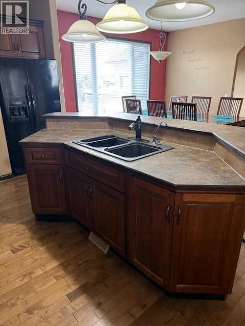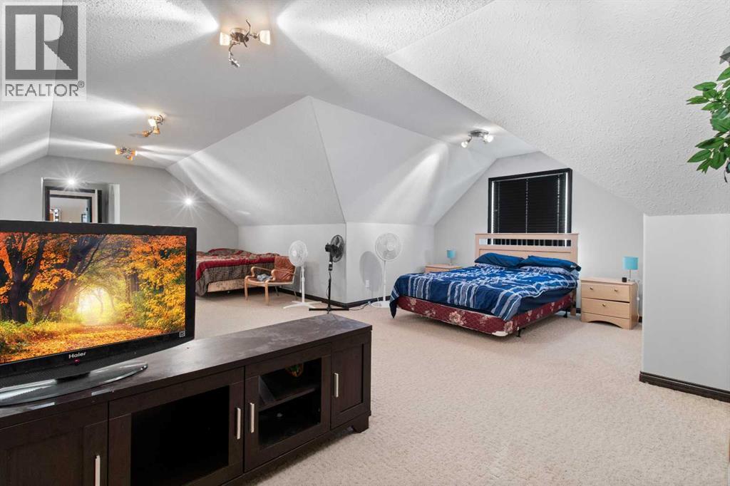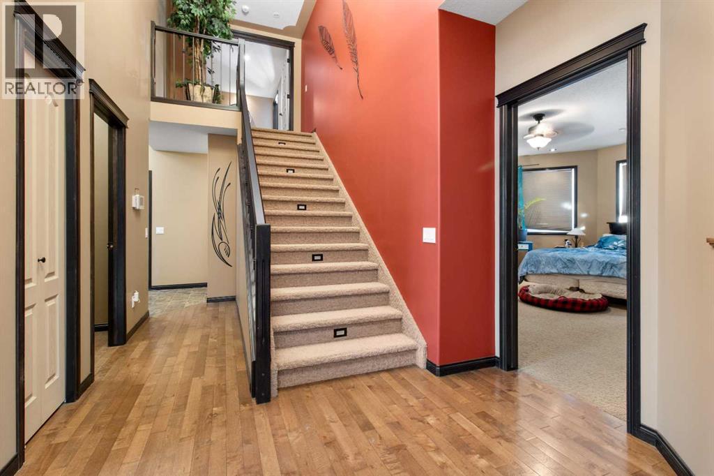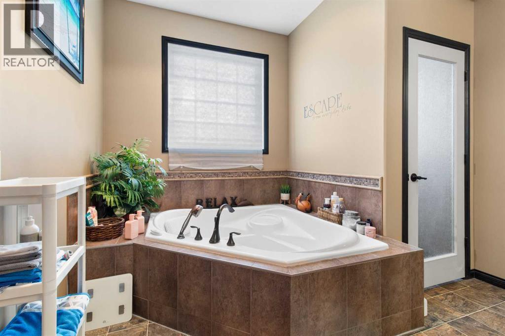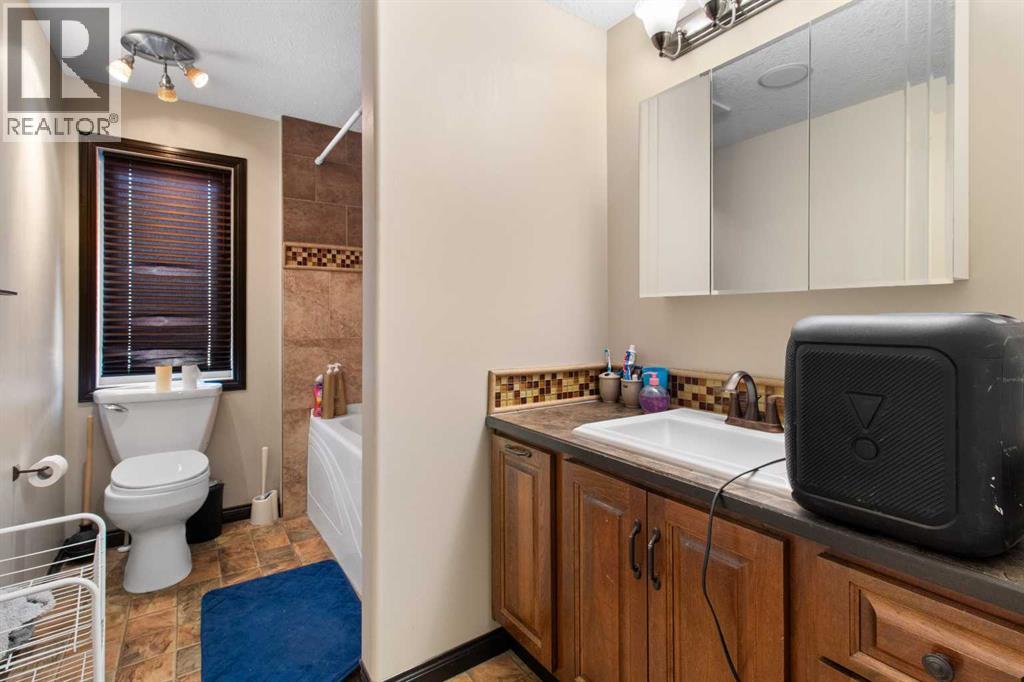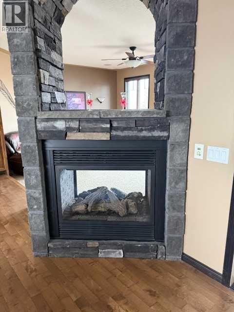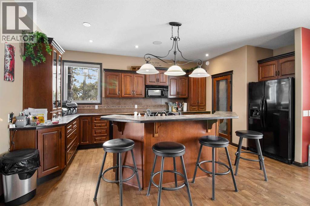 Welcome to this beautiful custom built home on just over half an acre of property. Coming in through the foyer brings you to a large kitchen and dining room area with corner pantry, center island with sinks and plenty of storage underneath, plenty of countertop and loads of cabinets. Strolling down the hall we will find a sunken living room with a double sided gas fireplace and large windows to capture the sunlight in the mornings. A little farther brings us to a large primary bedroom with an ensuite like no other. Double vanity sinks, shower, a large relaxing tub and a huge walk in closet. Another bedroom, a 2 piece bathroom and full laundry room complete the main floor. As well as the Entrance to the 1500 + sq ft heated garage that has room for 4 vehicles, toys, tools and storage, as well as a sitting area to gather with the neighbors. Upstairs takes us to another bedroom / office, with a walk in closet, a four piece bathroom and a family room. The partially finished basement with underfloor heat has been framed and wired for future finishing of bedrooms and family room but used mainly for storage at the moment. The 18x20 covered deck off the kitchen, with storage underneath, has been home to many calm nights of socializing with friends and family while listening to the birds and watching the wildlife walk through town. Very peaceful acreage type living but in town. This home is tied into water from the town, has its own septic tank and field, RV parking out back with the RV plug to power up your unit. For future building there is also power, water and another septic tank in place for a future shop building. Recent upgrades include a Hot water Tank 3 years ago, the furnace for the main floor was replaced 3 years ago but furnace for the upstairs is original. Come to Delburne and view this beautiful home that is a block from the golf course. (id:63190)