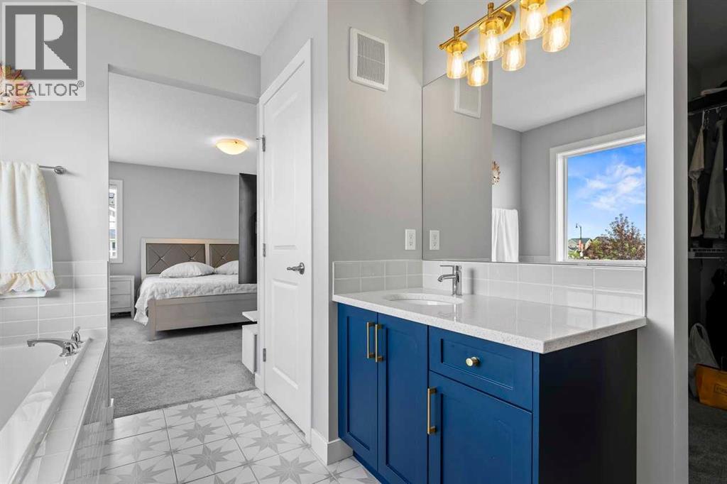 Welcome home to this bright, beautifully upgraded 3-bedroom gem in the heart of Sunset Ridge! Perfectly set on a spacious corner lot with plenty of extra parking, this home immediately impresses with its 9’ ceilings, rich engineered hardwood floors, and an abundance of natural light streaming through the large main-floor windows. Step into the open-concept main level, where the gourmet kitchen takes center stage with its premium builder’s appliance package, striking quartz island, and sleek matching quartz counters in both the ensuite and main bath. The sunny dining area flows seamlessly onto your west-facing backyard—an ideal spot to unwind and soak in stunning evening sunsets. The great room offers a warm and welcoming atmosphere, complete with a modern electric fireplace. A versatile main-floor flex room with elegant 8-foot double doors adds even more comfort and functionality—perfect for a home office, play space, or creative studio.Head upstairs to find a bright and spacious bonus room, perfect as a second family hangout or homework hub. The primary suite feels like a private retreat, featuring a spa-inspired 5-piece ensuite and a generous walk-in closet. Two additional bedrooms and a beautifully finished main bath complete this thoughtfully designed upper level. Located just blocks from RancheView K–8 School and a short drive to St. Timothy High School, this home is surrounded by convenience, with a future community centre and additional school planned nearby—ideal for a growing family. Enjoy being only 30 minutes from Calgary, 45 minutes to the airport, and just a scenic 40–45 minute drive to the mountains for your weekend getaways. This is an incredible opportunity to own a beautifully upgraded home in a vibrant, family-friendly community. Come see it for yourself—book your showing today. (id:63190)
