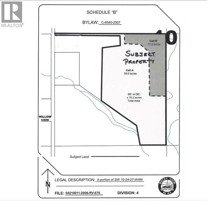 *** SELLER IS WILLING TO DO VTB UP TO 75% / 17.2 ACRES ARE DESIGNATED FOR OUTDOOR RV STORAGE (APPROVED FOR 800 UNITS) *** 75.73 (+/-) ACRE PARCEL OF DEVELOPMENT LAND (ZONED DC122) - zoned for Agricultural & Outdoor Recreation Vehicle (RV) Storage Area. SOLID LOCATION - APPROXIMATELY 20 MINUTES TO CALGARY CITY LIMITS & 10 MINUTES TO CHESTERMERE CITY LIMITS AS WELL AS LANGDON CITY LIMITS! On this property, 17.2 Acres have been designated for Outdoor RV Storage with a MAX OF 3 PRINCIPAL BUILDINGS (max combined area shall not exceed 500.0 sq m / 5,382.0 sq ft) and a MAX OF 5 ACCESSORY BUILDINGS (max combined area shall not exceed 200.0 sq m / 2,152.8 sq ft) ------ The rest of the parcel has been assigned Agricultural Area with uses such as General Agriculture, Dwelling, single-detached, accessory to the agricultural use, as well as Accessory Buildings and Private Outdoor Riding Arena! On this parcel you are permitted 3 accessory buildings and 1 primary building. There is a 3000 sq ft building on the parcel, with 1/3 of the space making up for an office and the rest serving as a barn. This parcel has a lot of potential with its location and size - RV storage for people of Chestermere, Calgary and Langdon and it also serves as a good spot for animal lovers! Contact your favorite realtor for a viewing today! (id:63190)