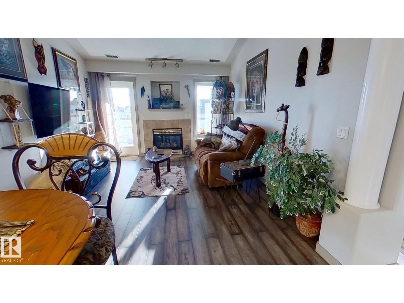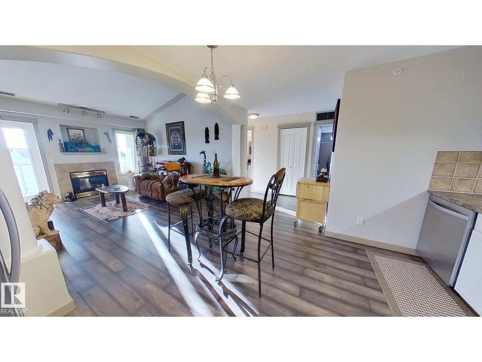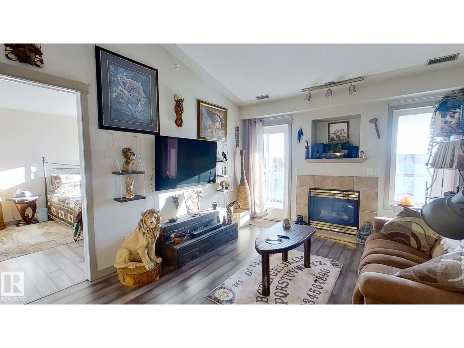BRAND NEW, WARRANTIED AIR CONDITIONING UNIT INSTALLED APRIL 2026.Top-floor unit offering 2 bedroom and 2 full bathrooms with a functional layout. The living room features a vaulted ceiling, decorative columns and a gas fireplace with door to south-facing balcony. The kitchen is adjacent to the living area, and the unit includes a combined laundry/storage room. The total living space is approximately 955.8 sq. ft., and includes one titled underground parking space with storage unit. Condo building amenities include a gym, steam room, sauna, games rooms, guest suites, social room/kitchen, workshop, car wash and visitor parking.Close to schools, shopping, hospital, public transportation/LRT Station and environmental reserve/park, with easy access to Whitemud Drive and Anthony Henday Drive. Condominium building is an 18+ building. (id:63190)