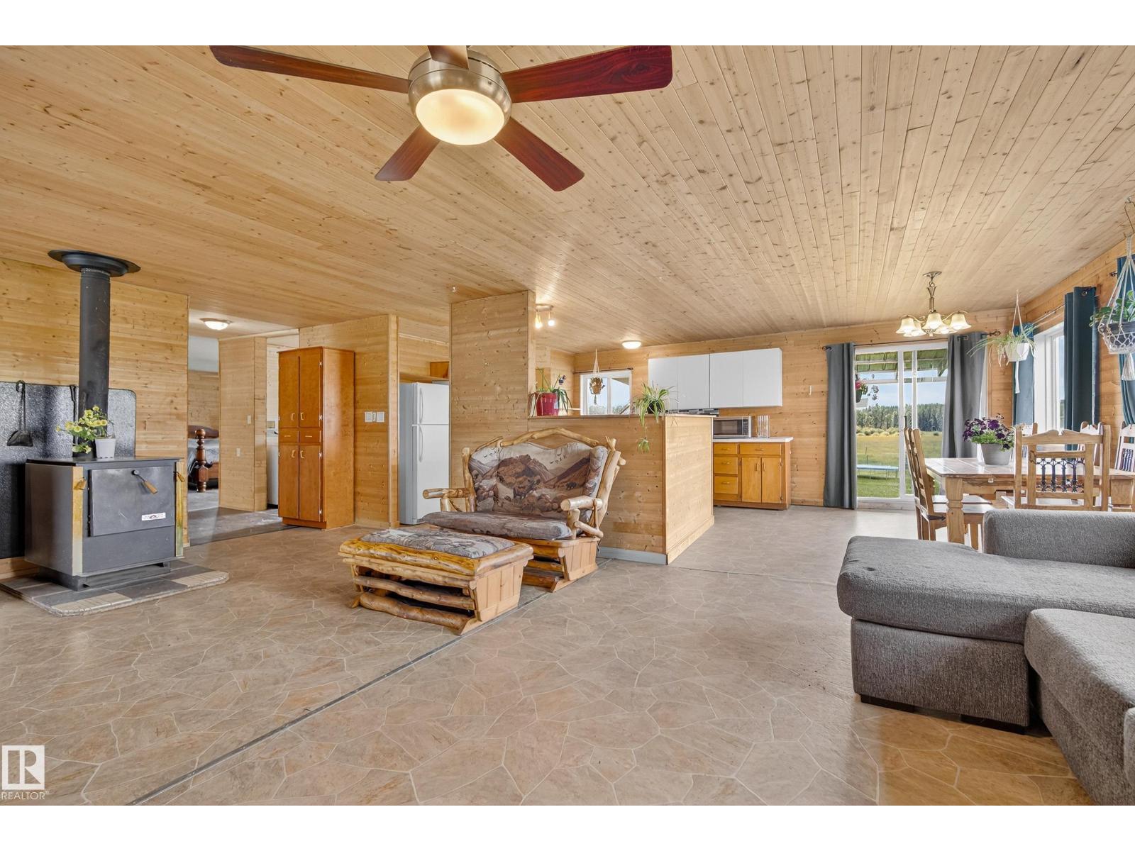 Enveloped in the natural splendor of 155 pristine acres, this 2014-built bungalow offers a rare blend of peace, potential, and natural wonder. The open-concept layout is warm and inviting, showcasing natural wood features, 2 spacious bedrooms, a 5-piece bath, rustic culinary space and extra windows that bathe the interior in natural light. Outside, enjoy the quiet majesty of rolling meadows, two natural water features, and towering forests that create an enchanting landscape teeming with wildlife. A 30x50 barn, storage out-buildings, artesian well (with two additional bored wells) and included farm equipment support hobby farming, hunting, or retreat-style living. The possibilities are endless—multi-generational living, a lifestyle retreat, or your dream rural escape. (id:63190)