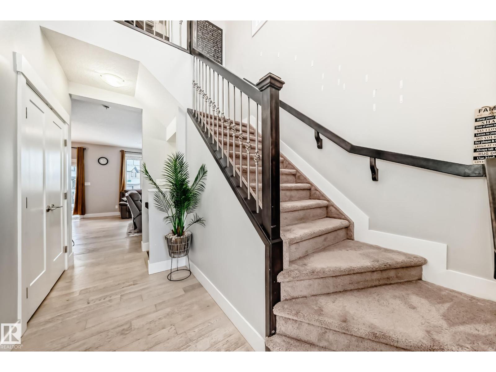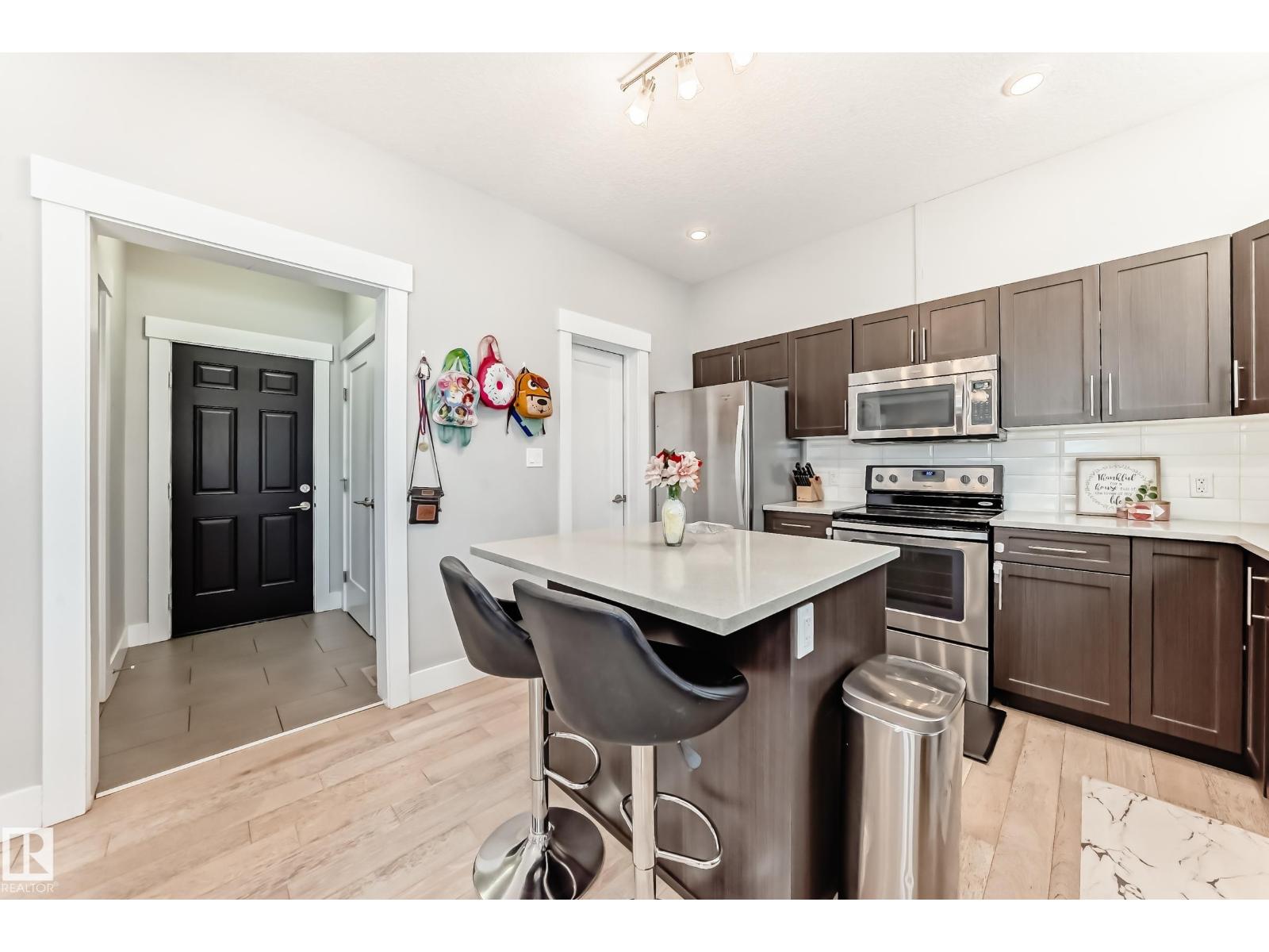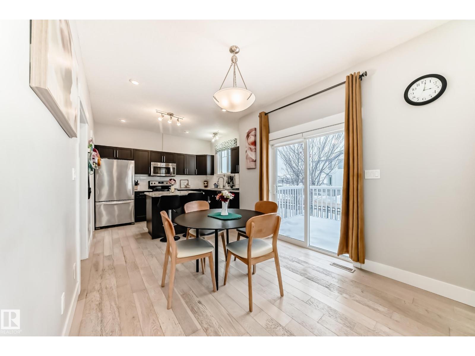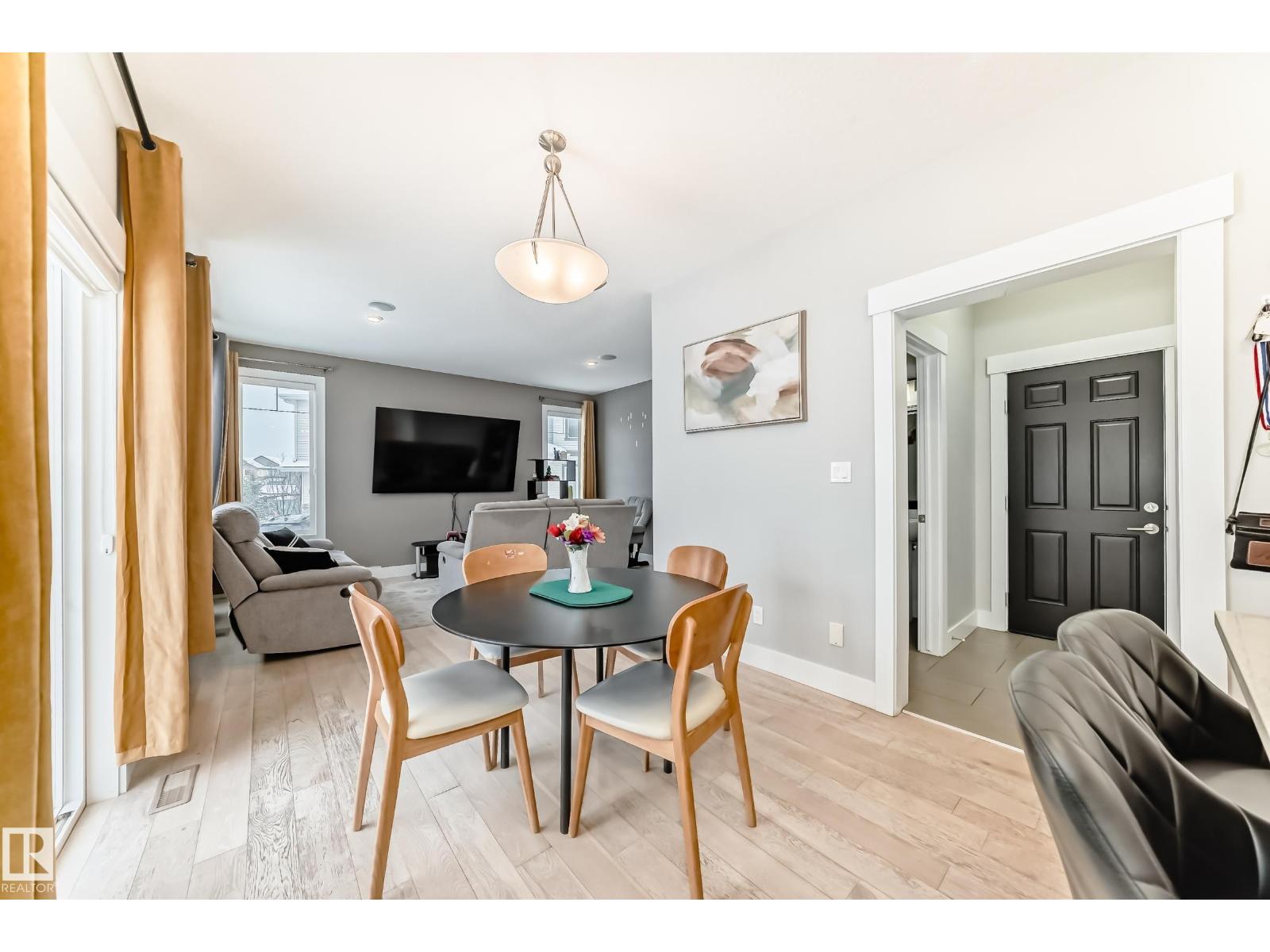 Former showhome END UNIT with a FULLY FINISHED BASEMENT, central air conditioning, and a heated double attached garage, ideally located in Windermere! This upgraded home features an open-to-above foyer and a bright open-concept main floor with engineered hardwood, quartz countertops, stainless steel appliances, a large island with breakfast bar, a walk-in pantry, and built-in speakers that make entertaining so much easier! The dining area opens to the rear deck with beautiful sunset and pond views. Upstairs offers three spacious bedrooms, including a primary suite with a walk-in closet and a five-piece ensuite washroom. The finished basement adds an extra living space. It comes with a family room and another three-piece bathroom, perfect for guests, or extended family. Close to river valley trails, shopping, restaurants, schools, transit, and minutes to Anthony Henday and Whitemud. (id:63190)