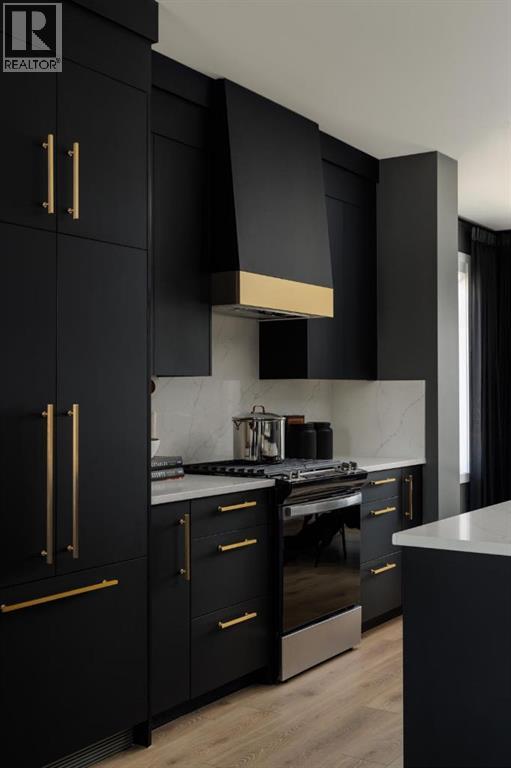 Experience the perfect blend of sophistication, style, and convenience at District Towns in Calgary’s vibrant West District. This beautifully designed 2-bedroom, 2.5-bathroom townhome combines modern architecture with timeless interiors, all enhanced by an expansive rooftop terrace overlooking Radio Park—a rare feature that truly sets this home apart.Thoughtfully crafted across three levels, this residence is ideal for those seeking a refined urban lifestyle. The main floor features a versatile flex room, perfect for a home office, fitness space, or creative studio, along with direct access to the attached double heated garage for ultimate convenience.The main living level is bright and inviting, with soaring ceilings, wide-plank flooring, and an open-concept layout designed for modern living. The chef-inspired kitchen is a showpiece, featuring full-height cabinetry with soft-close doors, a gas range, integrated refrigerator, built-in microwave, and a spacious pantry. A large eat-up quartz island anchors the space—perfect for casual dining, hosting friends, or enjoying a quiet morning coffee.Upstairs, you’ll find two generously sized bedrooms, each with its own private ensuite for maximum comfort and privacy. The primary suite is a true retreat, featuring a walk-in closet and a stunning 5-piece spa ensuite complete with a freestanding soaker tub, tiled shower, dual vanities, and elegant designer finishes. The second bedroom offers its own stylish ensuite, making it ideal for guests or family. A conveniently located upper-floor laundry adds to the home’s thoughtful design.Crowning this residence is the spectacular rooftop terrace, offering sweeping views of Radio Park and the West District skyline. This private outdoor space is perfect for summer barbecues, evening cocktails, or simply unwinding under the stars.Situated steps away from parks, pathways, boutique shops, and premium dining, District Towns deliver a connected, walkable lifestyle in one of Calgary’s most exciting new communities. With TRUMAN’s renowned craftsmanship and attention to detail, this home is more than a place to live—it’s where you can truly Live Better (id:63190)