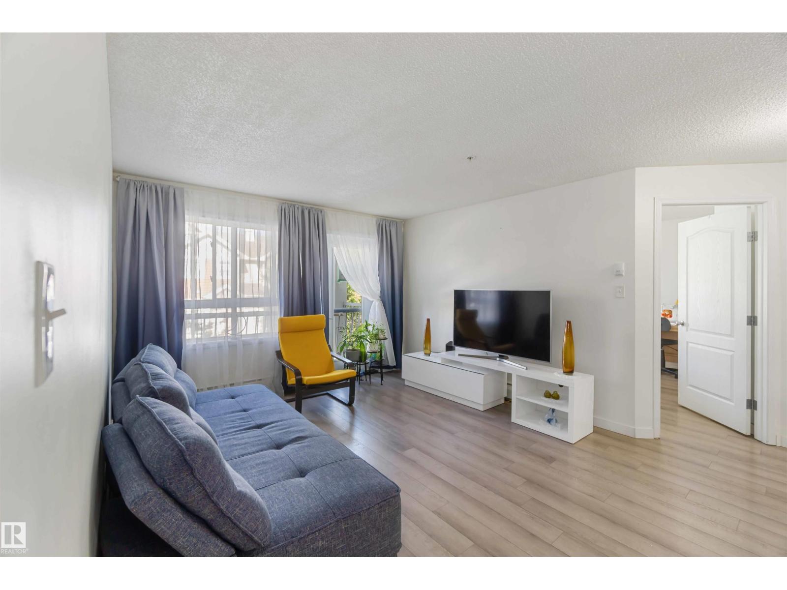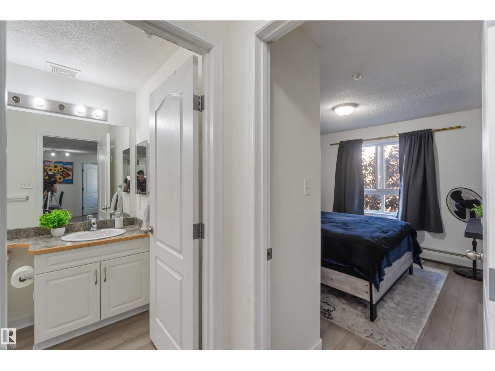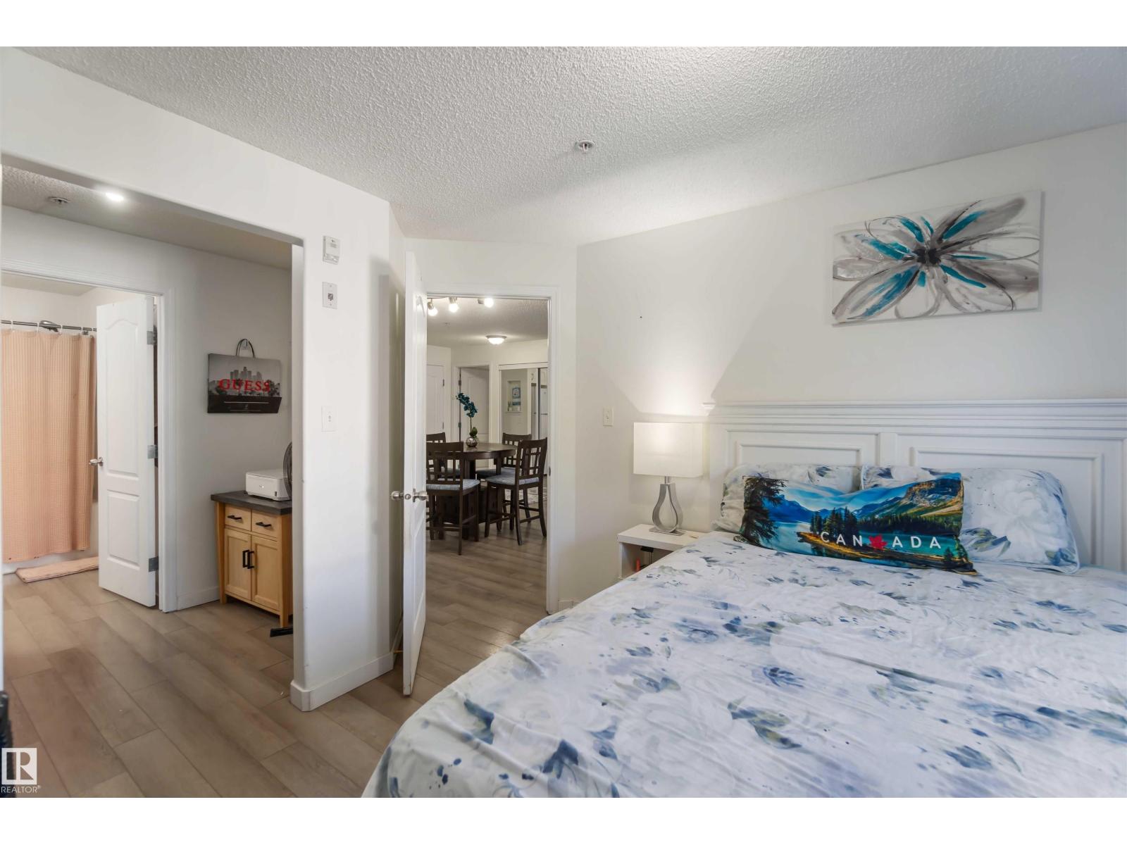 FANTASTIC VALUE in The Hamptons! This bright 2 bed/2 bath condo in Park Place Hamptons comes with 2 titled parking stalls and in-suite laundry with large storage. The open floor plan features new vinyl plank flooring throughout the entire unit, with a spacious eat-in kitchen, generous living room, and access to a private deck, perfect for BBQs or relaxing. The primary suite offers a walk-through closet and 4pc ensuite, while the second bedroom is equally roomy. Big windows bring in loads of natural light throughout. Well-maintained building with wide hallways and elevators, plus condo fees include heat, water, and more. Conveniently close to shopping, dining, trails, and quick connections to the Henday, Whitemud, and West Edmonton Mall. A move-in ready home in a great community! (id:63190)