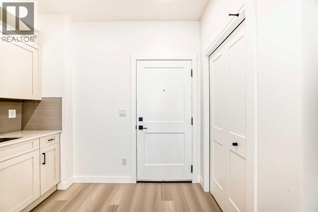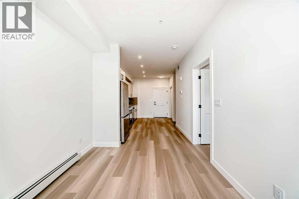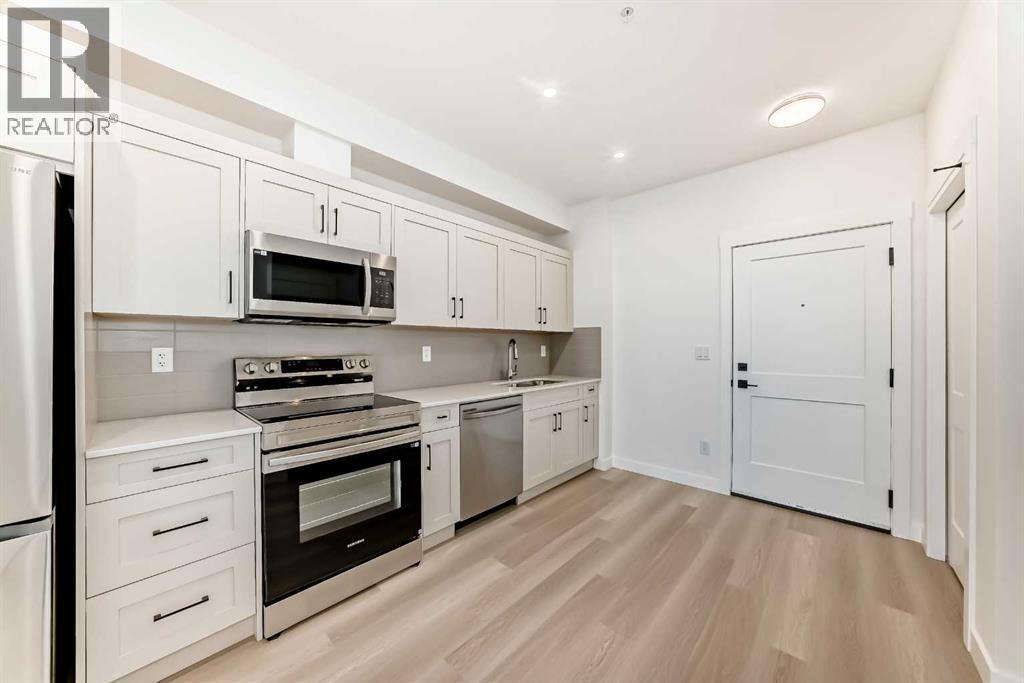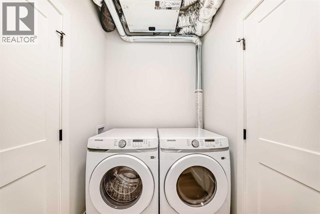 Welcome to The Lawrence2, a meticulously designed one-bedroom, one-bathroom residence offering 432 sq. ft. of well-planned living space. This thoughtfully crafted home features 9-foot ceilings and an 8-foot-wide patio door, allowing for an abundance of natural light and seamless access to the balcony with a gas hookup—ideal for outdoor entertaining. The kitchen has quartz countertops, tile backsplash, soft-close cabinetry, and premium stainless steel appliances. Convenience is further enhanced with in-suite laundry. Strategically located near walking trails, shopping centers, South Campus Hospital, and Deerfoot Trail, this home offers unparalleled connectivity and accessibility. The Lawrence 2 is available for immediate possession. For peace of mind, this home is backed by Alberta New Home Warranty, ensuring long-term quality and security. (id:63190)