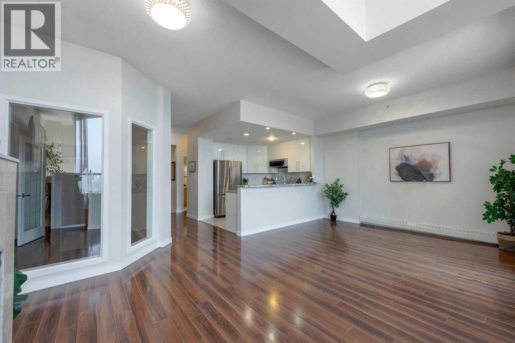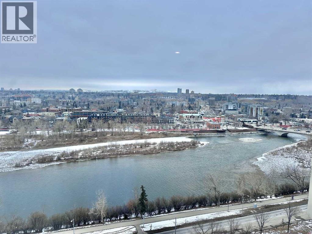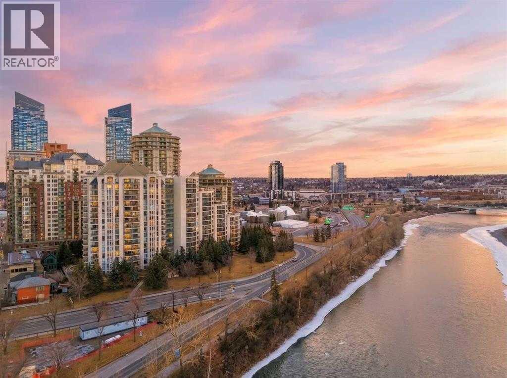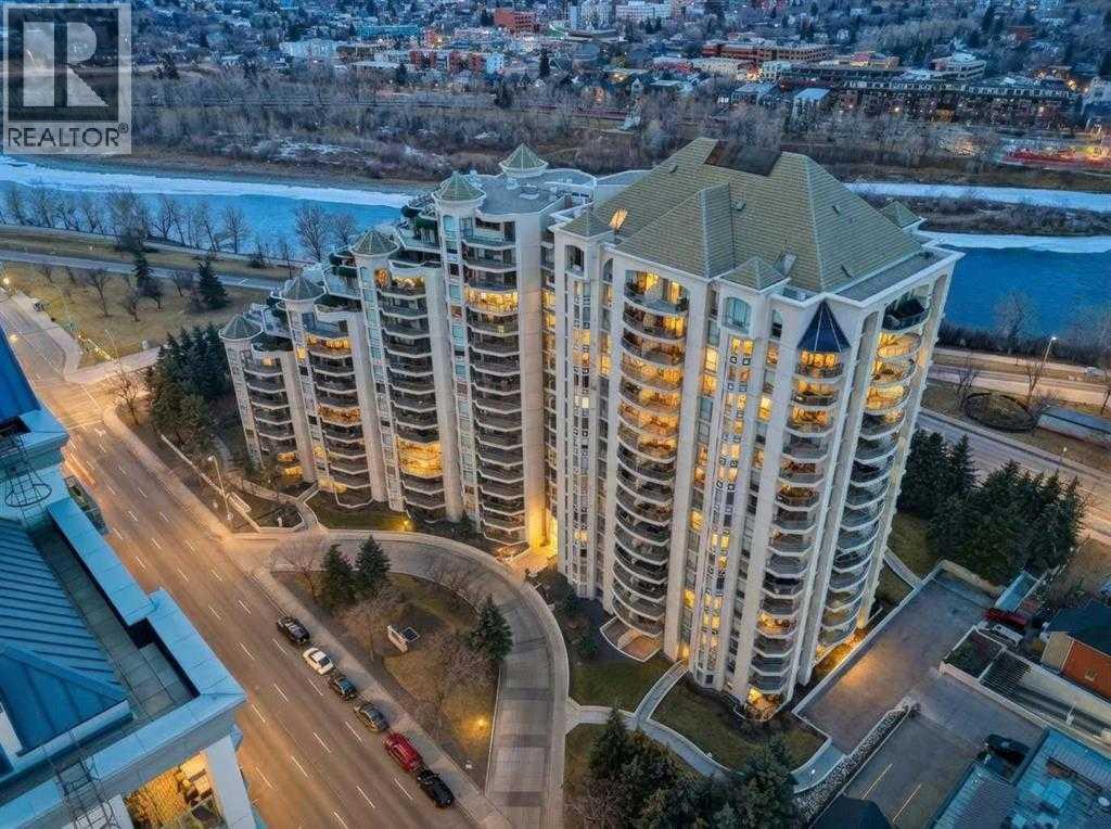 Penthouse at The Marquis - This is what you have been waiting for and it shares only one wall with a neighbour! Updated top floor suite, spacious 1274 SF Riverside suite with oversized windows and extra height ceilings to take in the amazing North and West facing RIVER & MOUNTAIN VIEWS overlooking the Bow River. Freshly painted and showcasing a split bedroom design floor plan, this 2 bedroom PLUS DEN suite includes parking for 2 vehicles (tandem) plus additional storage locker. Entering the suite you are drawn to the open and spacious living and dining rooms – the view beckons! Cozy gas fireplace with marble tile front and mantle anchors the living room and oversized windows capture the views – sunset sky’s from here are stunning! The updated (in 2019), bright white kitchen overlooks the living area and offers ample granite counter space, breakfast ledge & stainless steel appliances. The primary bedroom is roomy and spacious and accommodates king sized furniture & features walk-through closets, 4 piece ensuite bath with soaker tub, separate shower and ample granite counter vanity space. Second bedroom easily fits queen-sized furniture, offers an extra closet as well and the 3 piece renovated bath (granite counters here, too!) is adjacent – perfect for a room mate or for when guests stay over. Don’t forget the den – it’s a great size and features floor to ceiling window on to the living room. Laundry room (new washer & dryer in 2024) with lots of storage space & extra shelving. Easy upkeep tile and laminate flooring are throughout the suite. The Marquis offers FULL concrete construction, including between suites, and all common areas have recently been renovated and are meticulously maintained. The gracious front lobby welcomes your guests and building amenities include 24 indoor visitor parking stalls, exercise facilities with his/her change rooms, yoga studio, a party room for gatherings and bike storage. With a walkability score of 95, this West Downtown location is amazing – super close to the Bow River pathways, Prince’s Island park, coffee shops, boutiques and great restaurants to explore, 1 block to the LRT (downtown free zone), & the fun and excitement of Kensington is just across the river. This is a pet friendly building (dogs under 20 lbs, with Board approval) – Start living the lifestyle you’ve dreamed of and call to view today! (id:63190)