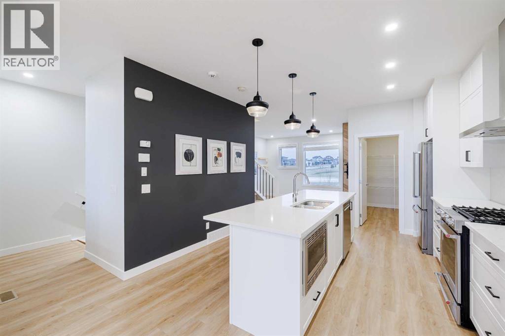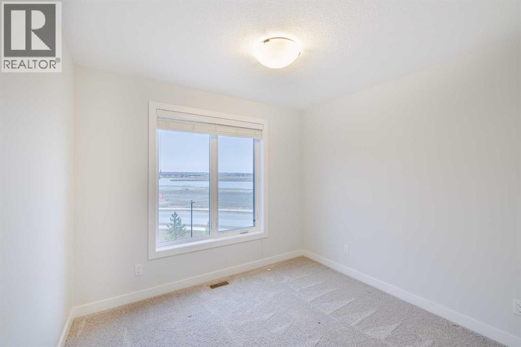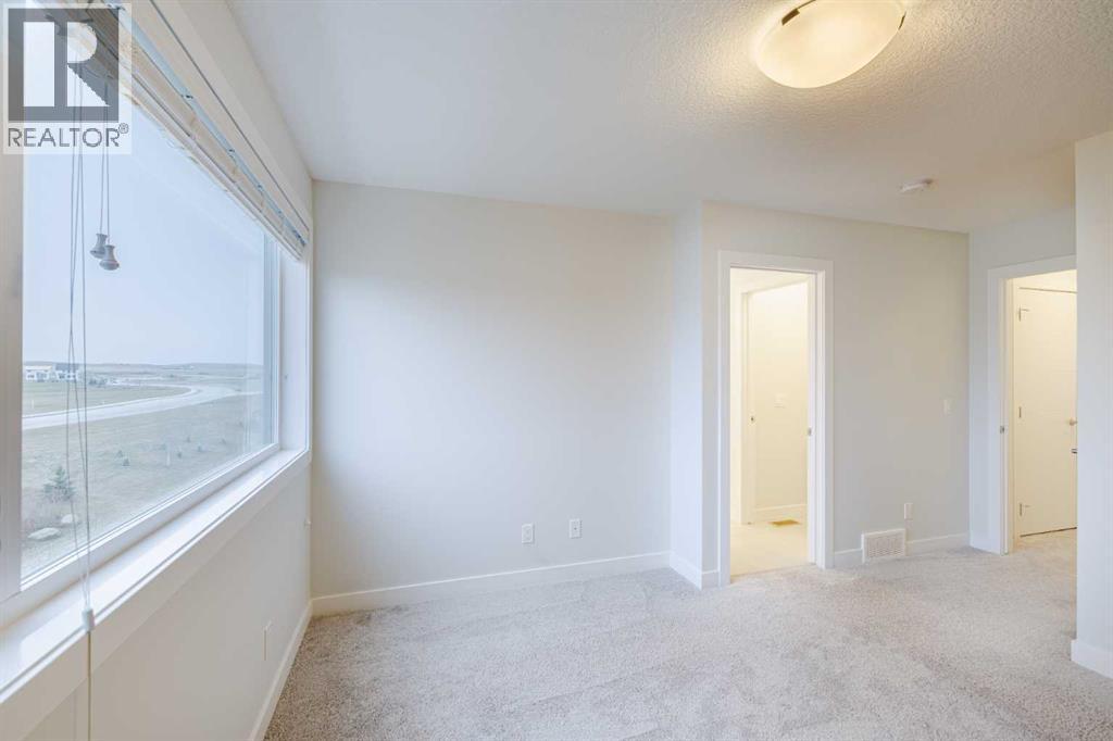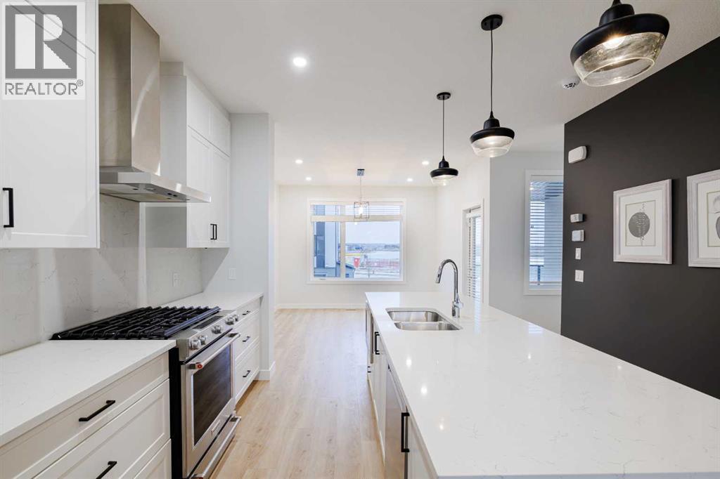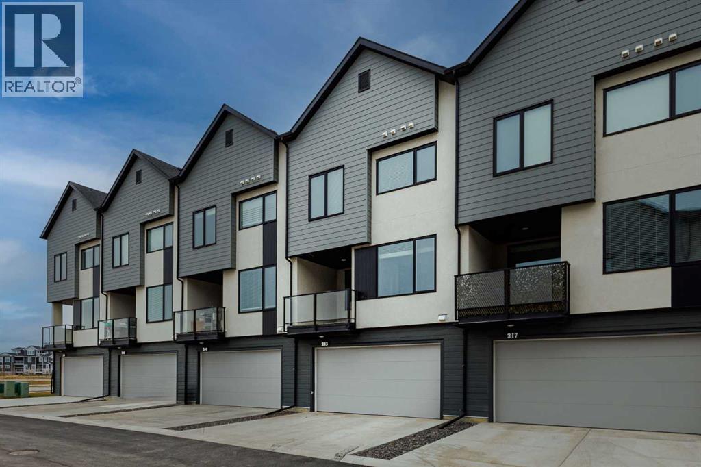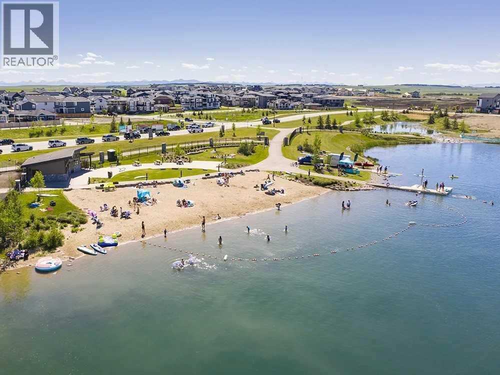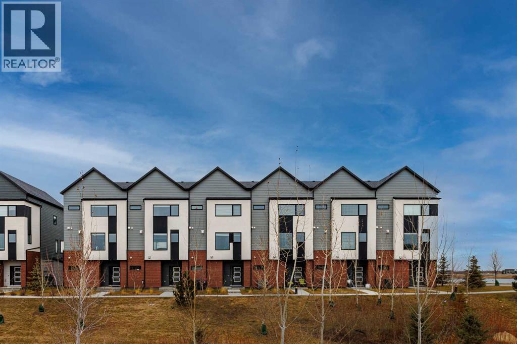 Welcome to this exquisite townhome that epitomizes the perfect blend of luxury, functionality, and natural beauty. Nestled in Harmony—an award-winning community that has proudly earned “Community of the Year – Calgary Region” eight times—this residence stands out with a plethora of upgrades, meticulous maintenance, and thoughtful design. Harmony offers an unmatched lifestyle, combining lake and golf living, walkable amenities, and stunning mountain views. As a resident, you’ll enjoy social membership at the renowned Mickelson National Golf Club, giving you access to world-class golfing right in your backyard. Families will appreciate the proximity to sought-after schools including Springbank Middle School, Springbank Community High School, and the prestigious Edge School for athletes and academics. As you step inside, you are greeted by a spacious den off the front entrance, just steps from the oversized double-car garage featuring a forward-thinking 40-amp EV connection, a true testament to modern living. Ascending to the main level, the kitchen immediately captivates with its elegant finishes—quartz countertops, a large island with breakfast bar seating, ceiling-height white cabinetry, and upgraded stainless steel appliances including a gas range for the culinary enthusiast. A massive pantry with extensive shelving ensures optimal organization. Adjacent to the kitchen is a charming eating nook with access to the front deck, where you can enjoy peaceful lake views. The sunlit living room offers a bright and inviting atmosphere, with panoramic mountain vistas framed by large windows, and a stylish fireplace with custom tile surround adding warmth and sophistication. The upper level showcases the primary suite, complete with a custom California Closet system and a spa-like ensuite featuring in-floor heating, a private water closet, standalone shower, and dual vanity. An upgraded laundry area with quartz countertop, additional shelving, and a large linen closet adds c onvenience. Two additional generously sized bedrooms and a 4-piece bathroom complete this floor. Outside of the home, Harmony’s amenities enrich everyday living—a 5-minute drive to Calaway Park, and the upcoming Bingham Crossing development with a future Costco and numerous shops and services. Residents also enjoy walking access to the community lake, miles of pathways, and future commercial amenities including the Nordic Spa.This townhome goes beyond ordinary, delivering a lock-and-leave lifestyle with maintenance-free living—no snow shoveling or yard work required—and four parking spots between the garage and driveway. With air conditioning, thoughtful upgrades, breathtaking surroundings, and pride of ownership throughout, this home offers not just a residence, but a lifestyle of elegance and harmony. (id:63190)