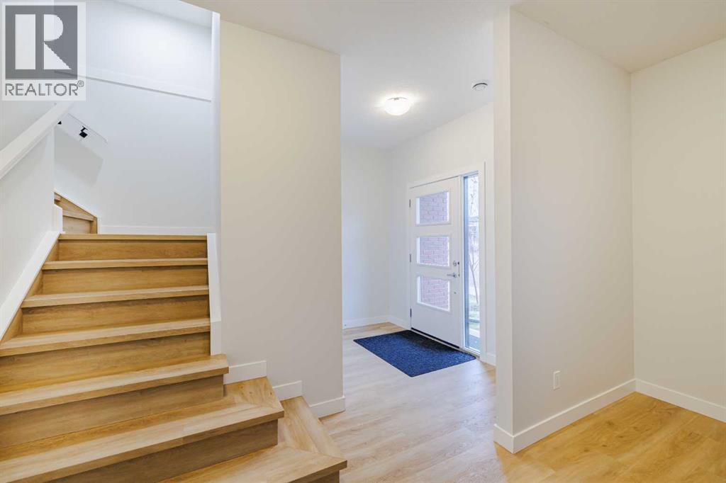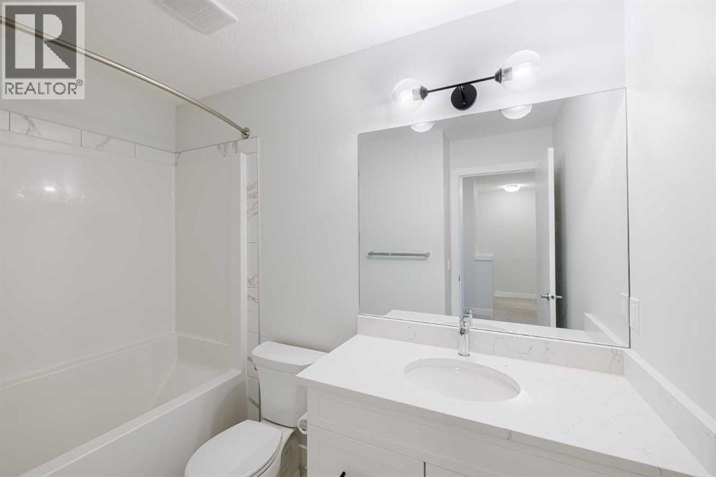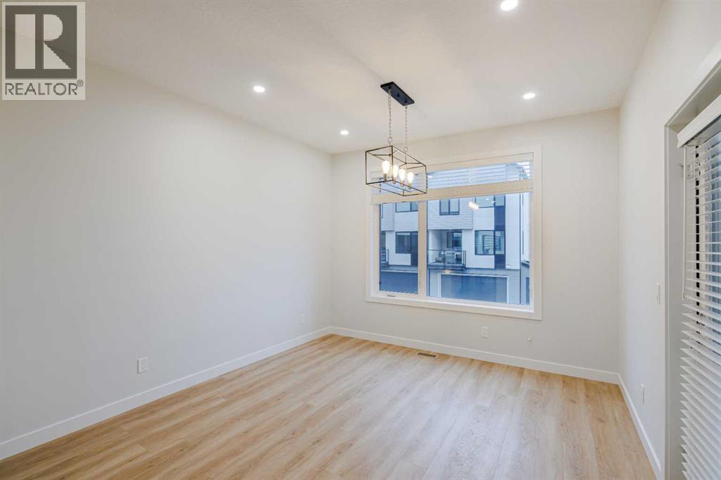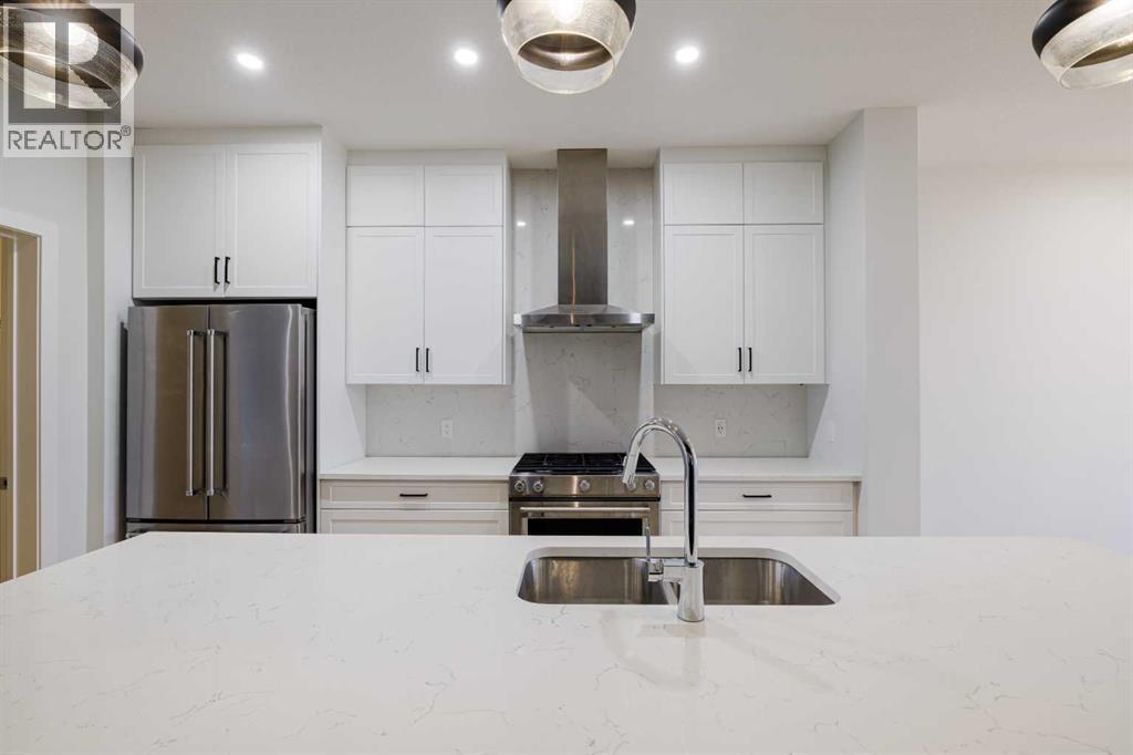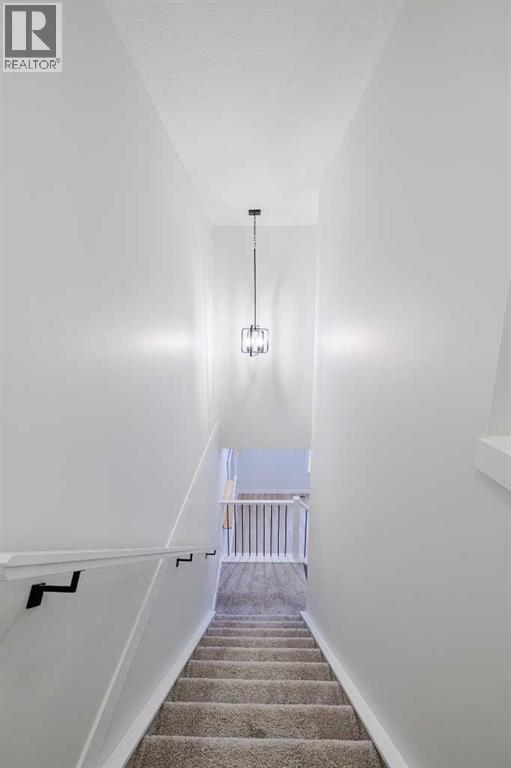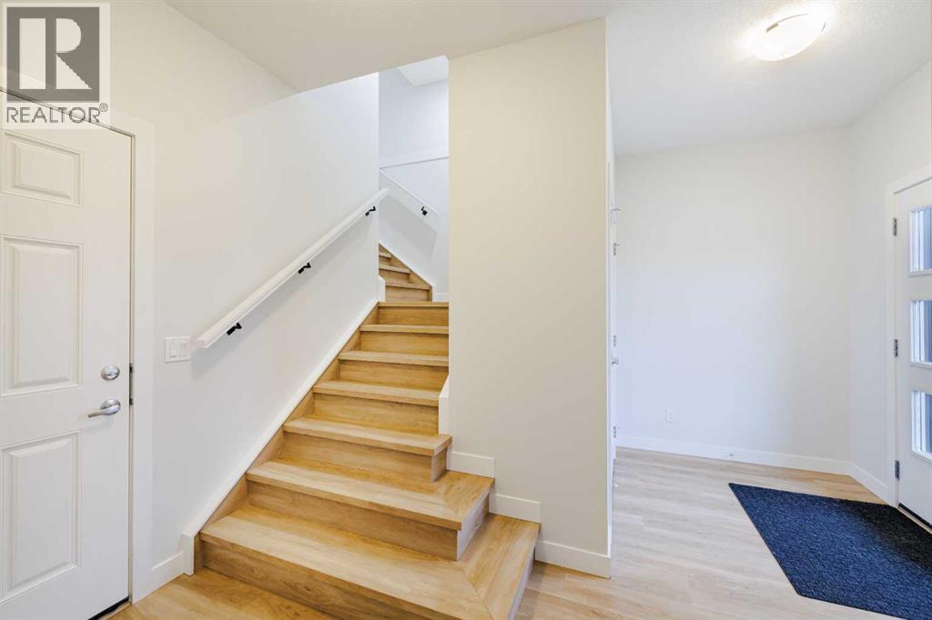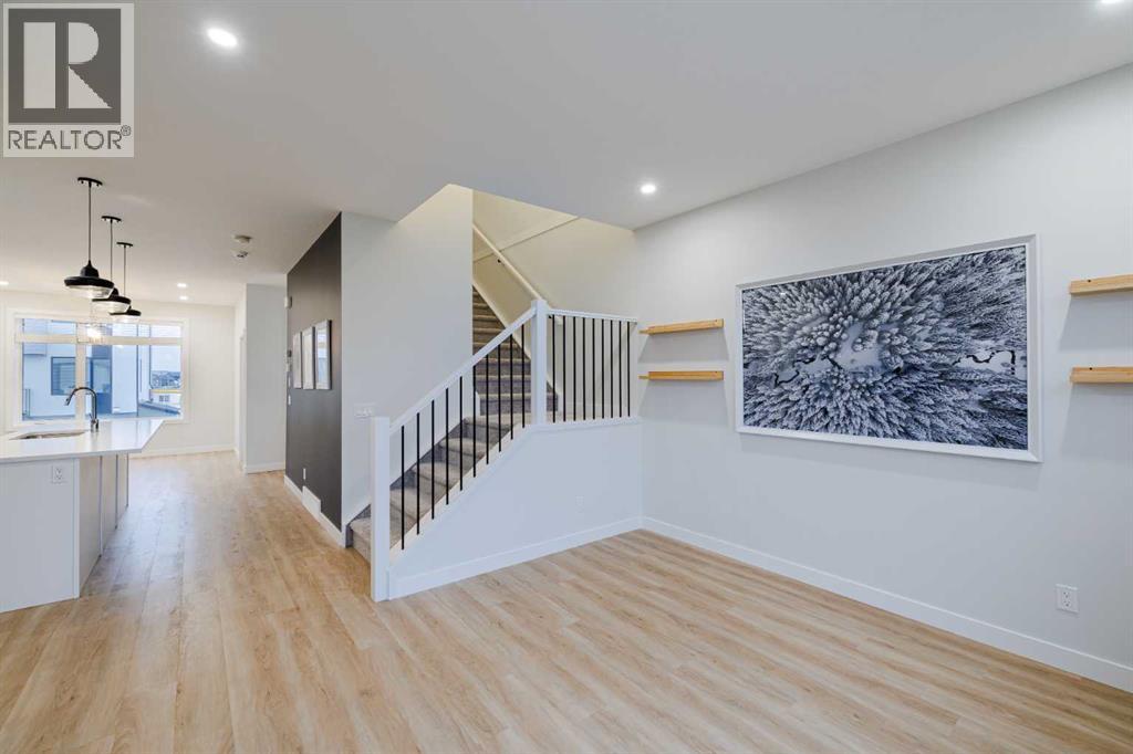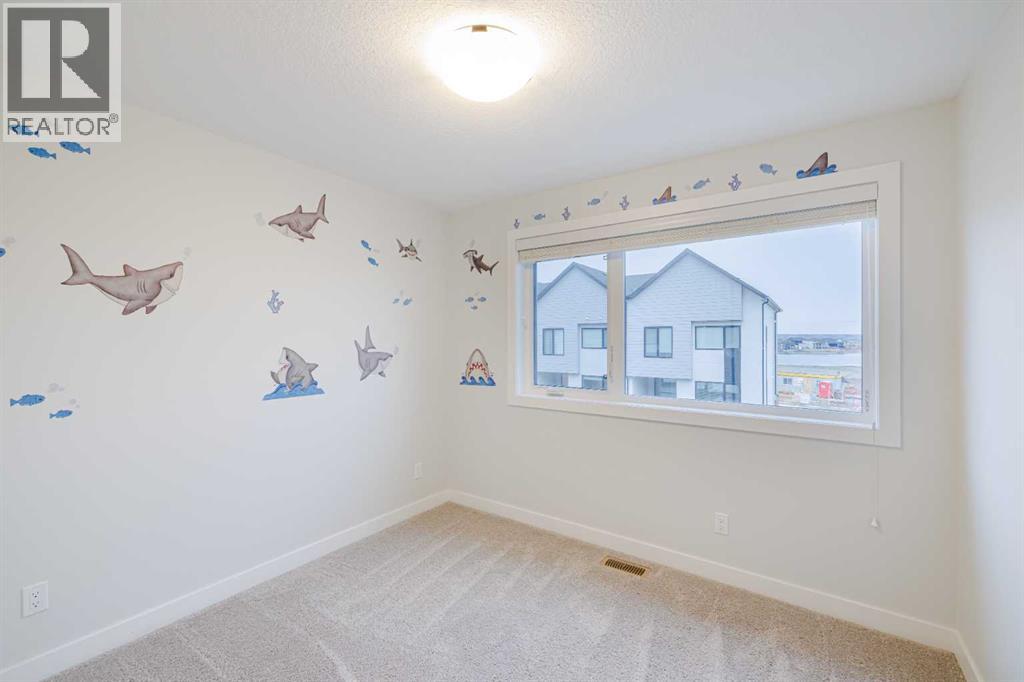 Welcome to this exquisite townhome that epitomizes the perfect blend of luxury, functionality, and natural beauty. Nestled in Harmony—an award-winning community that has proudly earned “Community of the Year – Calgary Region” eight times—this residence stands out with a plethora of upgrades, meticulous maintenance, and thoughtful design. Harmony offers an unmatched lifestyle, combining lake and golf living, walkable amenities, and stunning mountain views. As a resident, you’ll enjoy social membership at the renowned Mickelson National Golf Club, giving you access to world-class golfing right in your backyard. Families will appreciate the proximity to sought-after schools including Springbank Middle School, Springbank Community High School, and the prestigious Edge School for athletes and academics. As you step inside, you are greeted by a spacious den off the front entrance, just steps from the oversized double-car garage featuring a forward-thinking 40-amp EV connection, a true testament to modern living. Ascending to the main level, the kitchen immediately captivates with its elegant finishes—quartz countertops, a large island with breakfast bar seating, ceiling-height white cabinetry, and upgraded stainless steel appliances including a gas range for the culinary enthusiast. A massive pantry with extensive shelving ensures optimal organization. Adjacent to the kitchen is a charming eating nook with access to the front deck, where you can enjoy peaceful lake views. The sunlit living room offers a bright and inviting atmosphere, with panoramic mountain vistas framed by large windows, and a stylish fireplace with custom tile surround adding warmth and sophistication. The upper level showcases the primary suite, complete with a custom California Closet system and a spa-like ensuite featuring in-floor heating, a private water closet, standalone shower, and dual vanity. An upgraded laundry area with quartz countertop, additional shelving, and a large linen closet adds c onvenience. Two additional generously sized bedrooms and a 4-piece bathroom complete this floor. Outside of the home, Harmony’s amenities enrich everyday living—a 5-minute drive to Calaway Park, and the upcoming Bingham Crossing development with a future Costco and numerous shops and services. Residents also enjoy walking access to the community lake, miles of pathways, and future commercial amenities including the Nordic Spa.This townhome goes beyond ordinary, delivering a lock-and-leave lifestyle with maintenance-free living—no snow shoveling or yard work required—and four parking spots between the garage and driveway. With air conditioning, thoughtful upgrades, breathtaking surroundings, and pride of ownership throughout, this home offers not just a residence, but a lifestyle of elegance and harmony. (id:63190)