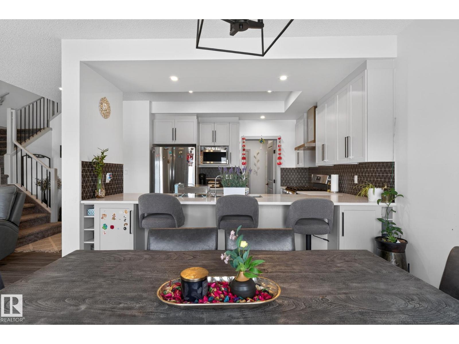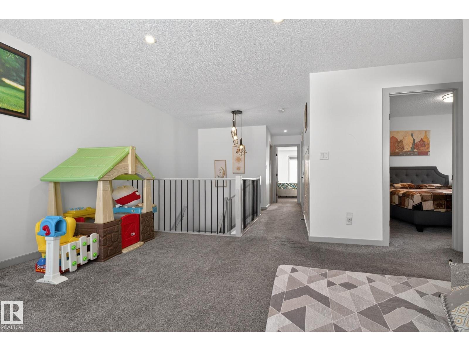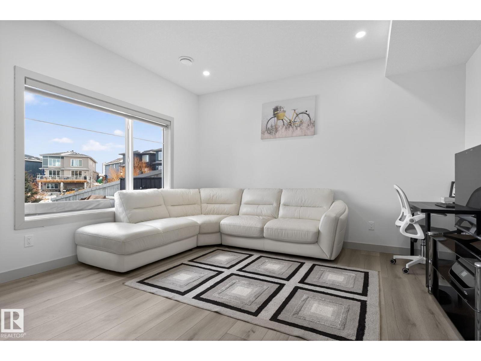 Walkout home on a regular lot, ideally located in a quiet cul-de-sac and backing onto open space with pond views and walking trails directly behind. The low-traffic setting offers a safe, family-friendly environment. The upper level features three bedrooms plus a bonus room, including a spacious primary suite with walk-in closet and private ensuite. Convenient upper-floor laundry adds everyday ease. The main floor offers a bright open-concept layout with living area, kitchen, dining space, pantry, and a functional mudroom off the attached heated garage. The fully finished walkout basement features a full kitchen, large recreation area, bedroom, full bathroom, and rough-ins for separate laundry. The walkout provides a private entrance with a dedicated side pathway. Additional highlights include central air conditioning, a concrete patio at grade, upper deck with stairs to the yard, and future access to 41 Avenue for convenient community exits. (id:63190)