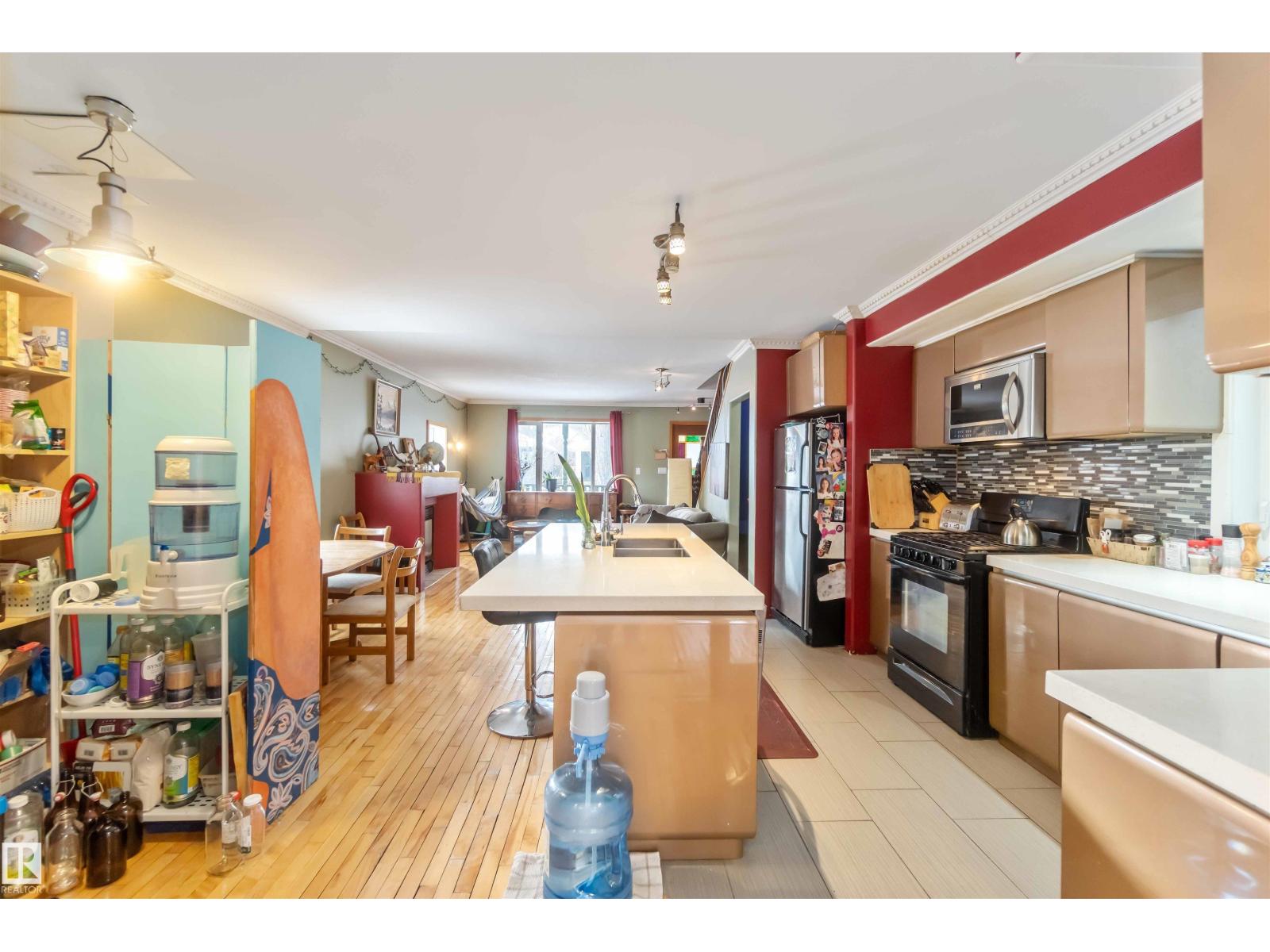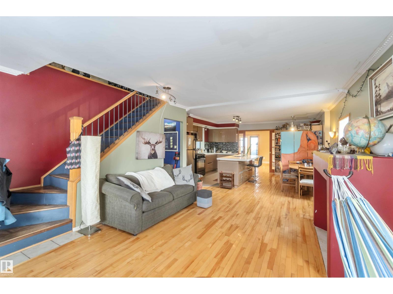 Located in the heart of Riverdale, one of Edmonton’s most desirable river valley communities, this character-filled two-storey home offers a rare opportunity in an exceptional location. Backing toward the river valley and just minutes from downtown, it blends natural surroundings with urban convenience. The home features an open-concept main floor with hardwood and tile flooring, a centrally located kitchen with gas stove, and a bright, functional layout. Upstairs includes three bedrooms, with the primary bedroom offering access to a deck overlooking the peaceful setting. The basement is partially unfinished, providing storage and future development potential. Off-street parking with rear lane access and proximity to river valley trails, parks, transit, and amenities complete the offering. (id:63190)