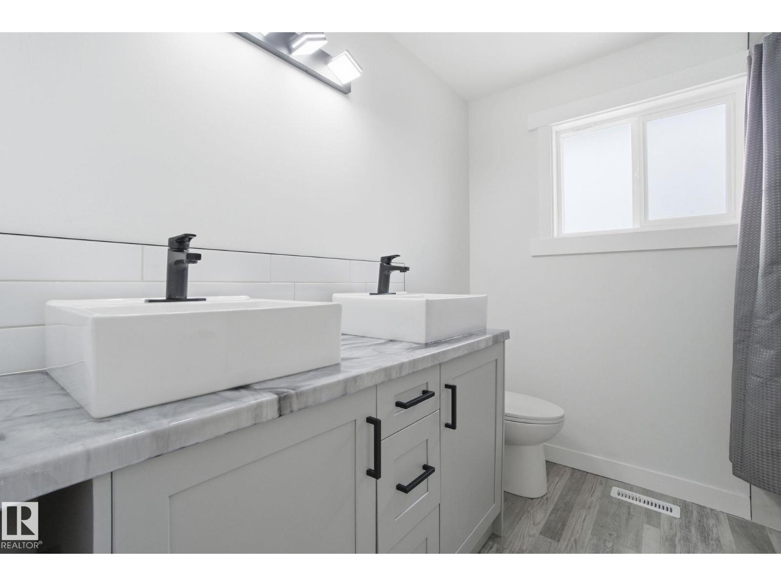 WOW! Large families, nothing to do here but move in! This large completely renovated 3+3 Bedroom + Den, 3 Bath stunning home, is located in the mature Community of Delwood. Move in ready and absolutely stunning. This property has been completely renovated. Main floor + lower laundry. New windows, new doors (in and out), new electrical, plumbing, H/W tank, new wall and attic insulation, flooring, drywall, paint, custom epoxy countertops, fixtures and cabinets. New concrete sidewalks, new sod, new fascia, eaves and downspouts. Great floor plan and super bright! Large master with 3 pce ensuite. The basement is fully finished - consists of an in-law suite with new kitchen, family room, 3 bedrooms + Den, 3 pce bath, separate laundry room, insulated ceiling and wine rack under stairs. A/C, backyard is fenced with new fence, large patio and double garage. Close to all amenities, daycare, schools and a new city paved street with bike lane. This shows 10/10. (id:63190)