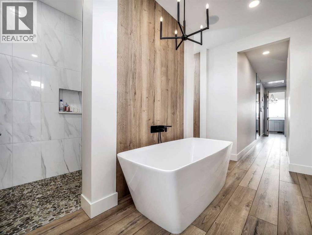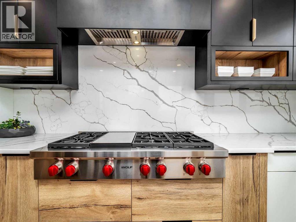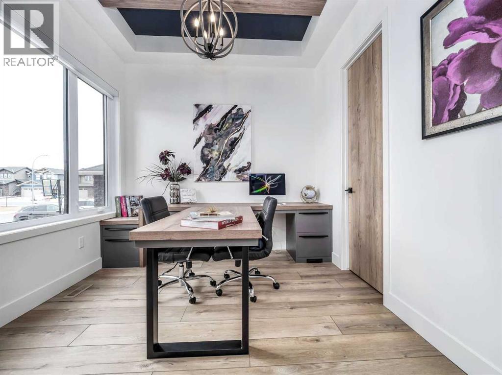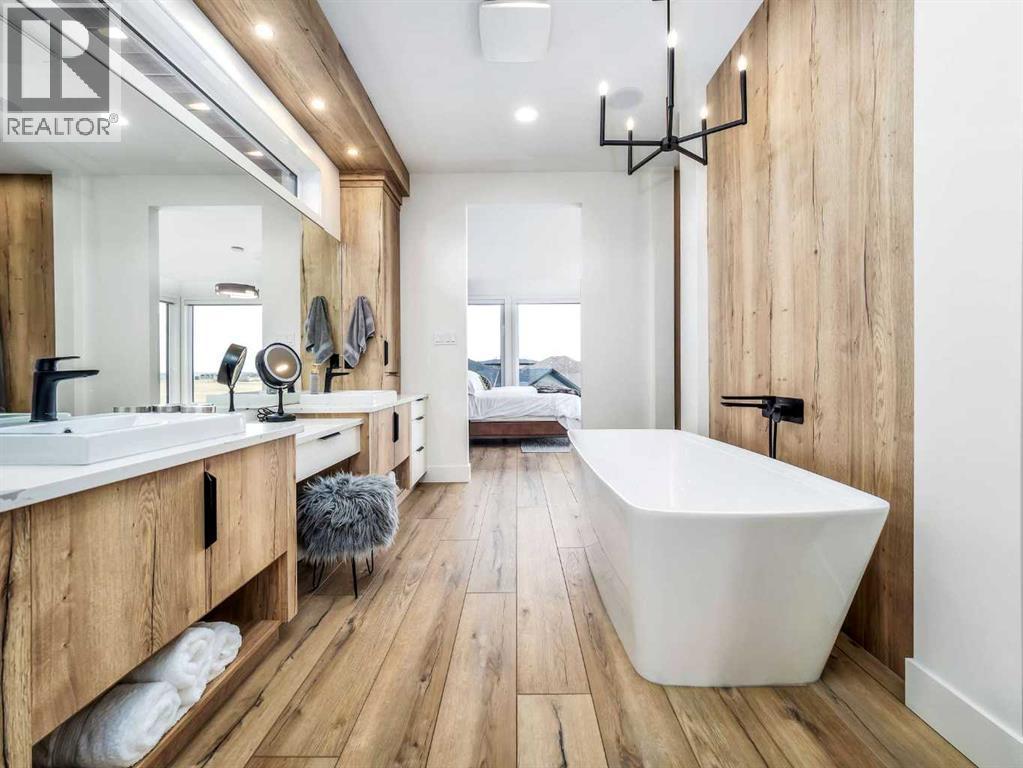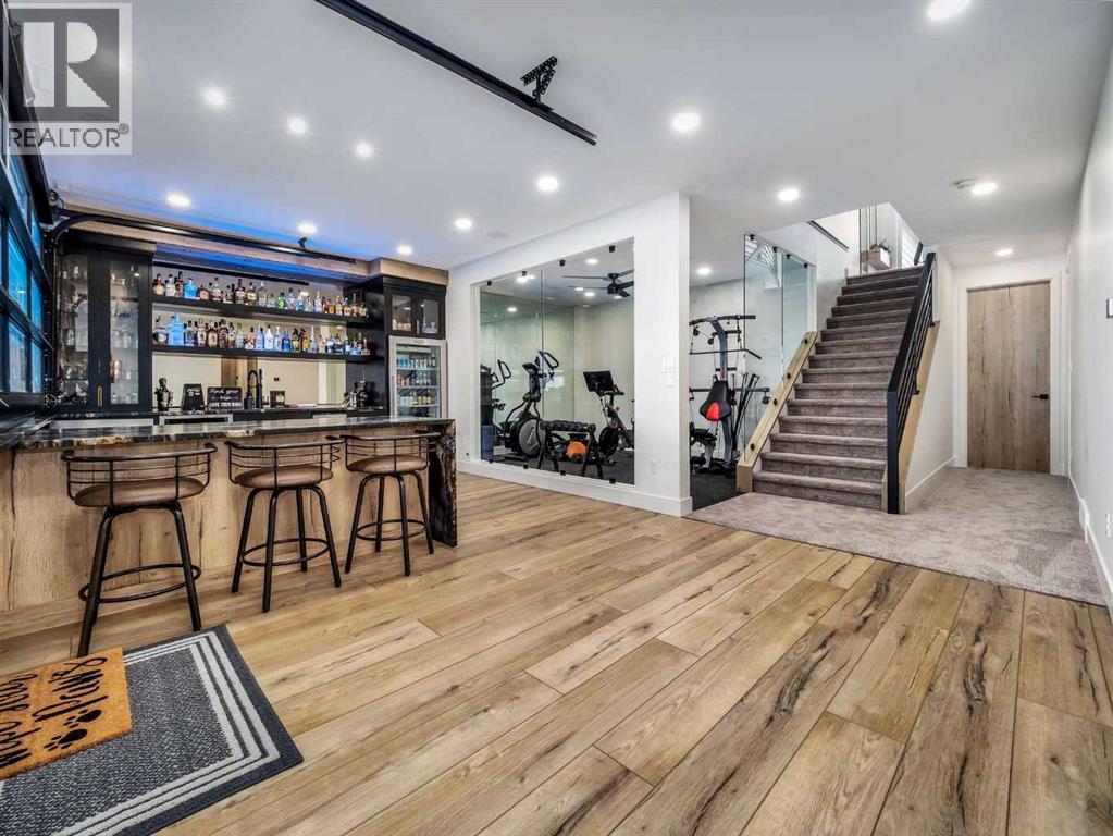 A rare opportunity to own the builder’s personal residence in one of Lethbridge’s most prestigious locations—Stonecrest Point, perched on the coulee’s edge in Riverstone. Every detail has been meticulously designed, resulting in nearly 5,000 sq. ft. of fully developed luxury with breathtaking coulee views, striking curb appeal, and extensive upgrades throughout. Inside, soaring 21’ ceilings, a dramatic floating solid-oak staircase with curved architectural detailing, and black powder-coated railings create a stunning first impression. Nine-foot ceilings span all three levels, complemented by 9” luxury vinyl plank flooring. The sunken living room features a beautiful two-sided gas fireplace with decorative hearth. The chef’s kitchen offers double islands, ceiling-height custom cabinetry, extensive drawer storage, appliance garage, integrated recycling, spice racks, and a large walk-in pantry. Premium Wolf and Sub-Zero appliances include a 48” gas cooktop with griddle, custom hood fan, double wall ovens, drawer microwave, and a side-by-side Sub-Zero fridge/freezer with water and ice. Two dishwashers on the main floor (plus a third in the basement bar), garburator, and thoughtful storage complete the space. An 8’ sliding glass door opens to a 14’ x 18’ concrete deck with frameless glass railing and built-in Napoleon BBQ, offering unobstructed coulee views. The main-floor office features 10’6” ceilings, built-in desks, ceiling beam detailing, and walk-in storage closet. A spacious mudroom provides custom built-ins, bench seating, shelving, and additional storage. The oversized heated garage includes a 27’ x 34’ main bay plus a workshop, epoxy floors, commercial overhead door, side-mount opener, hot and cold taps, floor drain, sink, and custom dog wash. The fully developed basement is an entertainer’s dream, showcasing a custom bar, ice maker, commercial bar fridge, and microwave. A commercial overhead pass-through door opens to an enclosed patio with electric screen, ra diant heat, gas fire table, and Hot Springs hot tub for year-round enjoyment. This level also offers a bedroom with walk-in closet, a full bathroom with custom tile shower, a large living area, and a private glass-walled gym. Upstairs, a bonus room with floor-to-ceiling windows captures incredible coulee views. Bedrooms feature walk-in closets, blackout blinds, and built-in bed bases. Two bedrooms share a Jack and Jill bathroom with frameless glass shower. The primary retreat is exceptional, offering continued views and a spa-inspired ensuite with a massive custom tile shower with dual showerheads, makeup vanity, water closet, and a walk-through closet connecting to the laundry room. The laundry room includes pull-down drying racks, steam dryer, sink, and generous counter space. The exterior is equally impressive with composite siding, synthetic turf, drip irrigation, raised garden beds, stamped concrete driveway, and so much more. A statement home in an iconic location - luxury living without compromise. (id:63190)
