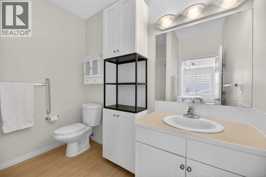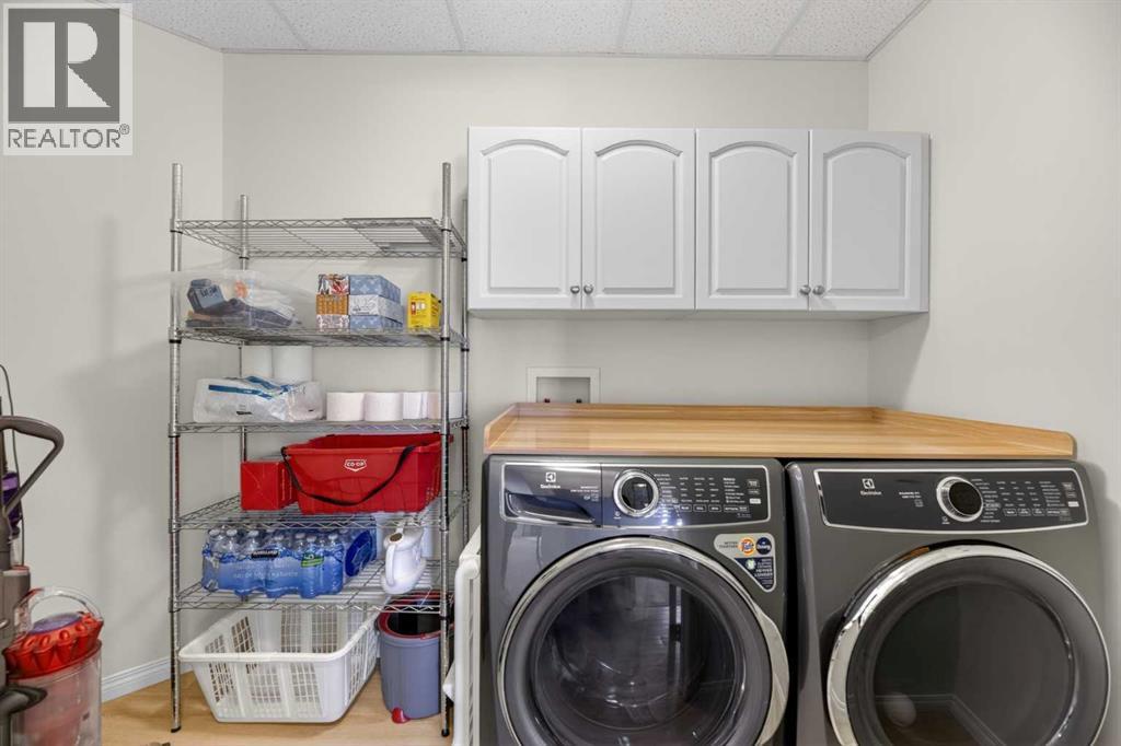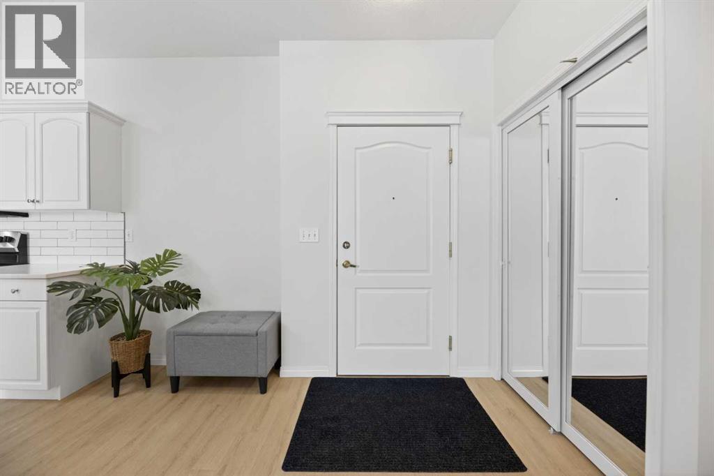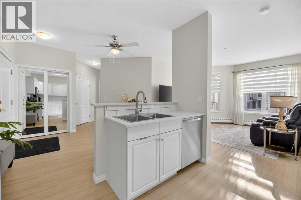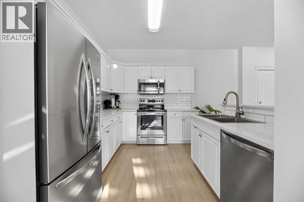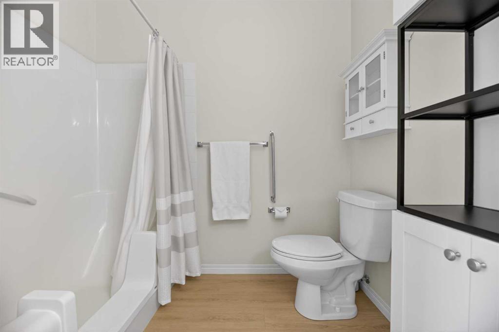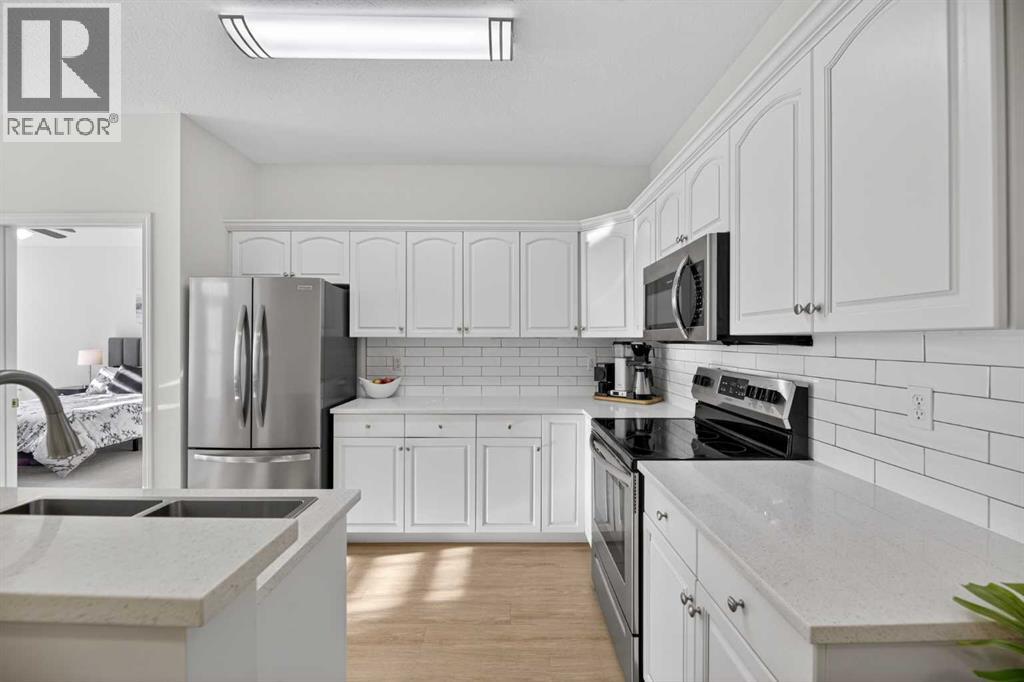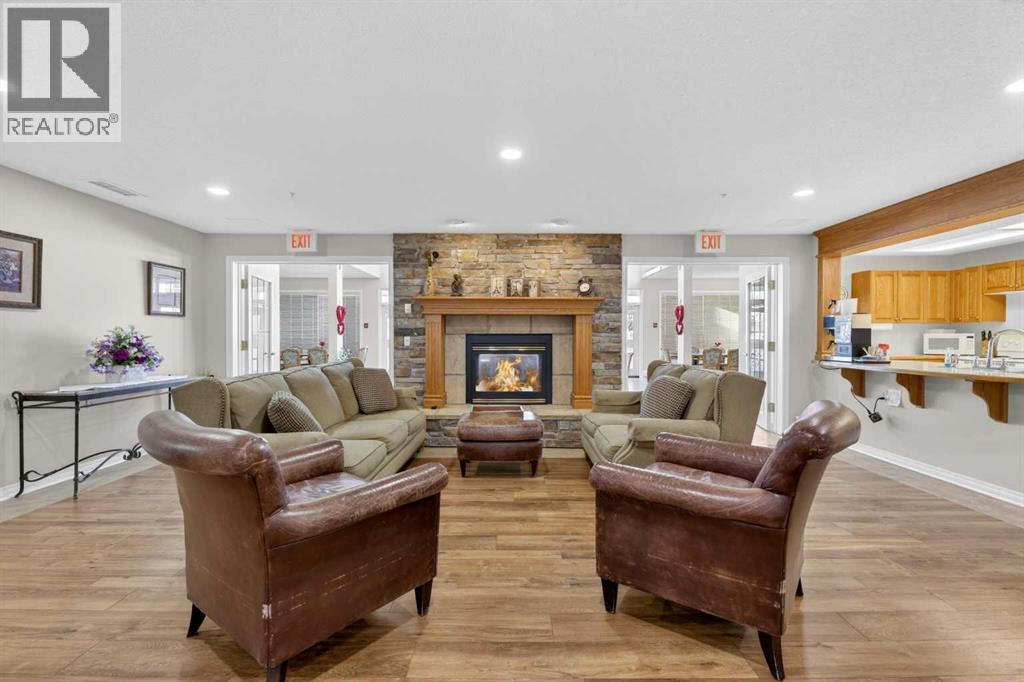 RENOVATED & MOVE-IN READY + SURE TO IMPRESS Legacy Village 55+ condo located in the HEART of Olds! Your beautifully updated & IMMACULATE second storey 2 BED + 2 BATH home with covered 9x7 balcony overlooking the gorgeous WEST GARDENS/GREEN SPACE is the PRIME LOCATION in this sought-after and prestigious FRIENDLY & VERY WELL-MANAGED complex. Your new home also comes w/ ONE outdoor parking stall just steps from the front entrance. The 55+ complex has absolutely ALL of the LUXURY AMENITIES you would require including an owners' lounge with fireplace, a kitchen facility, dining room (seats 50), shuffleboard, billiards, workshop, well-equipped fitness room, puzzle/games room, library room, hair salon, and laundry facility for the bigger loads, etc... PLUS, you have access to TWO rental guest suites for only $65.00 per night when family or friends come to visit. As you enter your BRIGHT, warm and inviting condo you are greeted by a nice sized entrance with mirrored closet...your OPEN LAYOUT features the kitchen off to the side which is open to the living & dining areas that separate the bedrooms - absolute perfect set up for entertaining family & friends! Your LARGE primary bedroom retreat features a spa-like en suite w/ large walk-in tub & shower combo and extra storage cabinets. You will also love the storage your walk-in closet provides. Your second bedroom (or office) is the perfect size, and is located across from the main 3-piece bath. Enjoy the convenience of a generous sized laundry room w/ built-in cabinets, and full sized washer & dryer. The luxurious updates throughout your new home include NEW paint throughout, luxury vinyl plank, carpet, stainless steel appliances, quartz kitchen countertops, modern white subway tile back splash, beautiful spa-like washroom updates, baseboards, updated lighting, designer window coverings, outdoor sun shade on balcony, etc......YOUR NEW HOME LITERALLY HAS IT ALL! Sit back and relax whilst enjoying a nice drink on your c overed balcony that overlooks the beautiful garden area. This complex is ADULT LIFESTYLE at its absolute FINEST! Feel like being social? Each night the complex offers different social activities such as bingo, movie night, crib/cards, happy hour, etc.... Feel like going out? You are minutes away from all of the conveniences that family-friendly Olds has to offer --- grocery stores, clothing shops, restaurants, Olds College, historic theater, and all emergency services (Olds Hospital, etc.). Quick access to Highway 2, and Calgary airport is only 60 mins away! Don't miss out on the opportunity to wake up to the warmth and aesthetic pleasures of Legacy Village -- it feels like being on VACATION every single day! NOTE; CONDO FEES INCLUDE ALL UTILITIES -- PLUS CABLE!! Your unit also comes with it's own assigned storage locker! Enjoy a safe and quiet environment in your very well kept & well-managed complex-- not many units come available in this complex. You will LOVE this JEWEL OF A HOME! (id:63190)