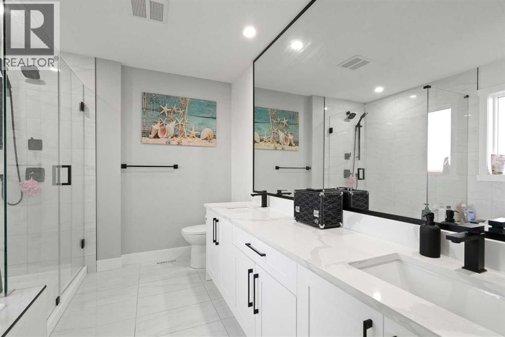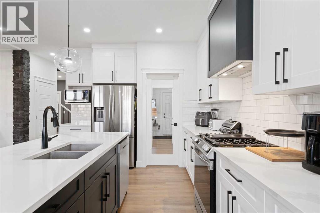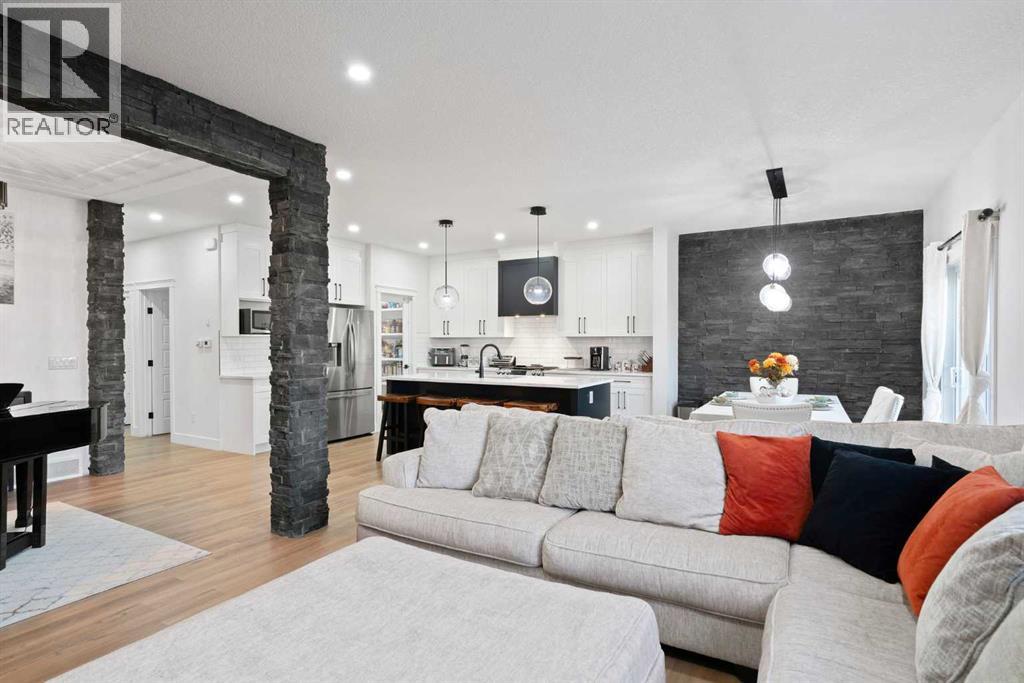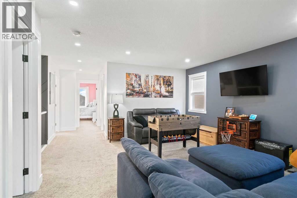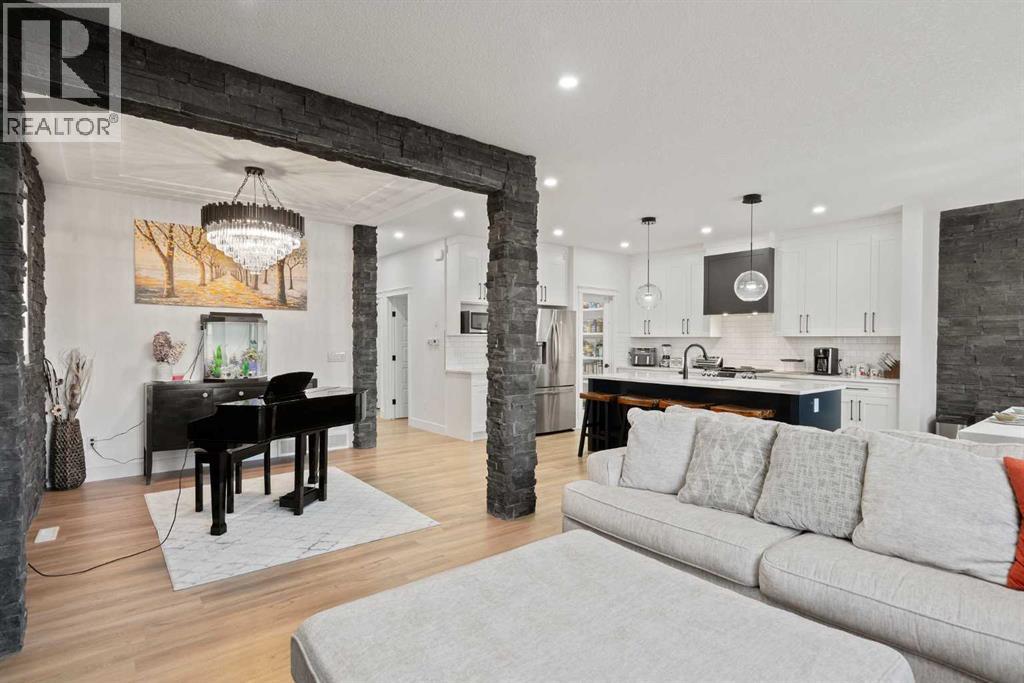 This beautifully designed two-storey home delivers the perfect mix of contemporary style and everyday practicality. The open-concept main level is bright and welcoming, anchored by a crisp white kitchen with quartz countertops, streamlined cabinetry, and a large island that’s perfect for casual dining or entertaining. The adjoining eating nook seamlessly connects to the cozy living area, highlighted by a sleek electric fireplace. A versatile main floor flex room offers endless possibilities — ideal as a home office, formal dining space, or playroom. Upstairs, you’ll find four generously sized bedrooms, including a spacious primary retreat featuring a walk-in closet and a spa-inspired 5-piece ensuite. A central bonus room creates the perfect hangout for movie nights or quiet relaxation, while the upper-level laundry room with sink adds everyday convenience. The fully developed basement offers even more flexibility with a separate entrance and an illegal suite complete with its own kitchen, bedroom, 3-piece bath, laundry, and large recreation area — ideal for extended family, guests, or a home-based business setup. Outside, the sunny backyard is ready for summer enjoyment with a deck and swimming pool — and the pool can remain for the new owners to enjoy. With its thoughtful layout, income potential, and modern finishes throughout, this home offers exceptional value and versatility. Don't miss your chance to move into this better than new home in the sought after community of Edgefield, amazing access to George Freeman school, shopping, parks and pathways! (id:63190)