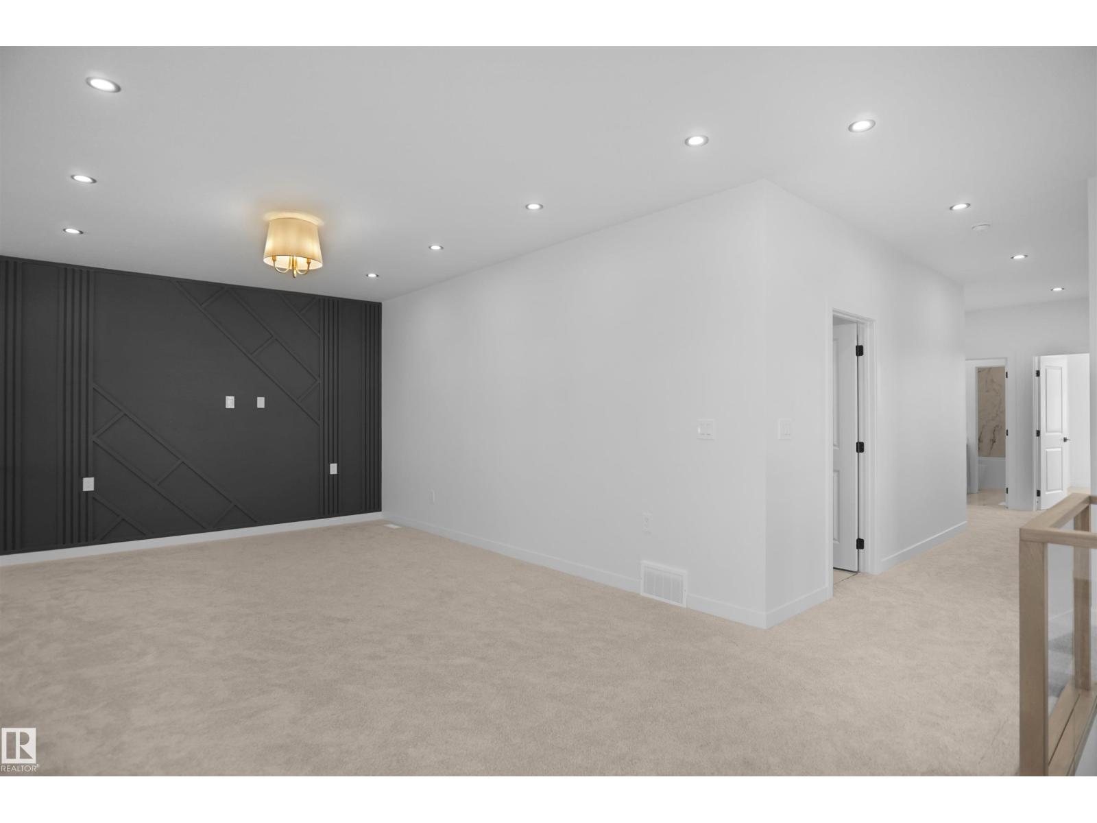 Corner Lot | Triple Car Garage | 2 Private Patios | Bonus Room + Office Space A fully custom and upgraded home in the community of TONEWOOD sounds like a dream! This home boasts over 2600 sq/ft with 4 bedrooms, 3 full baths, bonus room & 9ft ceilings on all three levels. Main floor offers vinyl plank flooring, bedroom/den, family room with 18ft ceiling, fireplace. 2 BIG Kitchen with modern high cabinetry, quartz countertops, island . Spacious dinning area with ample sunlight is perfect for get togethers. The 3 piece bath finishes the main level. Walk up stairs to master bedroom with 5 piece ensuite/spacious walk in closet, 2 bedrooms, 4 piece bath, laundry and bonus room. Public transit to Edmonton, & more than 40 km of trails your dream home home awaits. includes WIRELESS SPEAKERS/ TRIPLE PANE WINDOWS/DECK WITH GAS BBQ HOOKUP (id:63190)