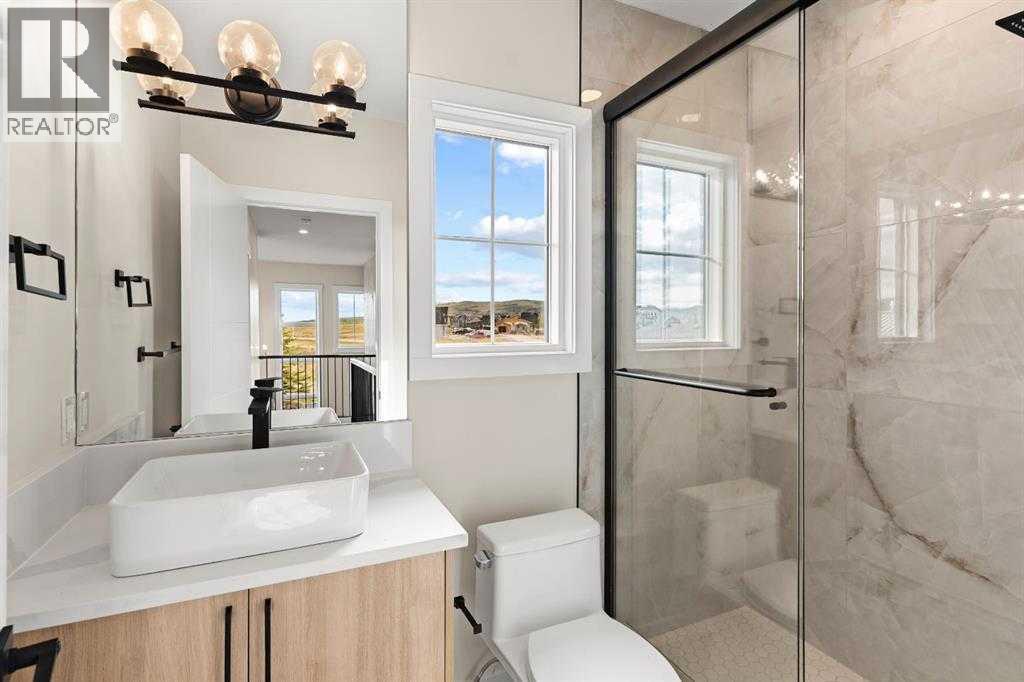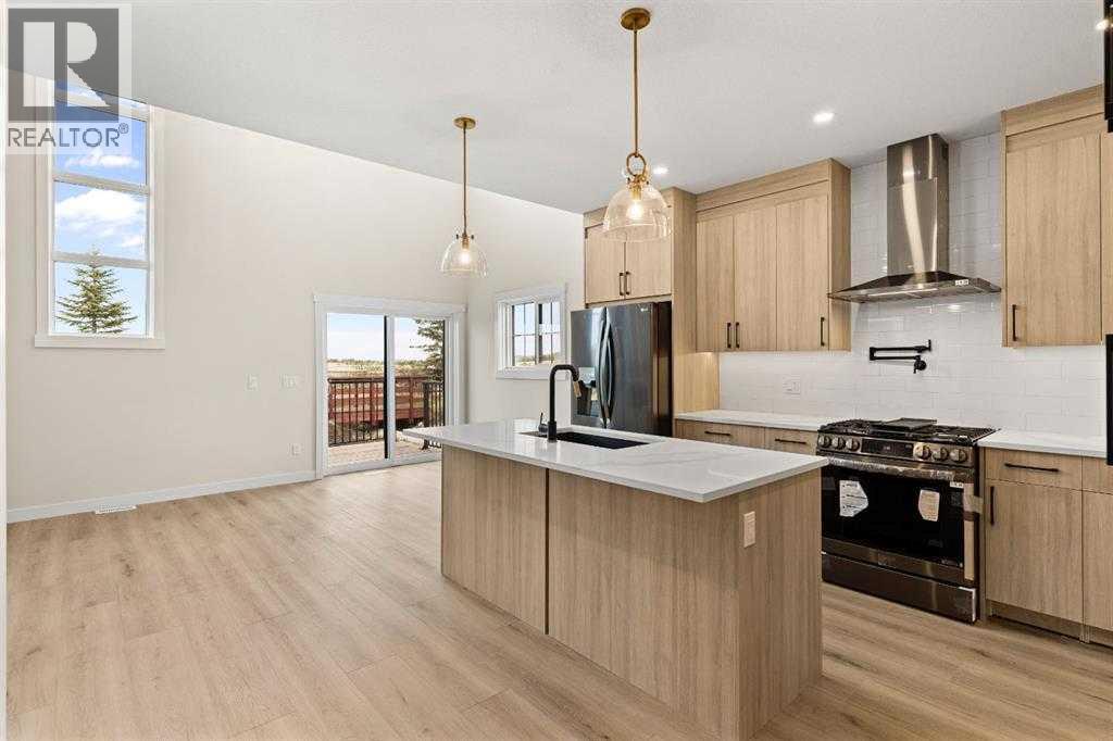 Welcome to Cottage Club at Ghost Lake, a private gated community where you can relax, unwind, and enjoy a lifestyle that feels like a vacation every day. Whether you're looking for a peaceful weekend escape or a year-round retreat, this charming lakefront neighbourhood has everything you need and more.Picture this: your own luxurious cottage, steps from the water, with private beach access, cozy hammocks along the shore, a BBQ area, sand volleyball courts, an observatory, and even a private boat launch with day-use docking for residents. Want more? The community’s recreation centre features an indoor pool, hot tub, fitness facility, tennis courts, library, and a wood-fired pizza oven that’s perfect for summer nights with friends and family.Plus, you're just 20 minutes from Kananaskis, with over 4,000 square kilometers of stunning wilderness to explore—hiking, fishing, skiing at Nakiska, snowshoeing, or simply enjoying the fresh mountain air.This newly built 3-bedroom, 2.5-bathroom cottage by Exquisite Homes offers over 1,400 square feet of beautifully crafted living space. On the main floor, you’ll find a bright open-concept living room with a Montigo gas fireplace, a stylish chef’s kitchen with quartz counters, high-end stainless steel appliances, a gas range, and floor-to-ceiling cabinetry. There’s also a powder room and stacked laundry for added convenience.Step outside to enjoy your front and back patios, perfect for morning coffee or evening drinks under the stars.Upstairs, tall glass railings and an open-to-below design give the home a modern, airy feel. You’ll find two spacious bedrooms and a full four-piece bathroom up here—ideal for guests or family.Downstairs, the fully finished basement is made for entertaining, with a large rec room perfect for movie nights, a full wet bar with a long quartz island, a third spacious bedroom, another full bathroom, and plenty of storage.Whether you're retiring, investing, or simply craving a lifestyle upgrad e, this home checks all the boxes. It also happens to sit on one of the largest developed lots in the entire community.Just minutes from Cochrane, Canmore, Calgary, and the Rockies, this lake retreat offers the peace and privacy you want with the convenience you didn’t expect.Don’t just buy a cottage. Create a lifestyle. (id:63190)