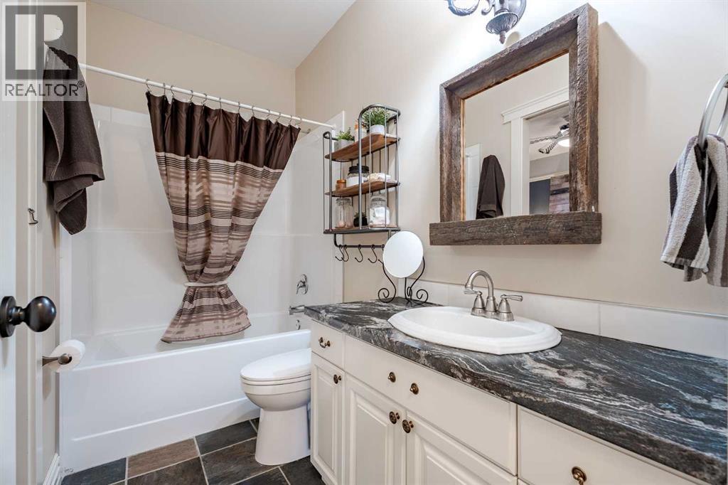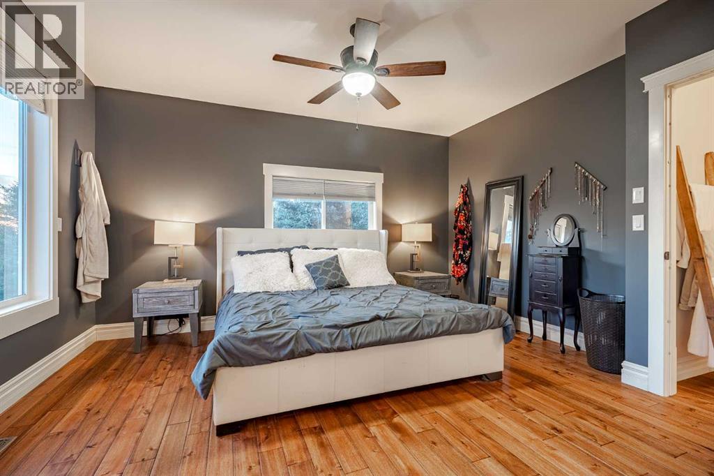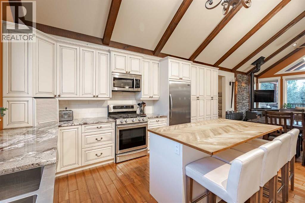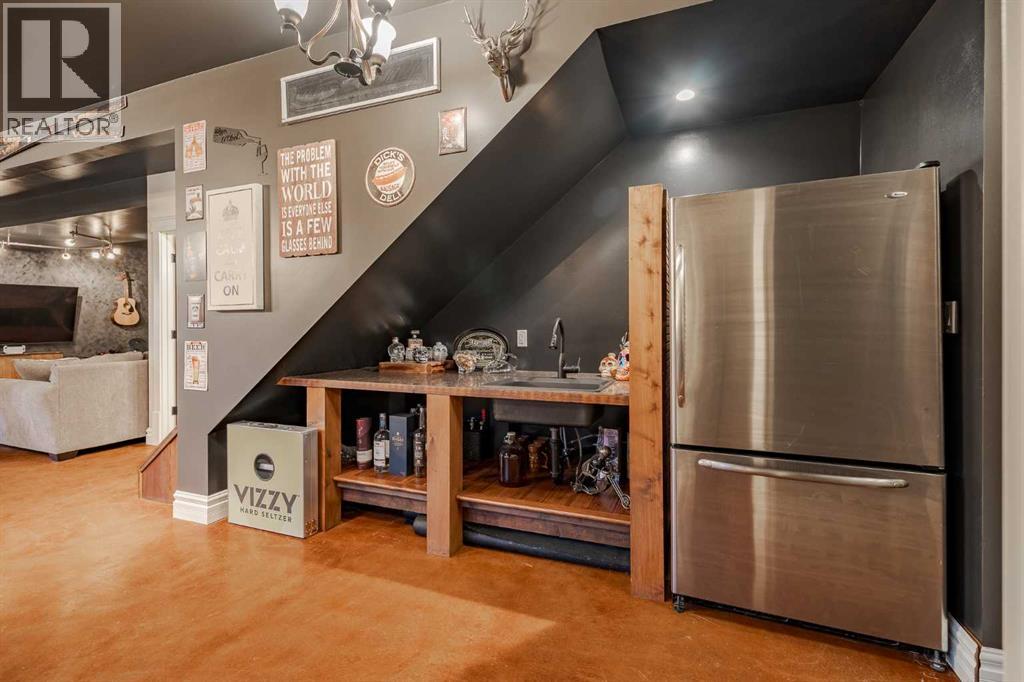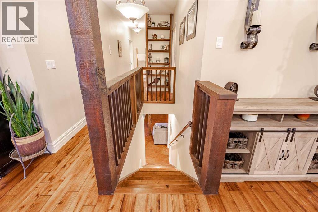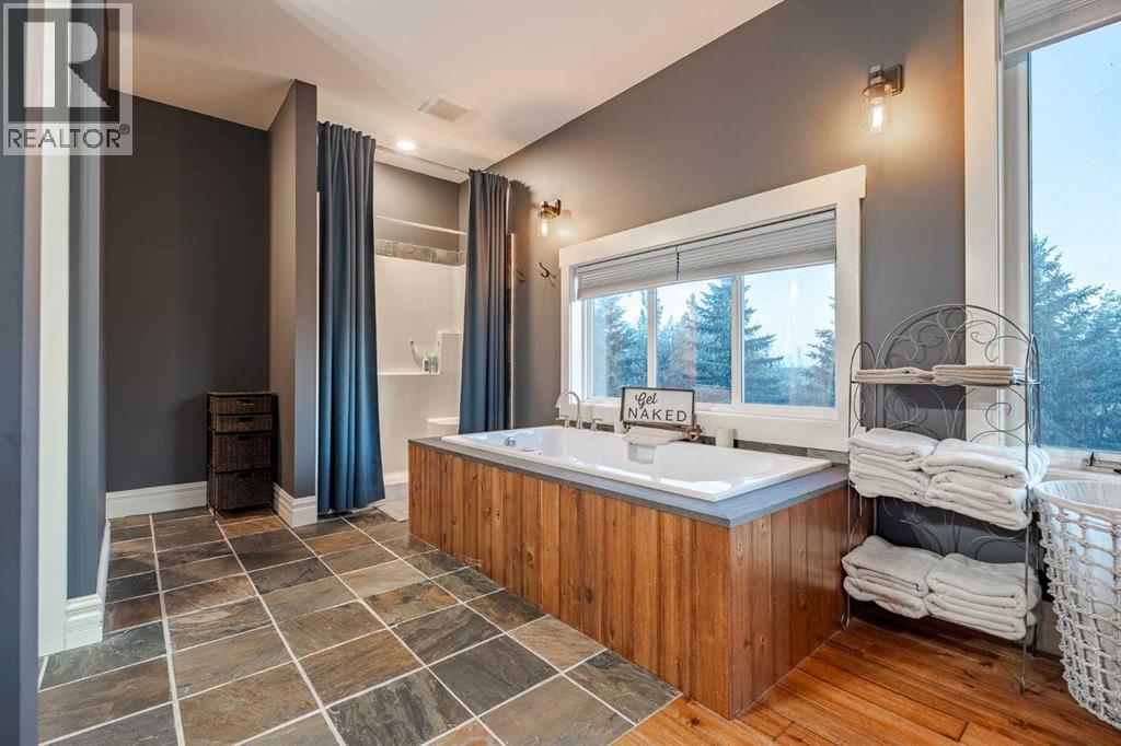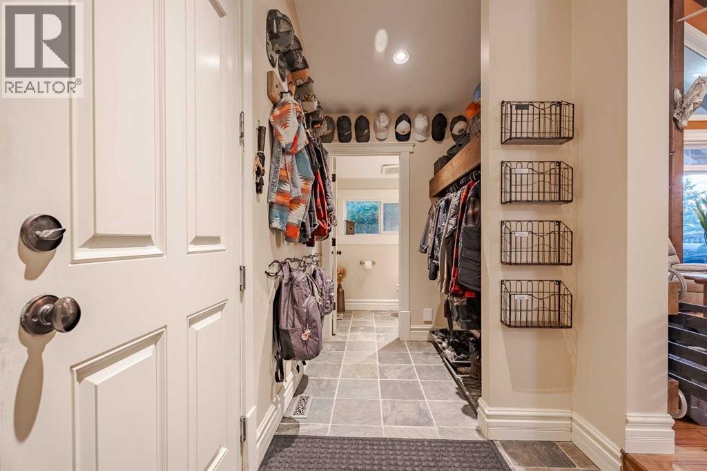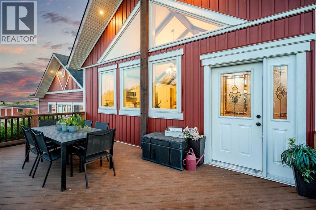 Welcome to this extraordinary walkout bungalow offering over 4,000 sq ft of thoughtfully designed living space with 6 bedrooms, 5 bathrooms, a heated oversized quad garage, a massive 40’ x 60’ insulated shop, and nearly 20 acres of endless possibility just minutes from Calgary. From the moment you arrive, the striking A-frame architecture stretches from the front elevation all the way to the covered back porch, perfectly framing panoramic mountain views. Step into the grand main level, where soaring vaulted ceilings with exposed beams and expansive west-facing windows fill the space with natural light and unforgettable views. The gourmet kitchen features upgraded cabinetry, a large center island, granite countertops, and premium stainless appliances designed for effortless entertaining. The spacious dining area easily accommodates large gatherings, while the open-concept living room is anchored by a cozy gas fireplace.Just down the hall, the generous primary retreat offers an open 4-piece ensuite and a spacious walk-in closet. Two additional bedrooms provide comfortable spaces for family or guests and share access to a well-appointed main bathroom. A versatile office or den is tucked away near the front entry. Downstairs, the walkout basement extends the living space with a massive recreation room, wet bar, three additional bedrooms, and two full bathrooms, including one ensuite – perfect for multi-generational living or hosting guests.Outside, the property continues to impress with an attached heated oversized quad garage and a 40’ x 60’ powered shop ready for your next project, hobby, or home-based business. The multiple livestock areas are thoughtfully arranged and include 3 automatic waterers to support a wide range of agricultural uses. Whether you're envisioning a private rural retreat, a hobby farm, or a future development opportunity, this nearly 20-acre parcel offers it all – and with potential for subdivision pending municipal approval, the possibiliti es are truly endless.All this just 10 minutes to Stoney Trail and 15 minutes to shopping, dining, and amenities in Seton and Mahogany. This is more than a home – it’s your gateway to rural luxury, convenience, and future opportunity. Don’t miss your chance to experience it. (id:63190)