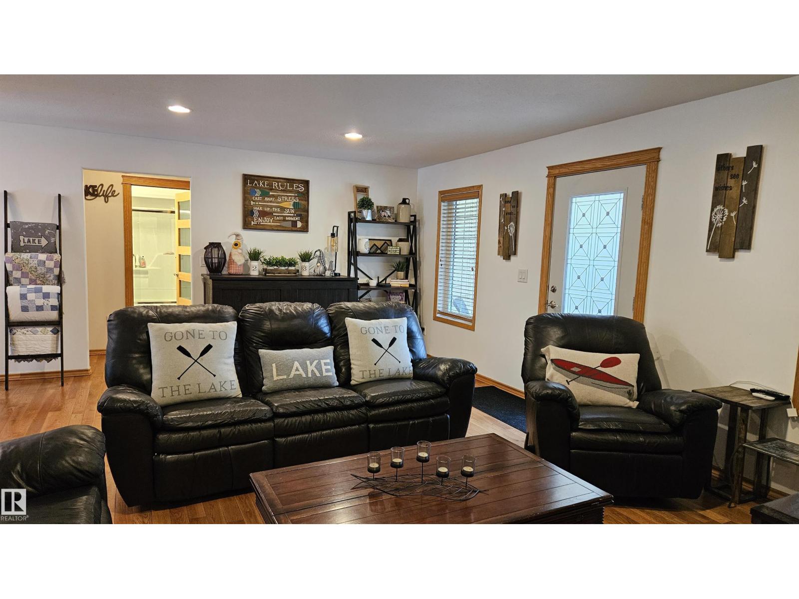 Located just minutes away from the waterfront is this immaculate custom built bungalow at majestic Skeleton Lake, with over 1500 square feet of open concept living space. The private backyard is perfect for entertaining and features a huge 20 x 11 deck, defined fire pit area and amazing views of the forest. The main floor boasts an incredible kitchen with stainless steel appliances, ample cabinets & large eat up island. The dining area has patio doors leading to the massive gorgeous deck. The huge primary bedroom has a 5 piece ensuite & walk-in closet and the separate laundry room is conveniently located a few steps away. On the other end of the home are two more great size bedrooms & a four piece bathroom. Air Conditioning. The double attached garage, 25 X 22, has radiant heat & plenty of space for all your lake toys. A public golf course is in the Summer Village of Bondiss on the east side of the lake. If you enjoy fishing the most popular species caught here are Northern Pike, Yellow Perch and Walleye. (id:63190)