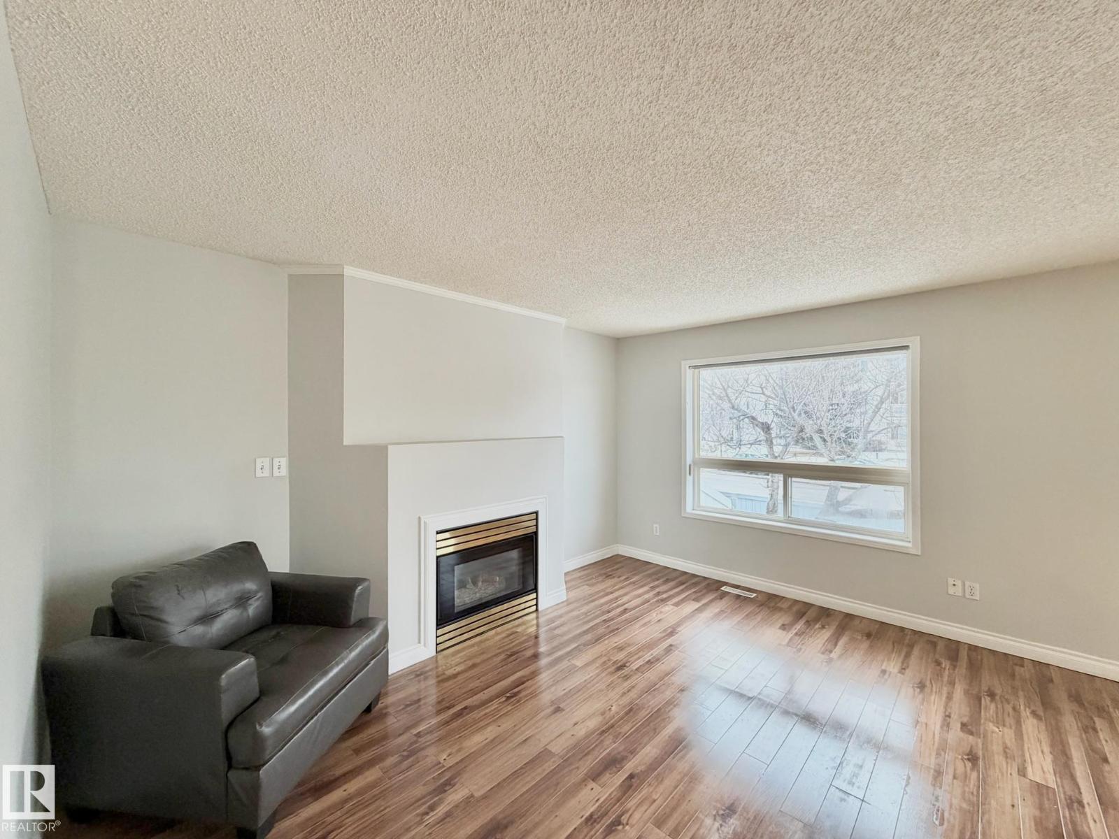 Step into this move-in-ready 3-bedroom, 2-bath END-UNIT townhouse, perfectly situated just steps from Grey Nuns Hospital and the LRT station. The main level boasts a bright, spacious living room with large picture windows, newer laminate flooring, and an open-concept kitchen featuring a functional island and pantry. A cozy gas fireplace enhances the dining and living areas, while patio doors lead to a private deck—perfect for relaxing or entertaining. The lower level offers a generous primary bedroom, two additional bedrooms, a full bathroom, and convenient in-suite laundry. This home provides added privacy with separate front and rear entrances and two energized parking stalls right at your doorstep. Enjoy a partially fenced yard, low-maintenance condo living, and quick possession. Close to shopping, schools, scenic walking paths, and all major amenities, this home offers exceptional value in a prime location. (id:63190)
