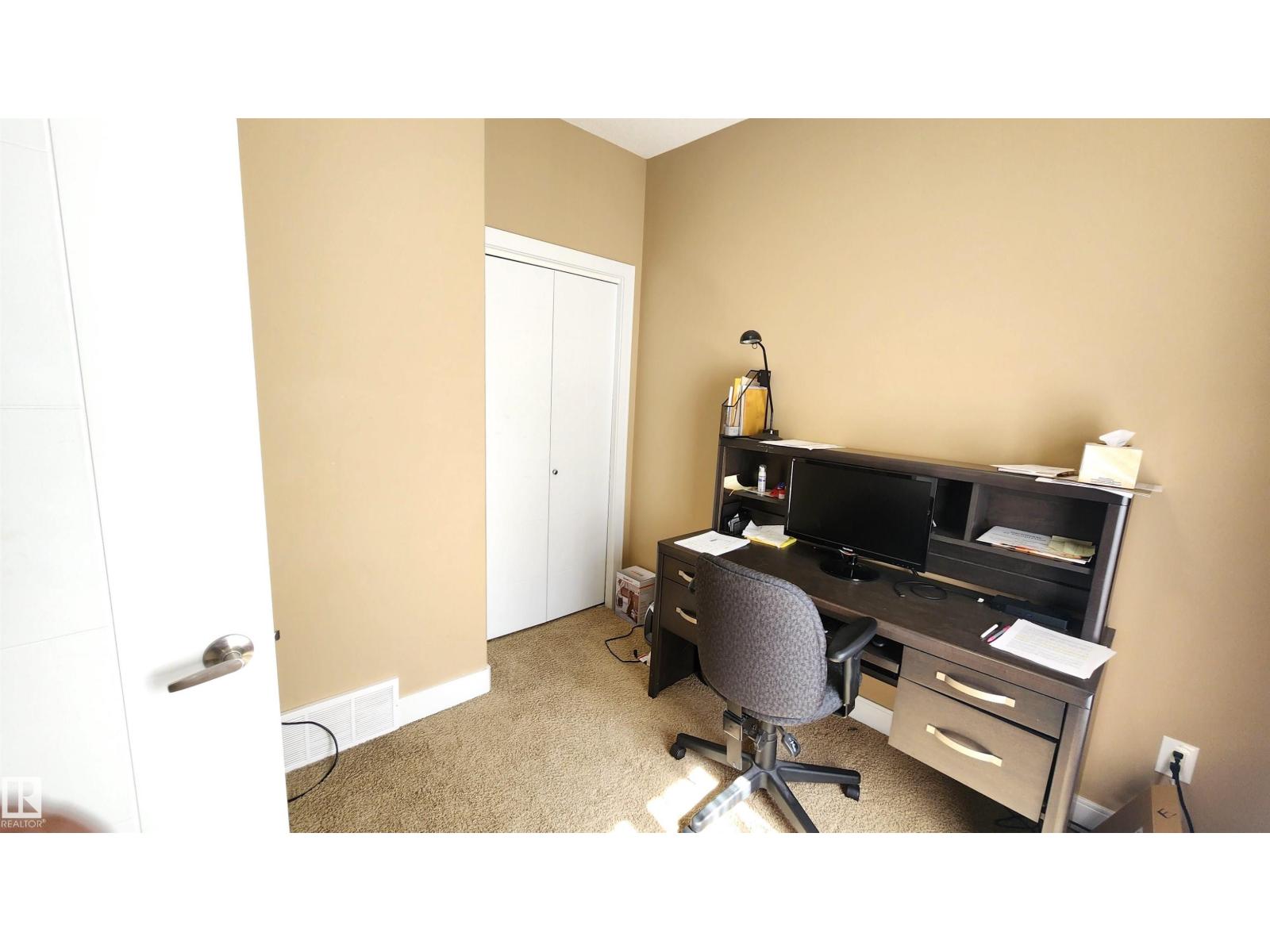 Beautiful townhouse with double attached garage comes with 4 bedrooms, 2.5 bathrooms and offers almost 1500 sqft of living space in prestigious BELLWEATHER PARK. The great room with absolutely gorgeous Vinyl flooring opens into a dining & kitchen area. The kitchen with stainless steel appliance & granite c/tops is a chef’s dream to entertain family and friends. Make your way up the wide staircase to a Romantic main bedroom with 4pce ensuite and double closet. Two more outstanding bedrooms share a full 4 piece bathroom and a stacked washer/dryer area finishes the upper level. Invite a family or friend to enjoy the main level bedroom. Step outside and be greeted by a private balcony or a yard space to die for. This is an absolutely stunning home, great location in a quiet complex and easy access to schools, shopping and all major amenities. Act fast before its gone.... (id:63190)