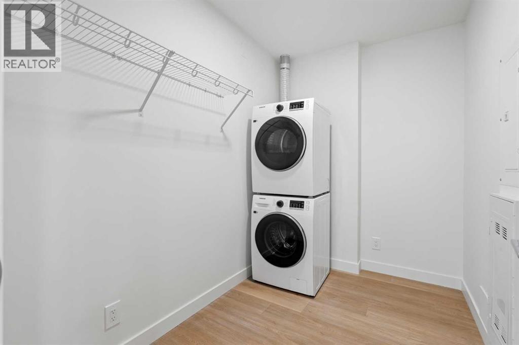 BRAND NEW | 2 BED / 2 BATH / 710 SQ FT | MODERN FINISHES | LOW CONDO FEES | TITLED PARKING – Welcome to East Hills by Minto Communities, an award-winning Canadian builder with over 70 years of experience. This condo complex is located in the growing community of Belvedere, just steps from East Hills Shopping Centre. Designed to foster a true sense of community, East Hills features pedestrian pathways, nearby greenspace, and a walkable, neighbour-friendly layout. Enjoy unbeatable convenience with Costco, Walmart, banks, restaurants, and everyday essentials right across the street, along with quick access to major roadways and public transit for an easy commute downtown or around the city.This brand-new 2 bedroom, 2 bathroom condo offers a smart and functional layout with 772 sq ft of well-designed living space and modern finishes throughout. The kitchen is located at the front of the home and features a large island, stainless steel appliances, and ample cabinetry for storage. The open-concept design flows seamlessly into the living area at the back of the home, where you’ll find access to the balcony—ideal for relaxing, entertaining, or enjoying summer evenings.The thoughtfully designed split-bedroom layout provides added privacy, with bedrooms located on either side of the home. The primary bedroom is situated to the right of the living room and includes a walk-in closet and a 3-piece ensuite bathroom. On the opposite side, you’ll find the second bedroom, an additional full bathroom, and a closet, making this layout ideal for roommates, guests, or a home office setup. At the very front of the home is a dedicated storage room with in-suite washer and dryer for added convenience.Additional highlights include titled parking, a pet-friendly building (with restrictions), access to an on-site fitness centre located in Building 3000, and a rooftop patio in Building 1000—both available to all residents—enhancing the lifestyle appeal of this low-maintenance home. With mo dern design, low condo fees, and an exceptional location, this is an excellent opportunity for first-time buyers, investors, or those looking to downsize in one of southeast Calgary’s most convenient communities. Contact Minto’s sales staff and book your visit today! (id:63190)