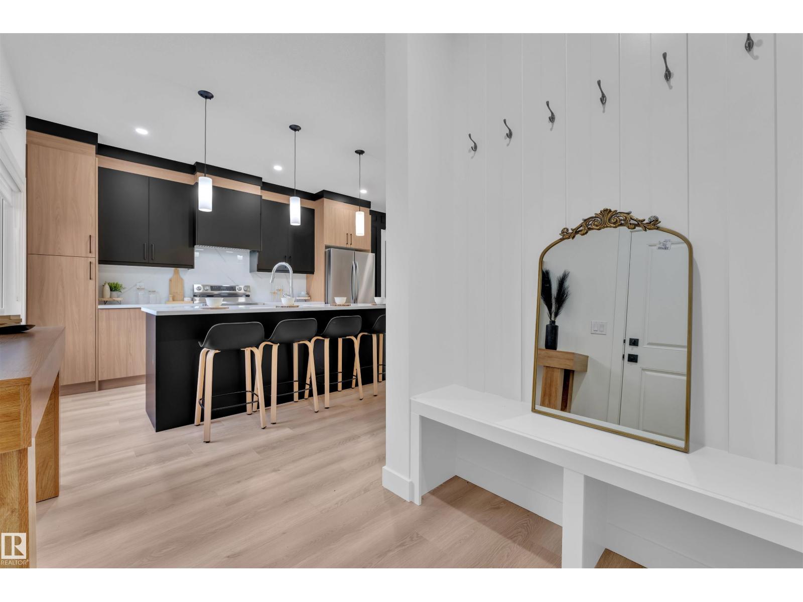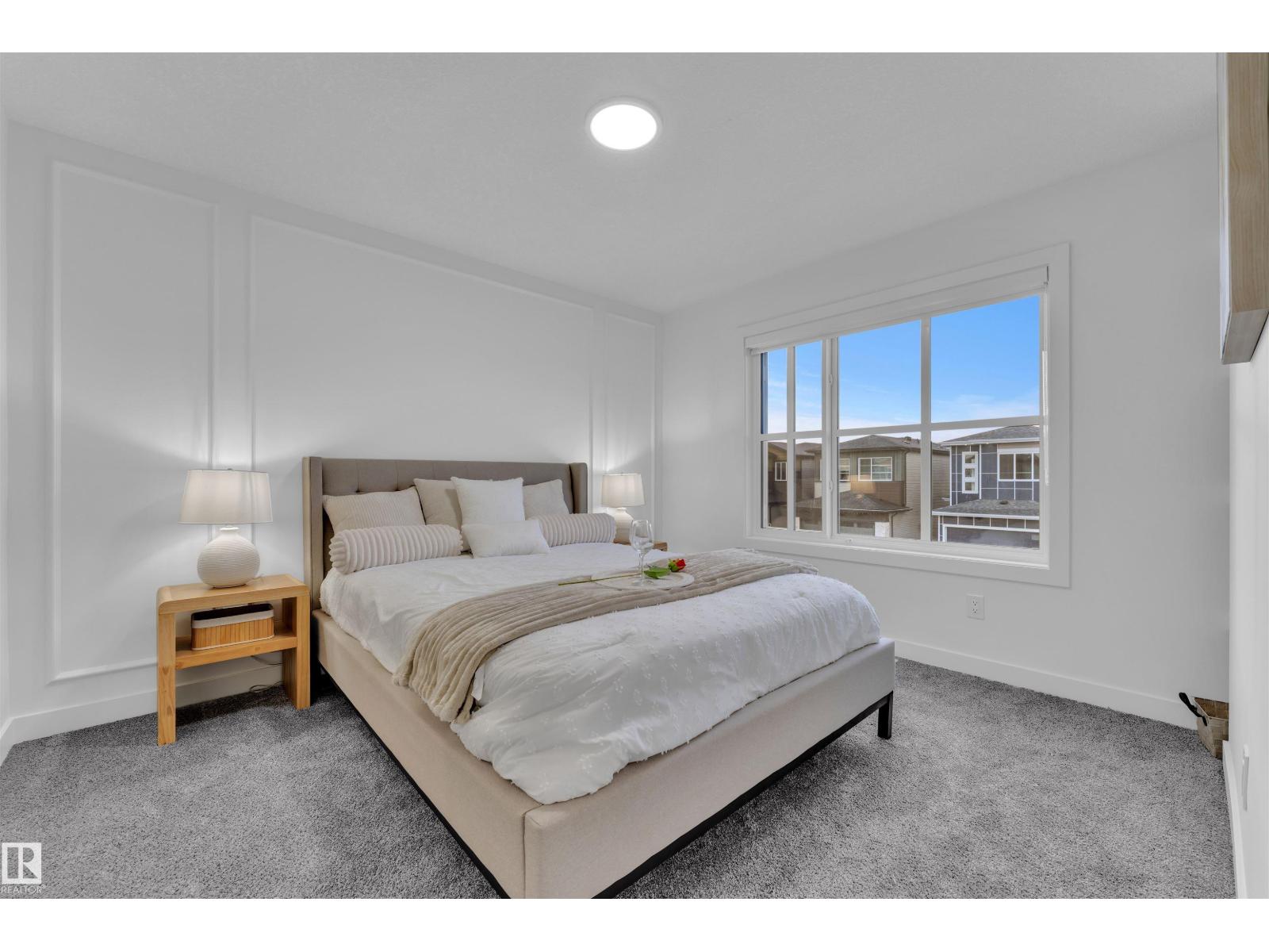 In ELAN Beaumont built by Singh Builders! Welcome to this striking brand-new rear lane home with over 1600 sq ft of living space perfect for 1st time buyers. With a versatile design this home offers a bright and open layout. The main level features a spacious living area which flows seamlessly into the contemporary kitchen with quartz counter tops and abundant cabinetry. A mudroom and a convenient powder room complete the main floor. Upstairs, you’ll find three generously sized bedrooms, including a serene primary suite complete with a walk-in closet and private ensuite. Two additional bedrooms, a bathroom, a loft and convenient upper-floor laundry complete the upper level. Designer finishes and quality material gives this home an elevated feel. Located close to future parks, trails and community amenities. With easy commuting to Edmonton and Airport this house is perfect to call a home. Fantastic opportunity Don't miss the chance to own this. (id:63190)