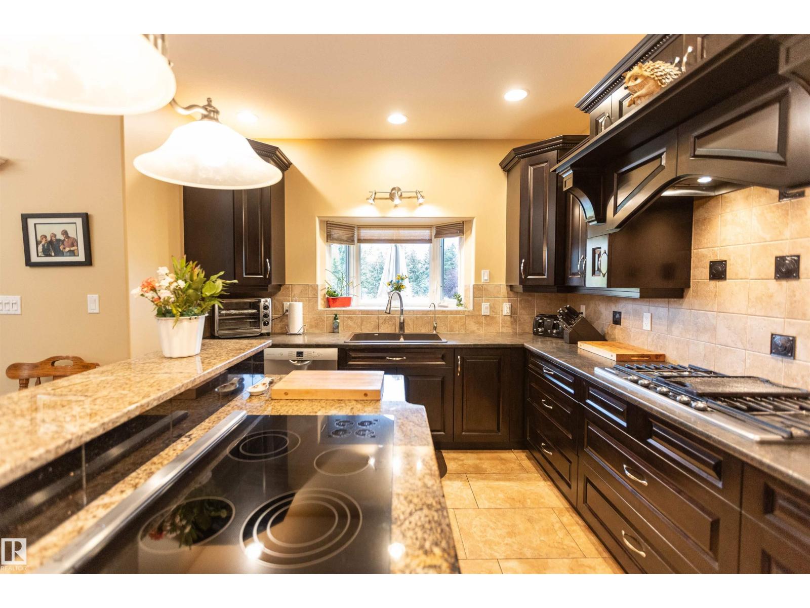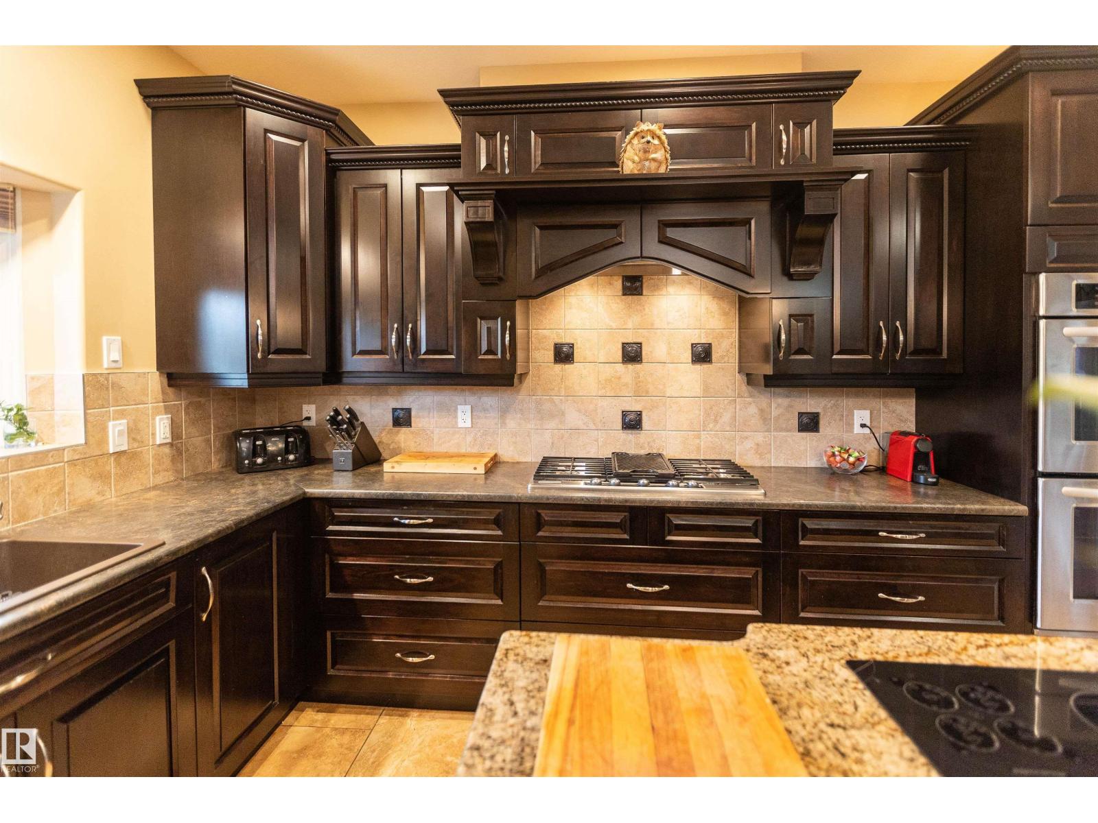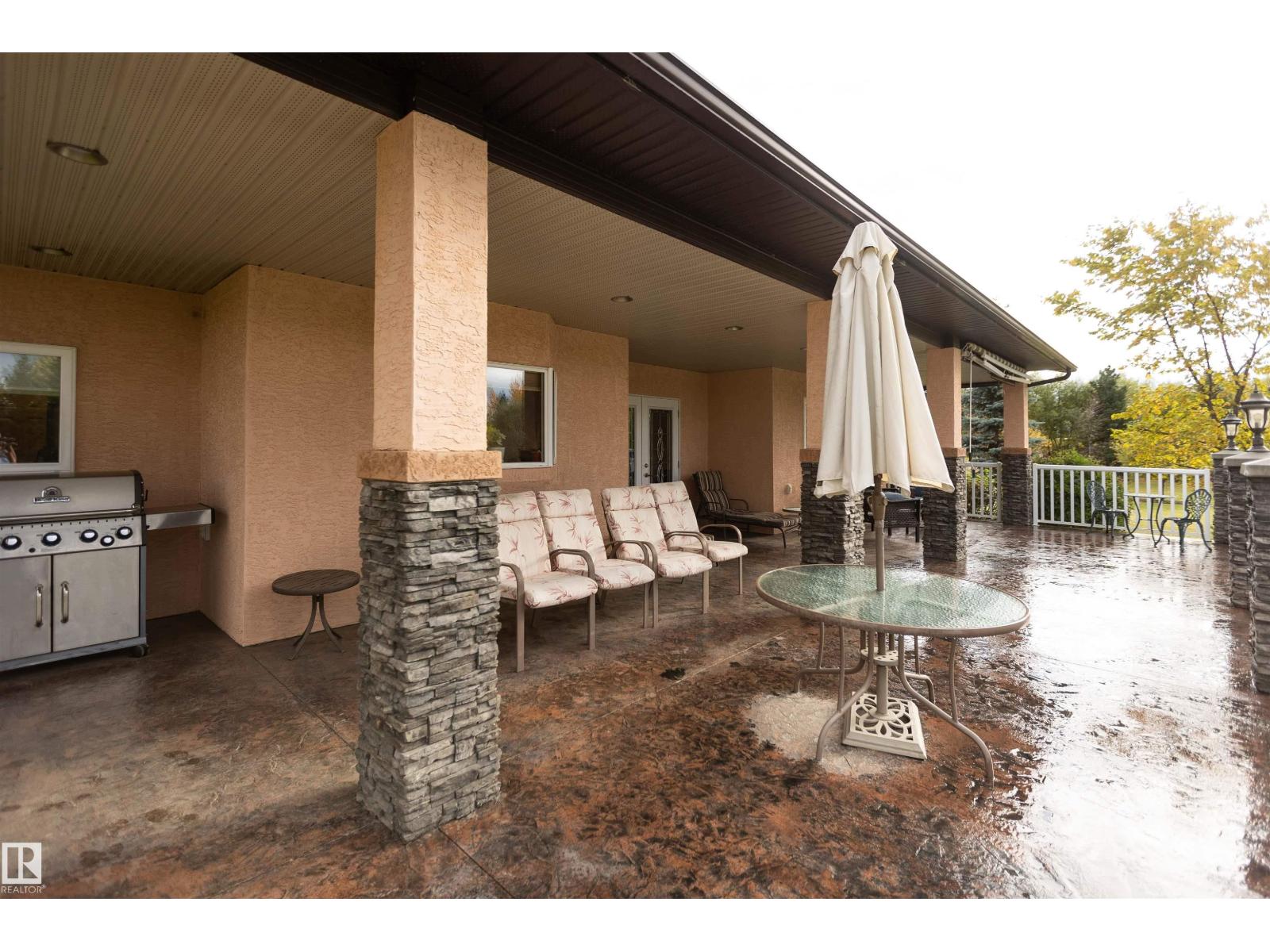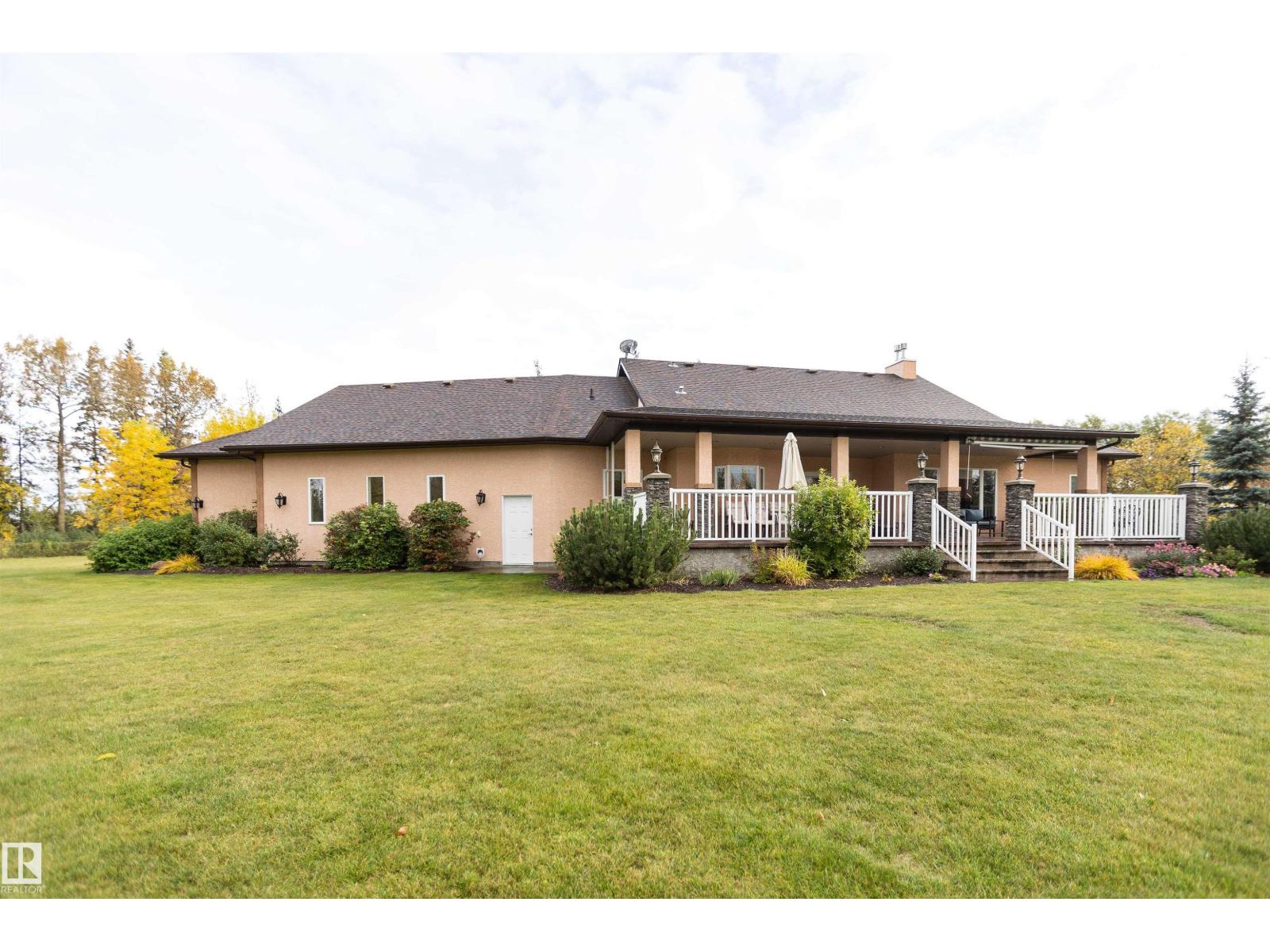 Privacy, elegance & beauty are all here - magical 5 acres 2 KM to town. Stunning 2,135 sq ft home (9' ceilings) w/attch triple garage (12' ceiling). Exquisite chef's kitchen w/large island, brkfst area, dble oven, dble microwave, gas stovetop, electric stovetop, Bosch D/W, fridge w/ice & water, butler's pantry w/bar-fridge. Dining room w/hand-scraped floors. Big laundry rm w/sink & storage. Liv rm w/gas firepl. Office/den w/oak floor & walls w/library & gas firepl. Huge primary suite w/w.i. closet, gorgeous ensuite bath - dble sinks, air-swirl tub & separate shower. 9' bsmt w/in-flr heat, tv/den area, fmly room w/pool table & wet bar w/bar-fridge, wine closet, 2 big bdrms w/huge closets, 4 pce bath plus an exercise room. Patio doors to huge concrete deck 17'x44' w/roof over half & glass windbreak. Beautiful yard w/lawns, vegetable garden, well lit firepit area on concrete, amazing kid's treehouse, long concrete driveway lined w/tall, wired lamps & 20' Aspens. Good well & town water at road. QUALITY IN ALL (id:63190)