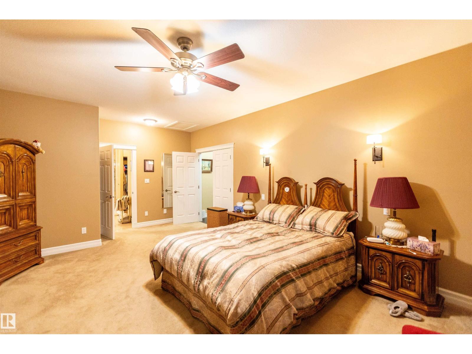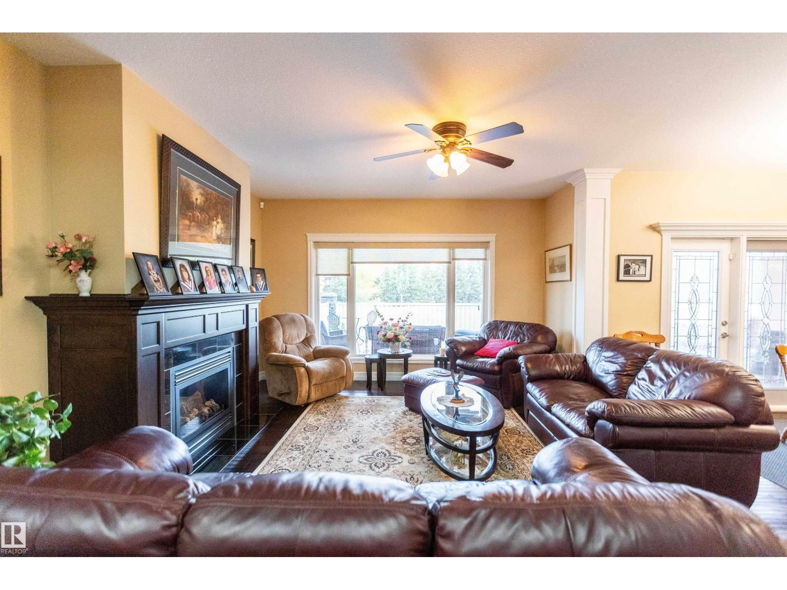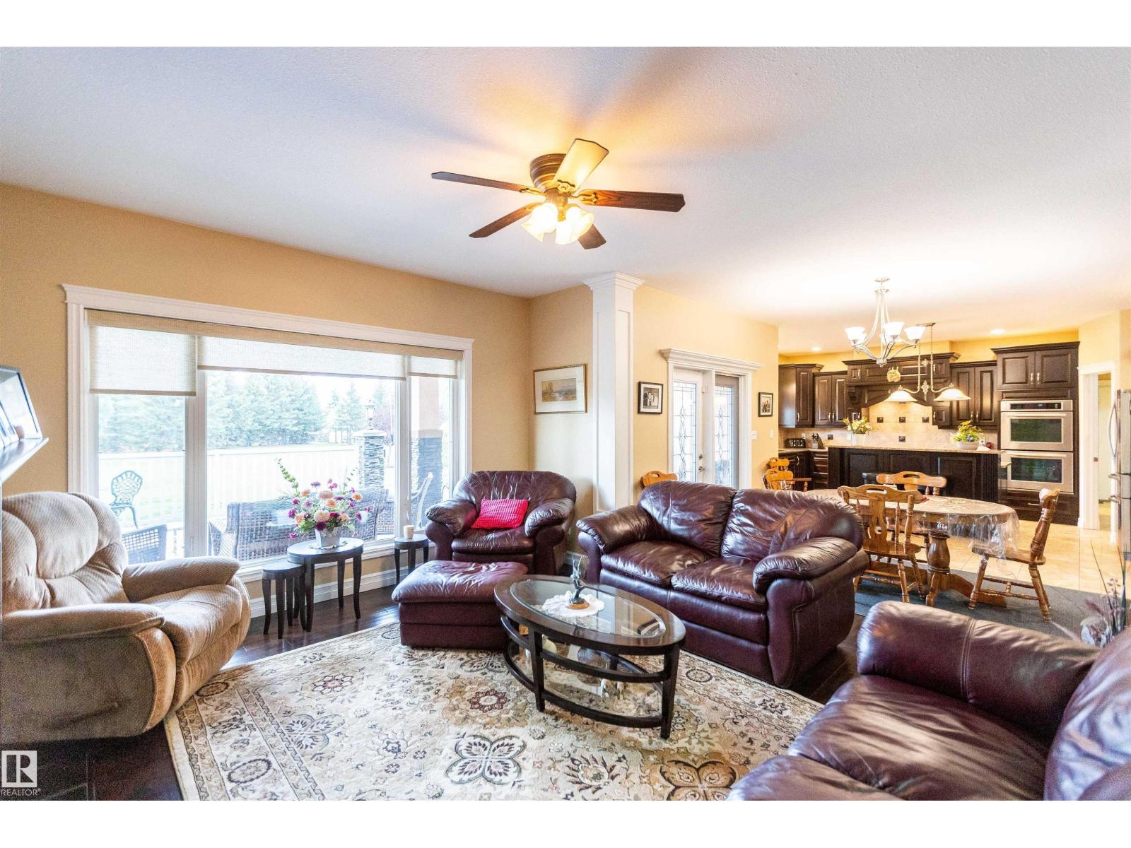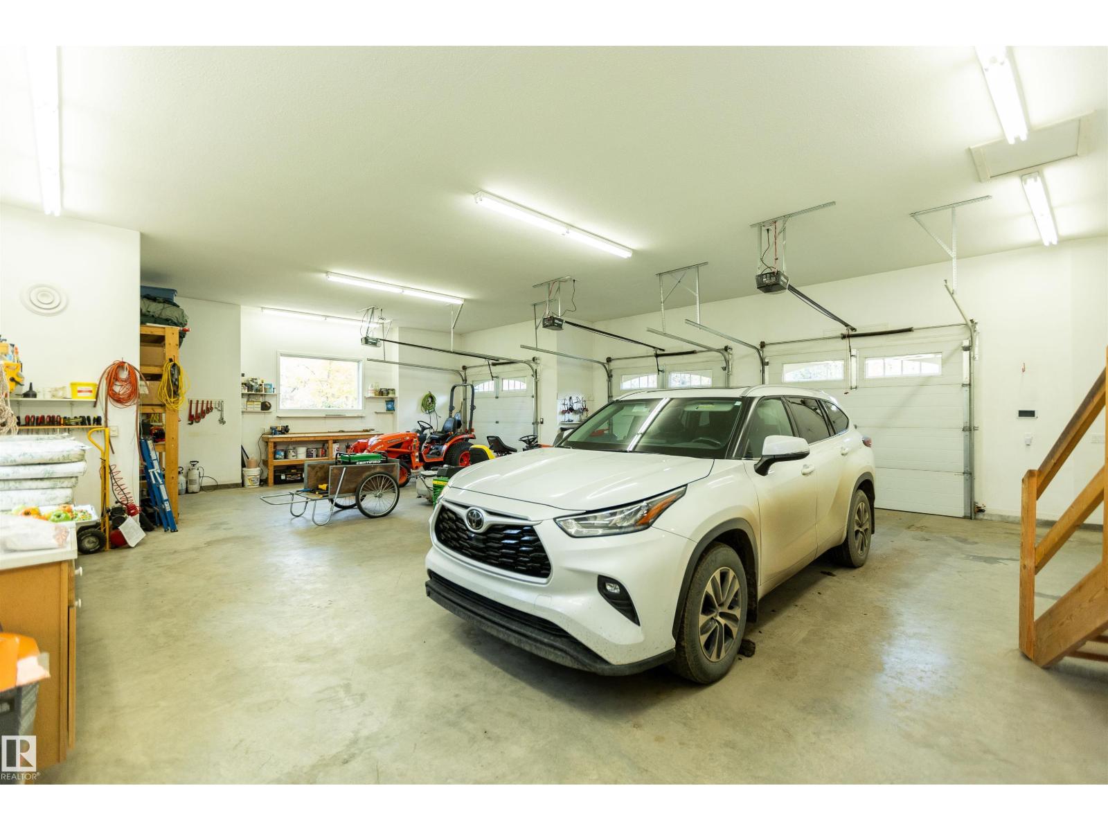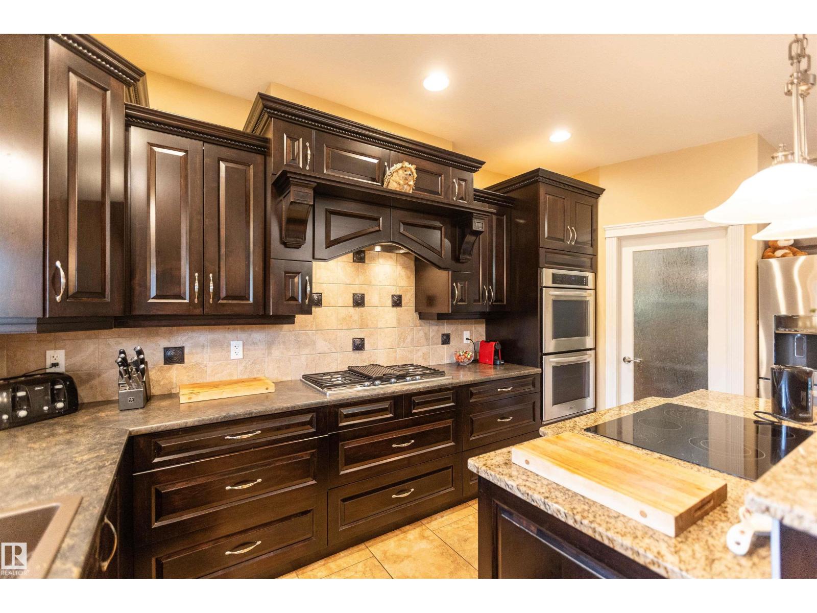 Privacy, elegance & beauty are all here - magical 5 acres 2 KM to town. Stunning 2,135 sq ft home (9' ceilings) w/attch triple garage (12' ceiling). Exquisite chef's kitchen w/large island, brkfst area, dble oven, dble microwave, gas stovetop, electric stovetop, Bosch D/W, fridge w/ice & water, butler's pantry w/bar-fridge. Dining room w/hand-scraped floors. Big laundry rm w/sink & storage. Liv rm w/gas firepl. Office/den w/oak floor & walls w/library & gas firepl. Huge primary suite w/w.i. closet, gorgeous ensuite bath - dble sinks, air-swirl tub & separate shower. 9' bsmt w/in-flr heat, tv/den area, fmly room w/pool table & wet bar w/bar-fridge, wine closet, 2 big bdrms w/huge closets, 4 pce bath plus an exercise room. Patio doors to huge concrete deck 17'x44' w/roof over half & glass windbreak. Beautiful yard w/lawns, vegetable garden, well lit firepit area on concrete, amazing kid's treehouse, long concrete driveway lined w/tall, wired lamps & 20' Aspens. Good well & town water at road. QUALITY IN ALL (id:63190)