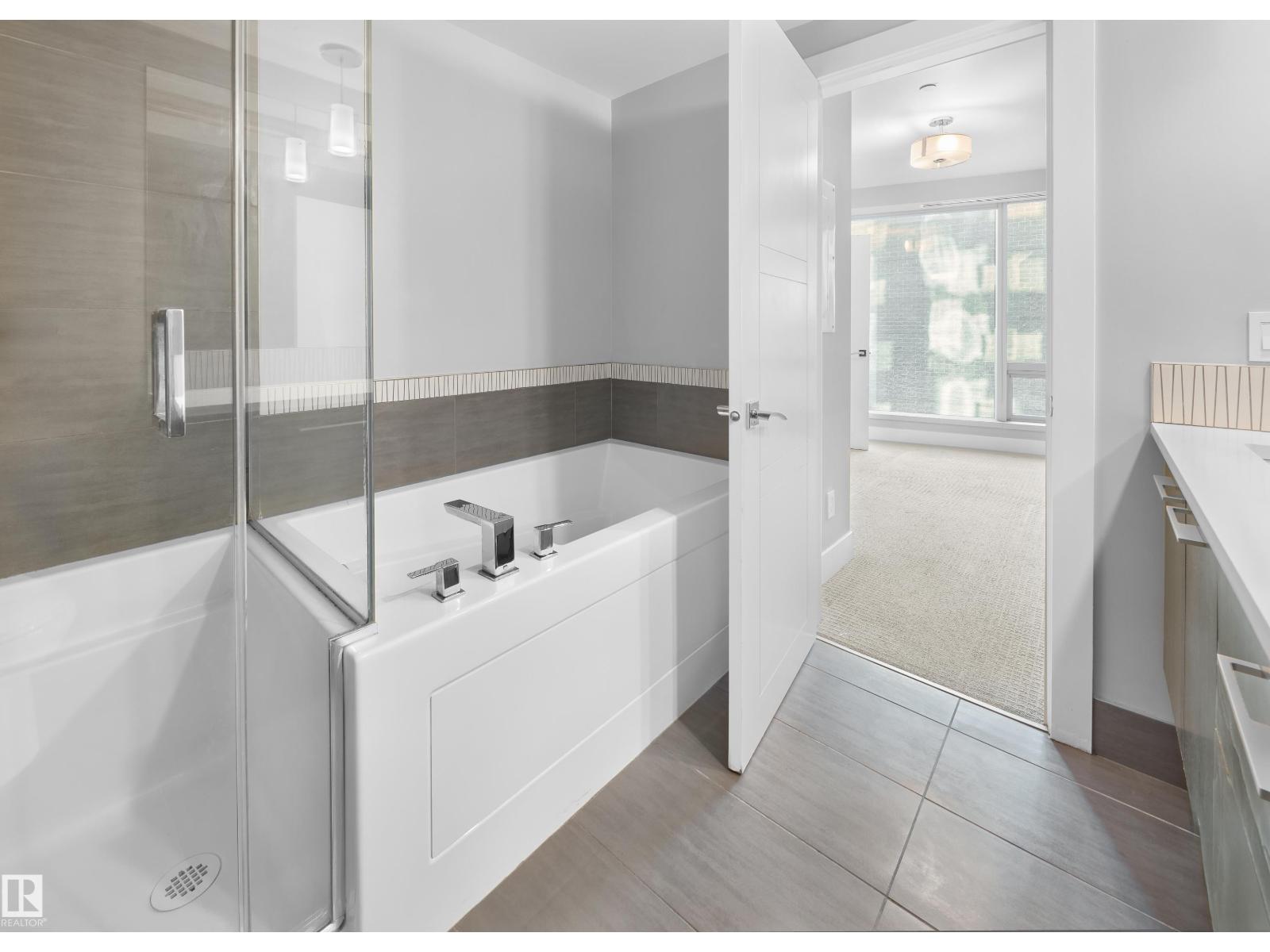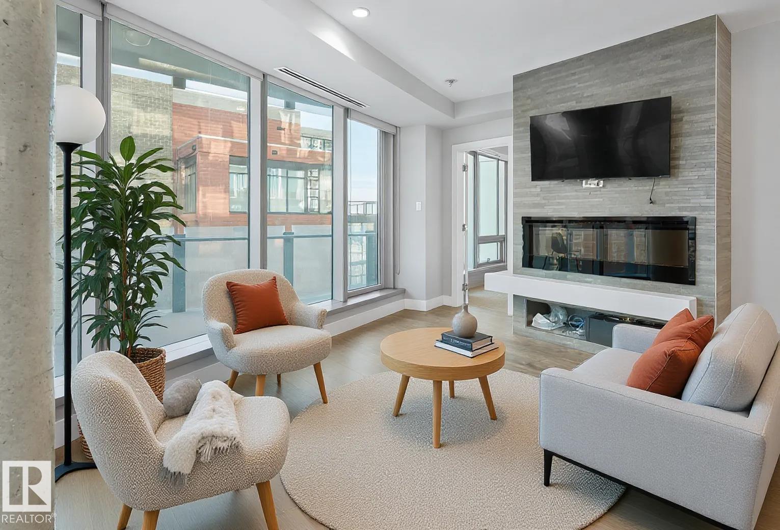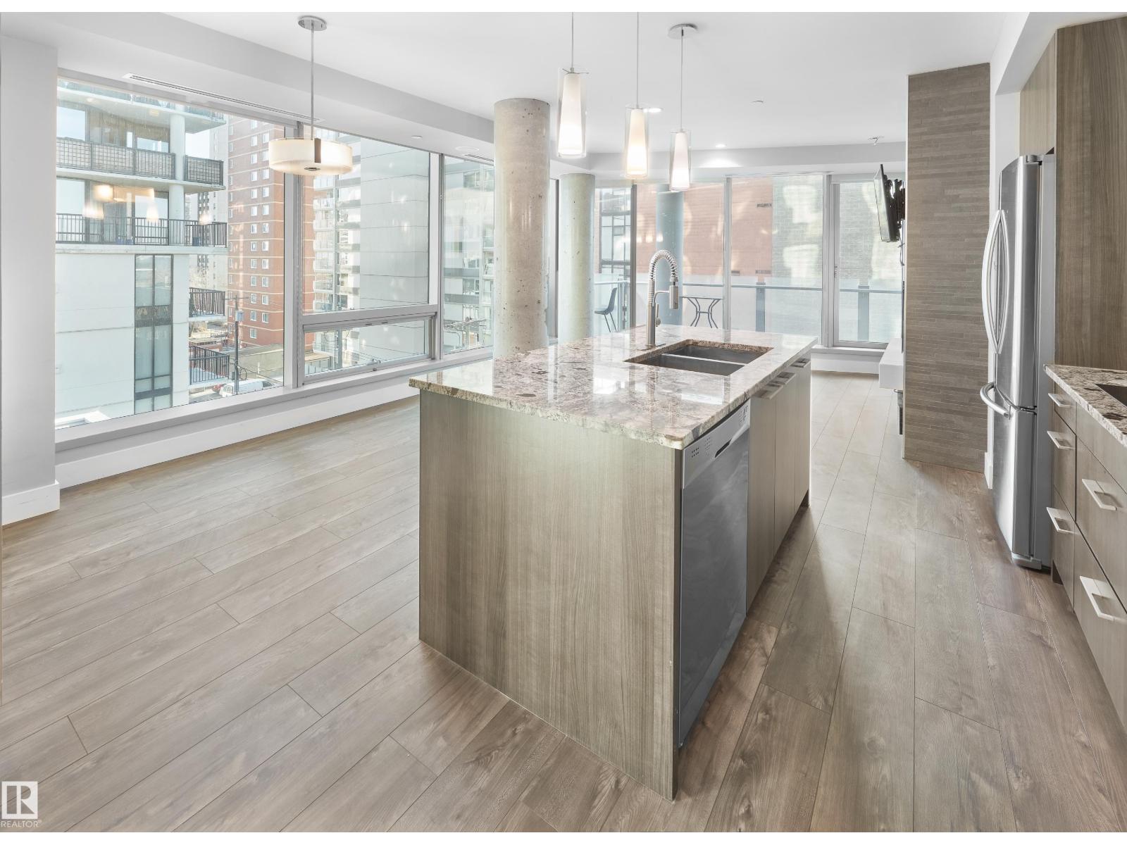 Immaculate 2-bedroom, 2-bath executive condo in the prestigious Pearl Tower. This beautifully maintained unit features floor-to-ceiling windows, new white oak engineered flooring, and an open, stylish floor plan. The contemporary kitchen offers granite counters and stainless steel appliances, flowing seamlessly into a bright living area with glass-door access to your private balcony. The layout includes two spacious bedrooms and two well-appointed bathrooms, including a 4-piece bath with a soaker tub/shower surround. Additional highlights: in-suite laundry, heat-pump heating and central A/C, and more. Enjoy premium building amenities such as concierge service, a well-equipped fitness centre, and elegant social rooms with a kitchen and outdoor patio. All set in an exceptional location close to restaurants, shopping, transit, and Edmonton’s River Valley. (id:63190)