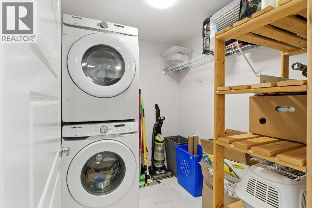 Experience elevated condo living at The Rise of Harvest Hills in this impeccably upgraded third-floor unit offering two bedrooms and two full bathrooms with a true show-suite feel. Flooded with natural light from expansive windows and enhanced by 9’ ceilings, the open-concept layout is both airy and inviting. The designer kitchen features quartz countertops, a custom tile backsplash, two-tone white and deep blue cabinetry, premium stainless steel appliances including a fridge with ice and water, a large island, perfect for everyday living or entertaining. The primary bedroom is a private retreat with a walk-in closet and a spa-inspired ensuite showcasing illuminated vanity mirrors, while the second bedroom is ideally positioned next to a stylish four-piece bath with tub, making it perfect for guests or roommates. Enjoy the convenience of in-suite laundry with added storage, a large sunny balcony with gas line for BBQs, titled underground parking, and a secure, well-managed building. Located just steps from shopping, dining, parks, and pathways, with quick access to Deerfoot and Stoney Trail. Great for frequent travellers with quick access to the airport. This move-in-ready condo offers luxury, comfort, and unbeatable convenience in one of Calgary’s most connected communities. (id:63190)