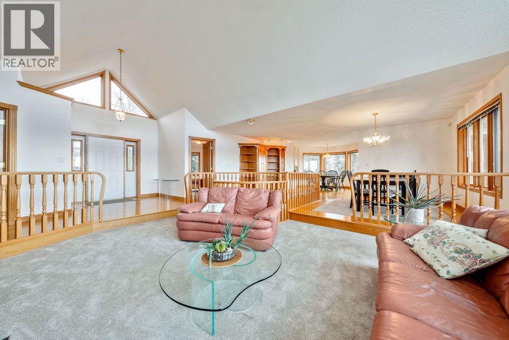 Words cannot describe the view from this beautiful walk out bungalow with over 3800 sq ft of living space in Priddis Woods. Mountains, mountains and more mountains! Artists and photographers of all abilities will be unable to take their eyes away from one of nature's finest displays of Southern Alberta. This is truly a special location. A home for the most discerning buyer. Sunshine highlights the gleaming hardwood floors .. and of course the view. A beautiful sunroom ..to gaze at the view. a wall of windows in the living room and dining room catch.. yes the view. Three large bedrooms upstairs and the primary bedroom has .... you guessed it .. the view. Walking down the circular staircase to the large family room you eyes immediately go to.. the view! Another three bedrooms on lower level .. and yes of course they have views, underfloor heating throughout this level and a stair to the attached triple garage which also has underfloor heating. Garage also has access from upper level. Carpet recently replaced. This property has towering spruce trees, sunshine and although you do have neighbours you can imagine yourself in your own private space with no-one else around. A walking pathway around the community encourages strolls through nature. If you are looking for that very special place you must come and see this property. Oh .. and did I mention the views?? (id:63190)
