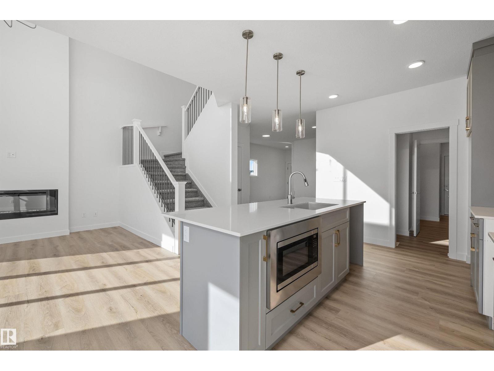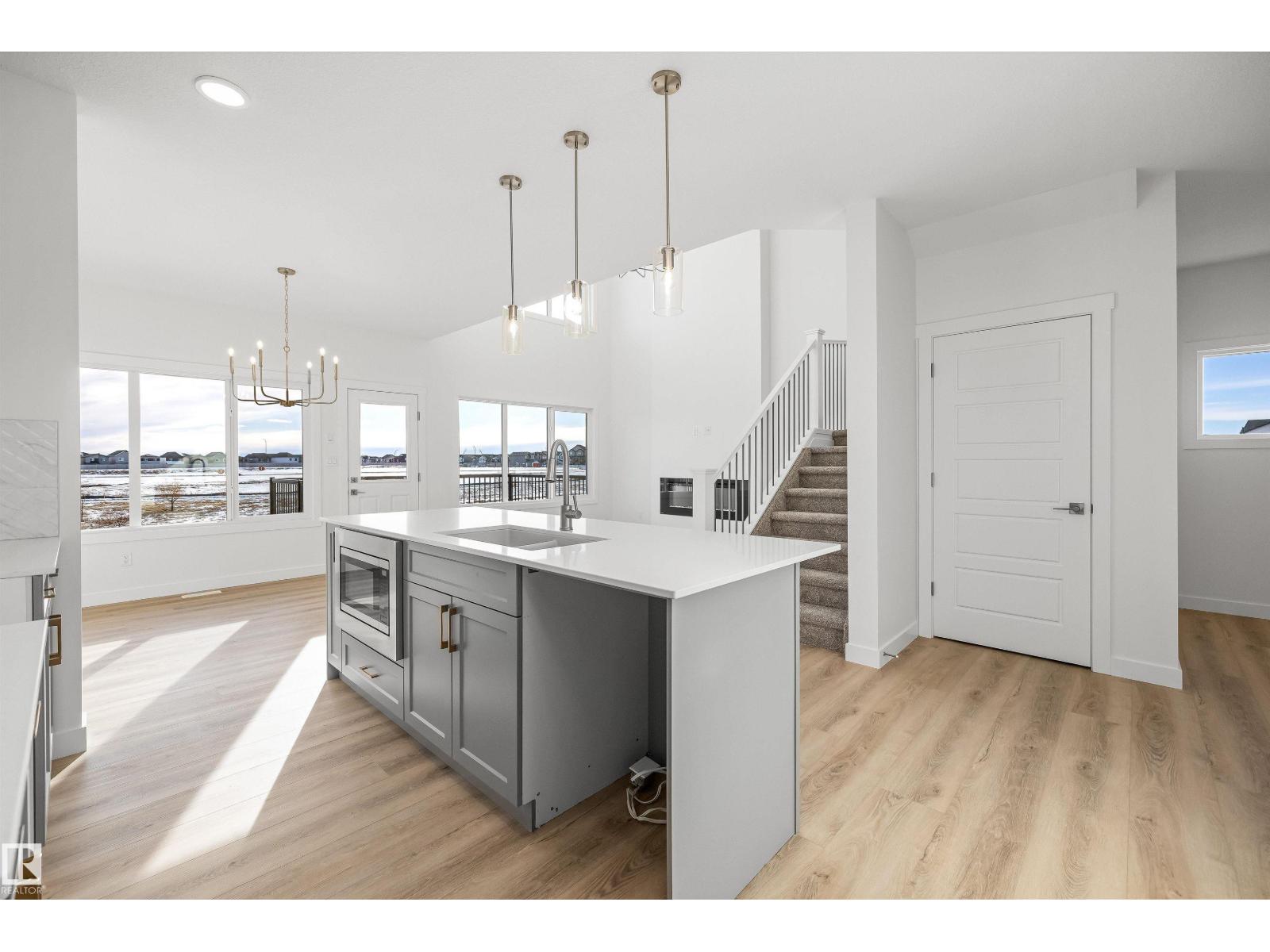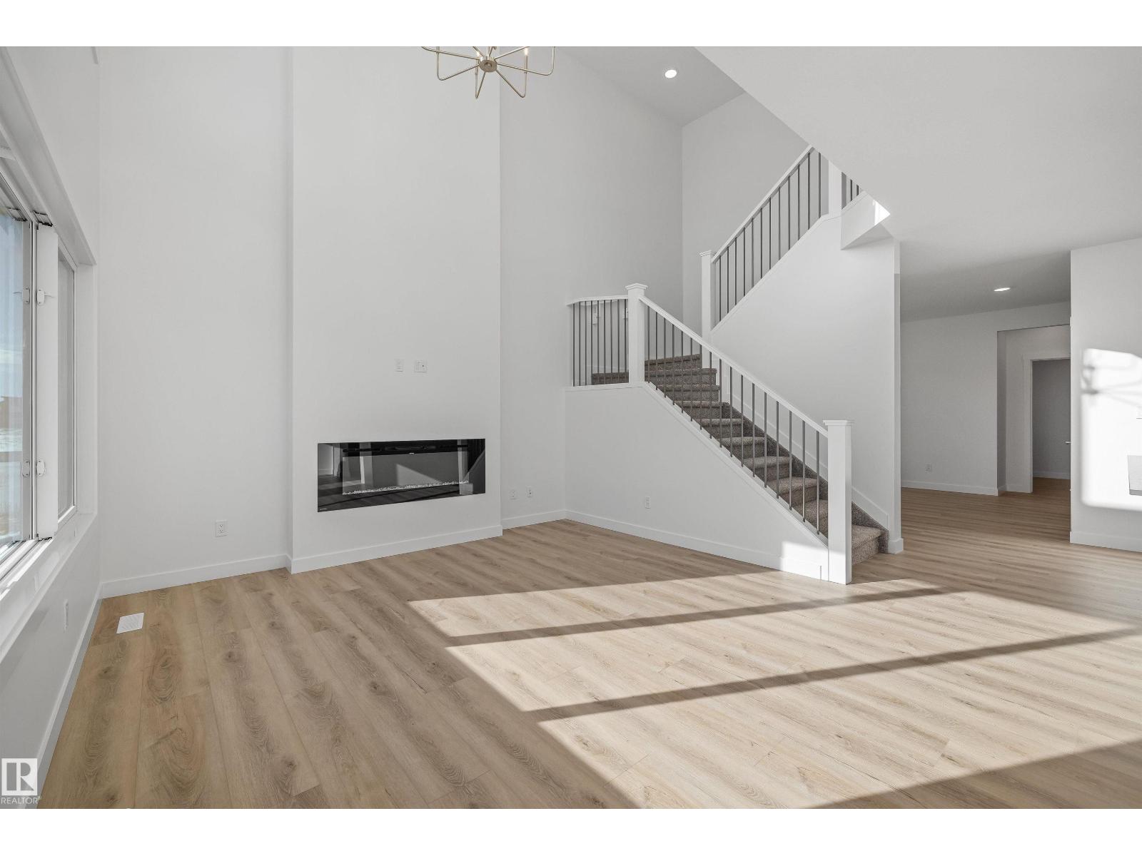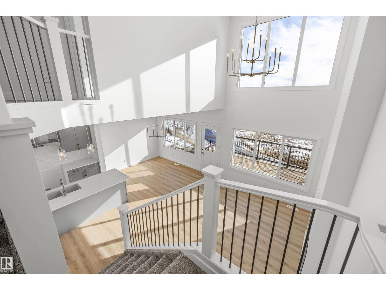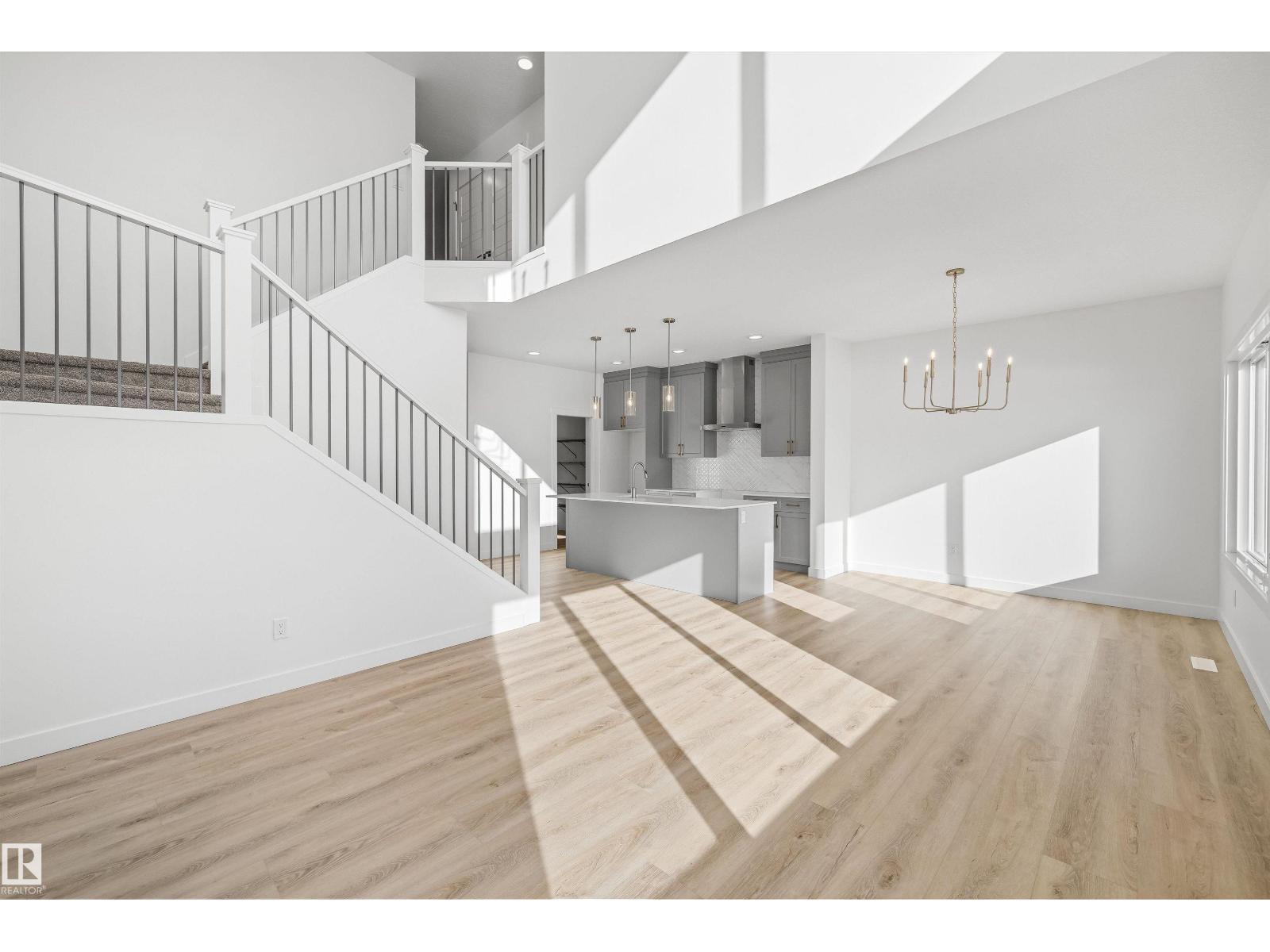 Built by Sterling Homes, this stunning front-attached home in The Uplands at Riverview brings a rare blend of elegance, space, and exceptional design. From the moment you step inside, soaring triple pane windows and 9’ ceilings set a bright, uplifting tone. A welcoming front sitting room leads to a main-floor bedroom and full bath—ideal for guests or flexible living. The kitchen is beautifully finished with quartz countertops, a large island, ceiling-height cabinetry with crown moulding, a chimney hood fan, built-in microwave, and a walk-through pantry connecting to the mudroom for effortless convenience. The great room is truly impressive with a 17-ft ceiling and an electric fireplace, creating a dramatic yet inviting gathering space overlooking the backyard. Upstairs, this home offers the rare luxury of two private bedroom suites—each with a walk-in shower, double sinks, and thoughtfully designed storage. A bright bonus room, full bath, upper-floor laundry, and an additional bedroom complete the level. (id:63190)