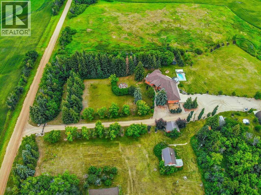 Stunning Acreage Retreat in Beaver County – Luxury Meets Country Living! A truly exceptional 11.5-acre property offering the perfect harmony of upscale comfort and peaceful rural living. Located just minutes from Viking, this custom-built home is ideal for those seeking space, privacy, and an elevated lifestyle surrounded by nature.As you enter through the private electronic gate, you’re greeted by a beautifully landscaped yard filled with mature trees, vibrant gardens, and a tranquil sense of seclusion. Thoughtfully designed for both relaxation and function, the property includes cross-fenced pasture, ideal for horses or other animals. A large heated quonset provides ample space for a workshop, storage, or hobby space, while a heated greenhouse with its own water supply extends the growing season well into Alberta’s cooler months. The outdoor living space is truly spectacular. An expansive composite deck features a natural gas hookup and a 16-foot electric retractable awning, making it the perfect setting for outdoor dining and entertaining. Gather with friends and family around the stunning stone-surrounded outdoor fireplace, or stroll through the irrigated vegetable and herb gardens, flowerbeds. Inside the home, you'll find over 2,450 square feet on the main level, plus a fully developed basement and a beautiful 250 sq ft four-season sunroom. The open-concept floor plan is ideal for modern family living, featuring a chef’s kitchen with stainless steel appliances that flows into a spacious dining area and cozy living room. With five bedrooms and three and a half bathrooms, there’s room for everyone. The generous primary suite includes a walk-in closet and a spa-like ensuite with a jetted tub. The basement is built for entertainment and comfort, with a home theatre complete with a 120” projector screen — perfect for movie nights or sports fans — as well as a cold room, storage area, and dedicated home office. Comfort and practicality continue throughout the hom e with forced-air heating on the main floor, in-floor heating in the basement, central air conditioning. The attached two-car heated garage with a central drain is complemented by an additional two-vehicle carport. One of the crown jewels of this home is the high-end, four-season sunroom — 225 square feet of in-floor-heated space with a wood-burning fireplace, offering a cozy, light-filled retreat year-round. Just steps outside, enjoy your very own inground, heated saltwater pool complete with an automated cover, retractable dome, and insulated lines — allowing for all-season enjoyment and minimal maintenance. Property also features a secondary residence, with a little TLC this could be a great space for a nanny or caregiver. This one-of-a-kind property offers a rare opportunity to live the acreage lifestyle without compromising on quality or convenience. Whether you’re raising a family, entertaining guests, or simply seeking serenity in nature, this home truly has it all. (id:63190)