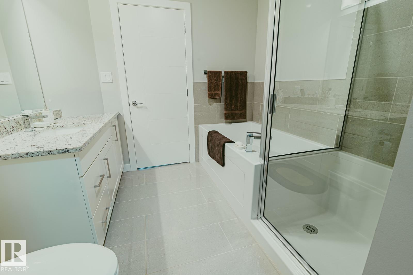 This gorgeous unit and building was developed and built by one of Edmonton's premier builders BRASS III Developments that has had an impeccable reputation over the decades of quality construction and high end finishing in all their projects. This spacious 1200 sq. ft. 2 bedroom features a large king size master bedroom with walk-in closet and a full 4pc Ensuite with separate 10mm glass stand up shower. The bright and open great room floorplan you will see solid 3/4 hand scraped hardwood and travertine style floors, 9' ceilings, shaker style kitchen cabinets with a waterfall edge peninsula kitchen boasting solid surface counter tops throughout the entire unit. Enjoy the Bright sunny exposure on the huge 18' X11' covered deck overlooking the Leger neighborhood. The Seller has even added Central Air Conditioning for complete comfort on the hot summer days. Every possible amenity and Terwillegar Rec center are just steps away. (id:63190)