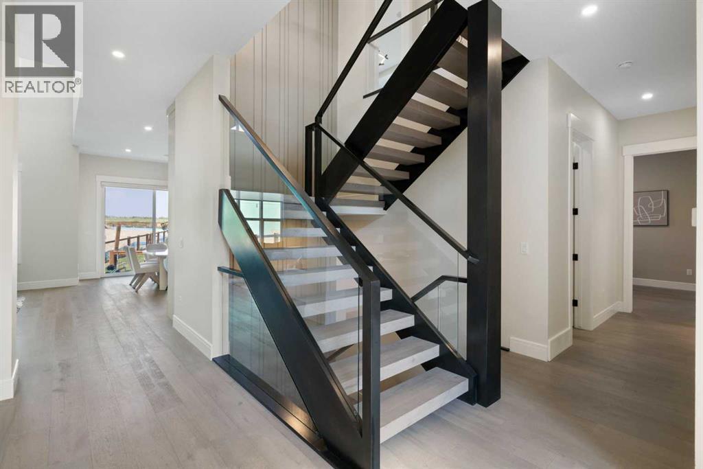 BRAND NEW LUXURY HOME BACKING ONTO THE LAKE!! HUGE 9500+ SQFT LOT!! QUAD ATTACHED GARAGE!! 10FT MAIN FLOOR CEILINGS!! 9FT UPPER LEVEL AND BASEMENT!! MAIN FLOOR BEDROOM WITH FULL BATH!! 4790 SQFT OF LIVING SPACE!! 7 BEDROOMS + 5 BATHS!! Experience LAKESIDE GRANDEUR in this stunning newly built home designed for modern living and timeless elegance! The main floor welcomes you with a bright LIVING AREA WITH OPEN-TO-BELOW CEILING, a cozy GAS FIREPLACE, and a DINING AREA WITH DECK ACCESS overlooking the lake. The GOURMET KITCHEN features a large island, BUILT-IN APPLIANCES, abundant cabinetry, a SPICE KITCHEN, and a spacious PANTRY—perfect for entertaining and family gatherings. Upstairs offers 4 BEDROOMS + BONUS ROOM, including a PRIMARY SUITE WITH LAKE-VIEW BALCONY, 5PC ENSUITE, and WALK-IN CLOSET. Another bedroom also features a PRIVATE ENSUITE AND WALK-IN CLOSET, while two additional bedrooms share a JACK & JILL 4PC BATH. The FULLY DEVELOPED BASEMENT adds even more living space with 2 BEDROOMS (BOTH WITH WALK-IN CLOSETS), a GYM AREA, and a SPACIOUS LIVING ROOM alongside a 4PC BATH. ATTACHED DOUBLE GARAGE is 42FT deep. Located in the heart of CHESTERMERE, steps from the LAKE, GOLF COURSE, and all nearby AMENITIES, this home perfectly combines LUXURY, FUNCTIONALITY, AND LOCATION—a true dream home on the water! (id:63190)