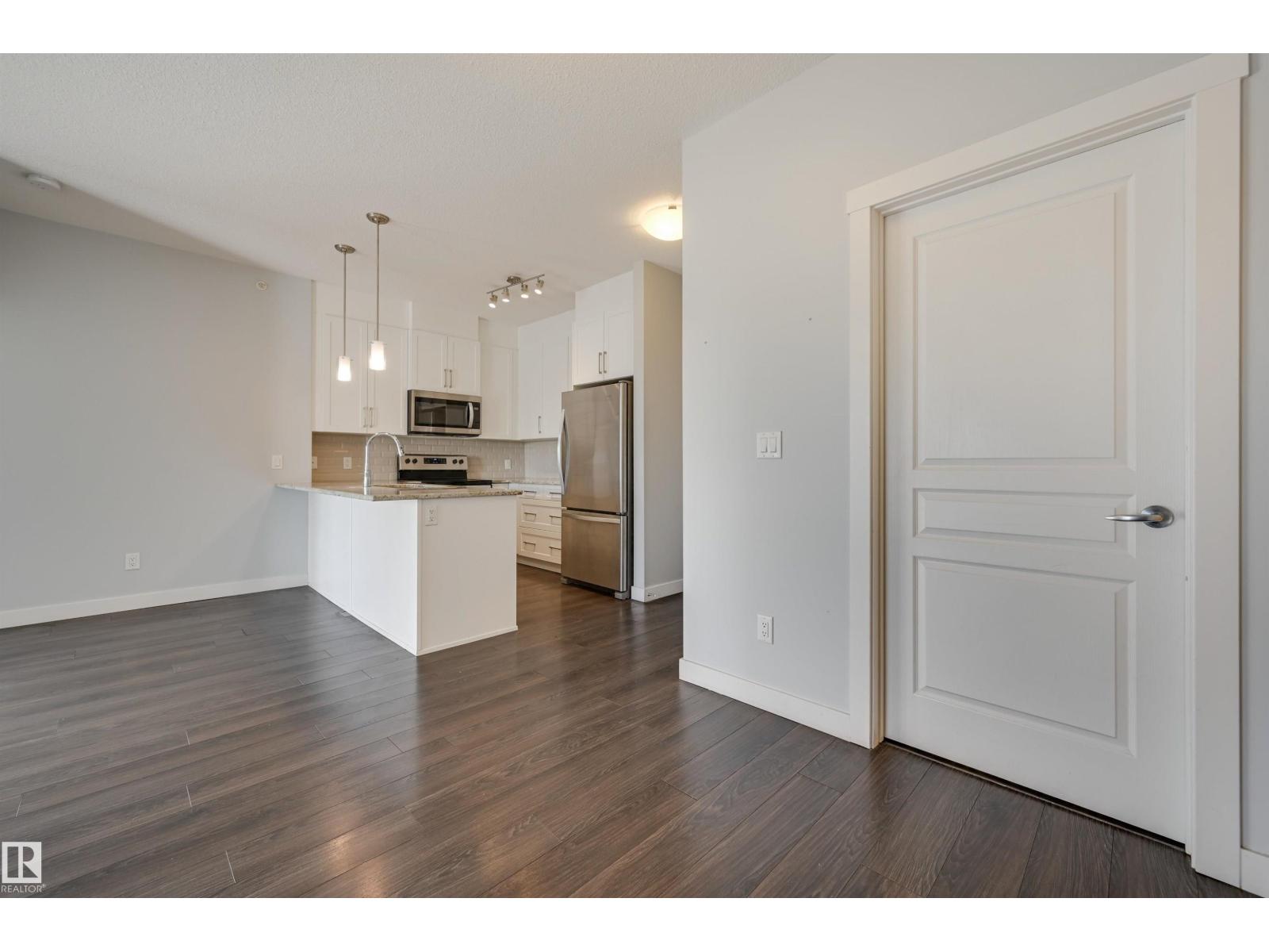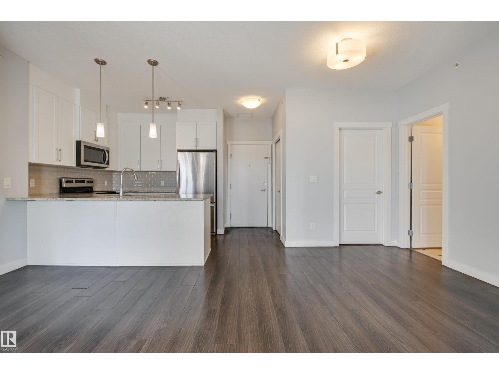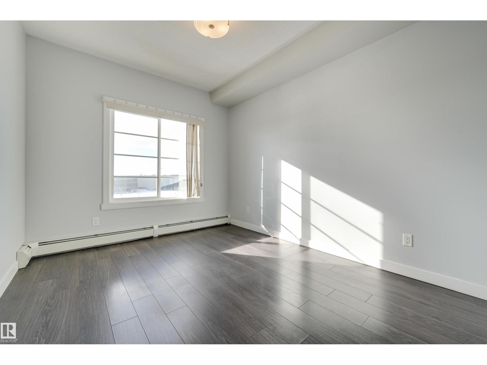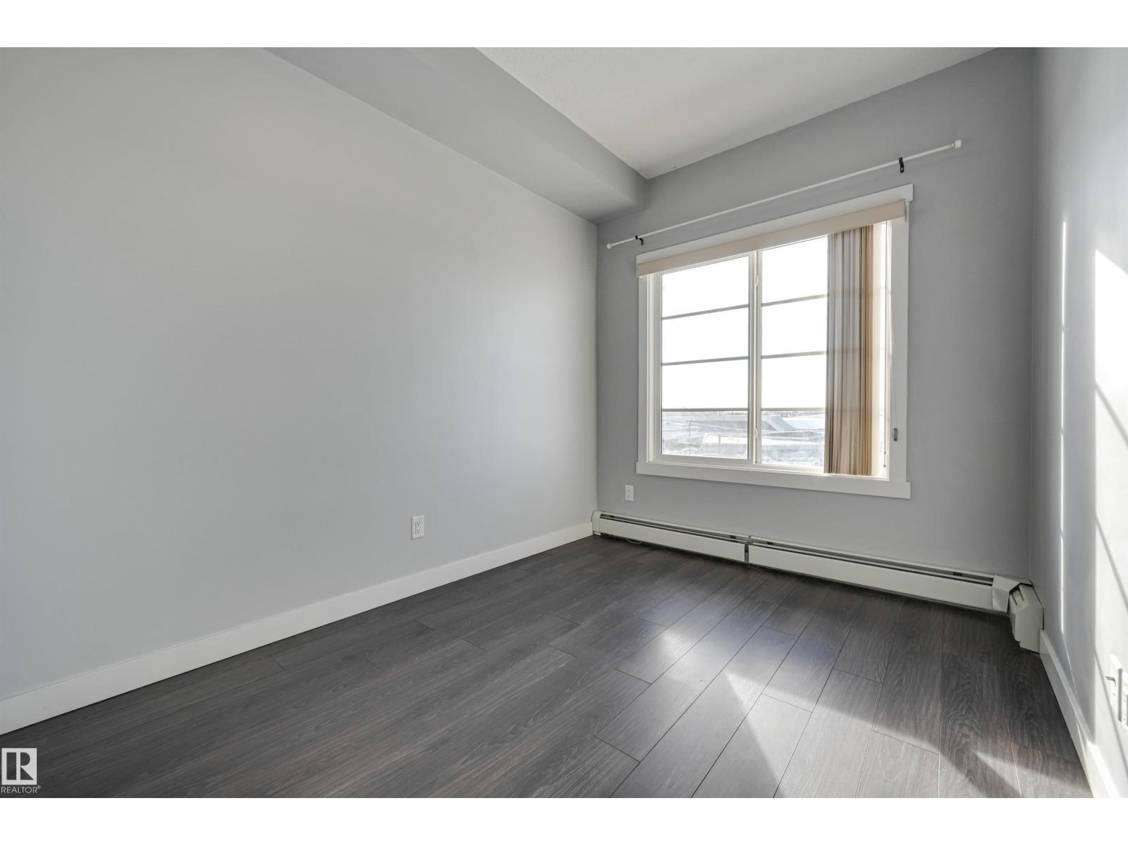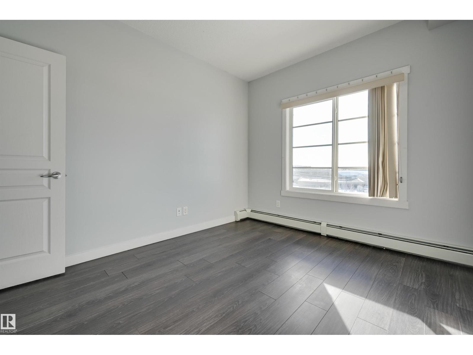 TOP FLOOR + TWO PARKING STALLS + PRIVATE SOUTHWEST VIEW! This modern 2 bedroom 2 bathroom condo has it all in a perfect location close to everything! Bright and open with good sized rooms and separation with bedrooms on either side of the suite. Granite counters throughout & extra high 9' ceilings. A great kitchen fully loaded with white cabinets, granite countertops, stainless steel appliances, tile backsplash, and a breakfast bar island. Dedicated dining space and a sun filled living room looking over the rec center grounds. The primary has dedicated ensuite and a walk through closet. Second bedroom with a full bathroom right out the door and a laundry room with lots of storage space complete the condo. Included are TWO titled parking stalls (one surface one underground). The very reasonable condo fee of $539.95/mth includes ALL UTILITIES heat/water/power! Unbelievable location right next to the Rec Center, Library, LRT Station, & every store you could ask for including Costco, WalMart, and Superstore! (id:63190)
