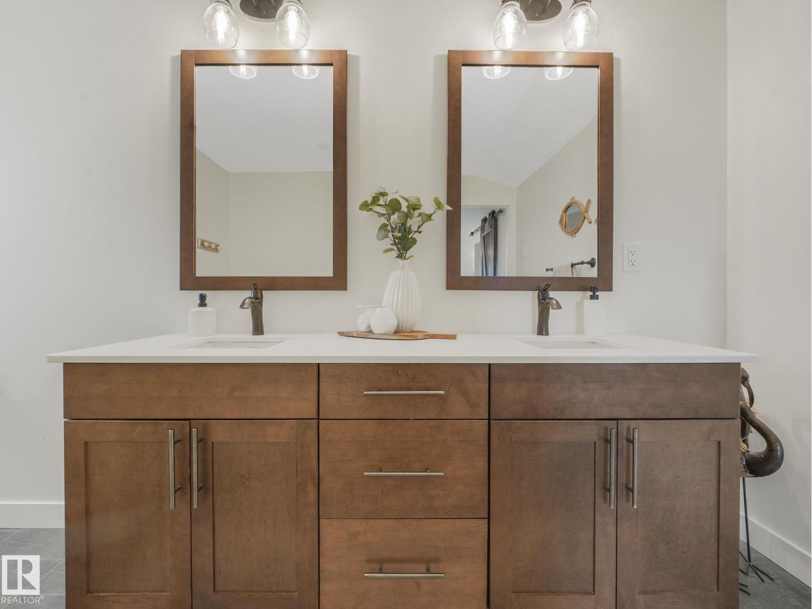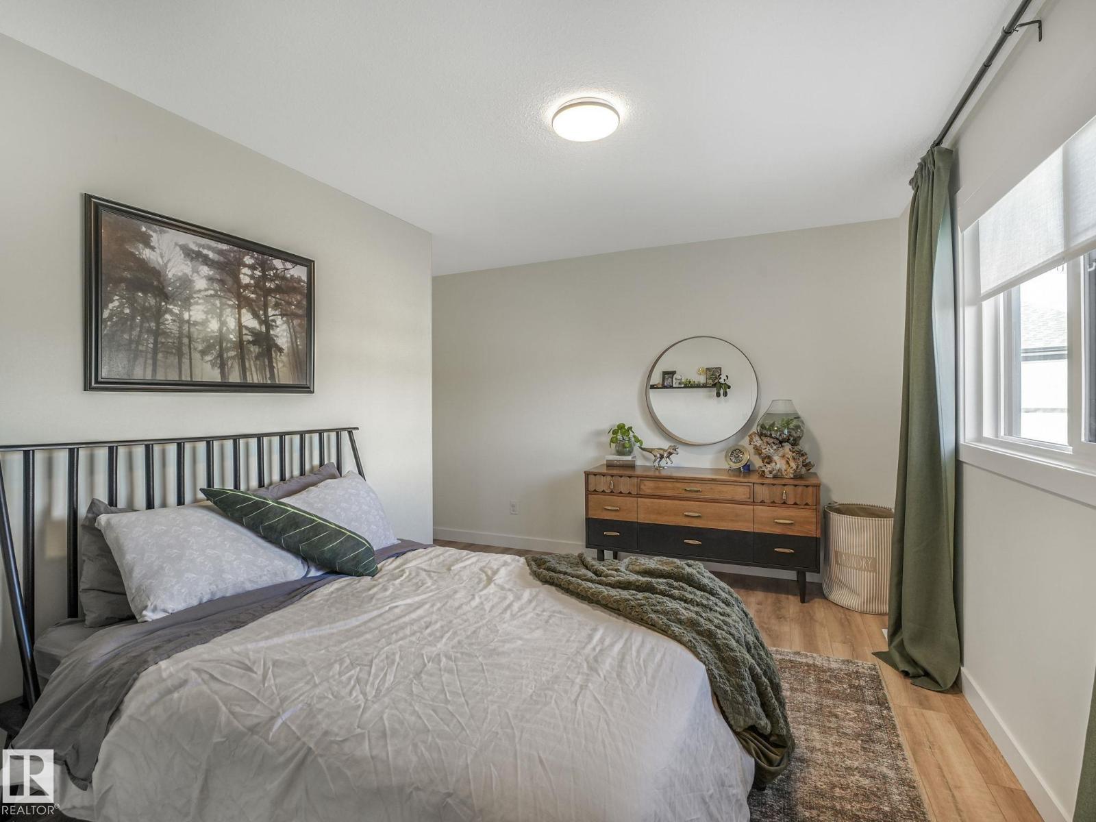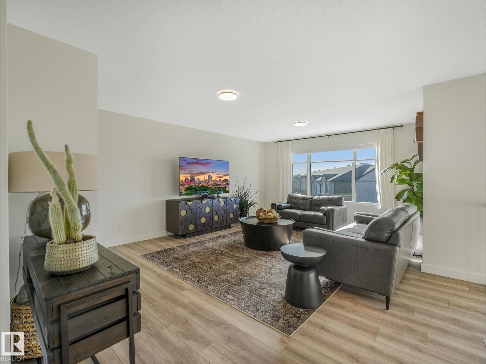 Welcome to Beaumont! This custom-built & fully finished home boasts almost 2800 sq ft over 3 upper levels on a massive 9,000 sq ft pie lot! This 5 bed, 3.5 bath beauty offers exceptional design & space. The primary suite occupies its own private third level, featuring a spa-inspired ensuite & walk-in closet and plenty of living space to make this area your own. The main level boasts an open-concept layout with premium appliances, luxury Alberta-made laminate flooring, air conditioning & a cozy gas fireplace with custom mantel. The fully finished basement adds even more living space for family or guests which includes the 5th bedroom, family room (close to 800 additional square feet). Outside, enjoy a $50,000 professionally landscaped yard with new deck, garden beds, flower boxes & over 2 dozen fruit trees—your own backyard retreat! The extended garage provides ample storage. Situated on a quiet street near parks, walking paths, schools & amenities—this is the one you’ve been waiting for. Welcome home! (id:63190)