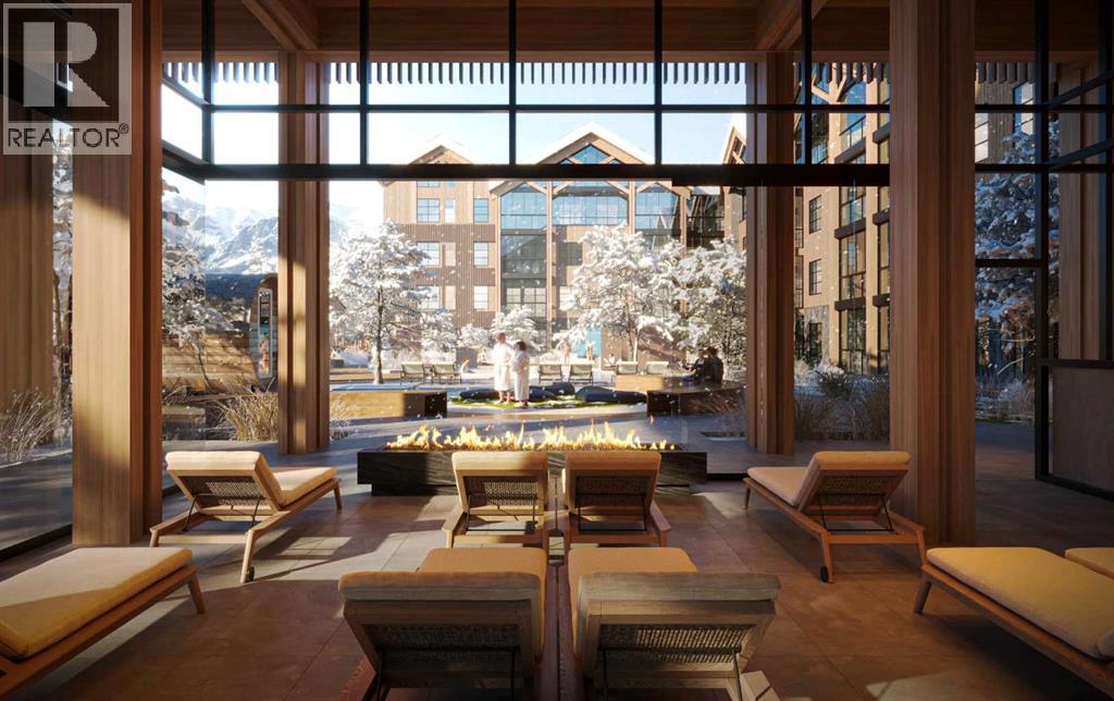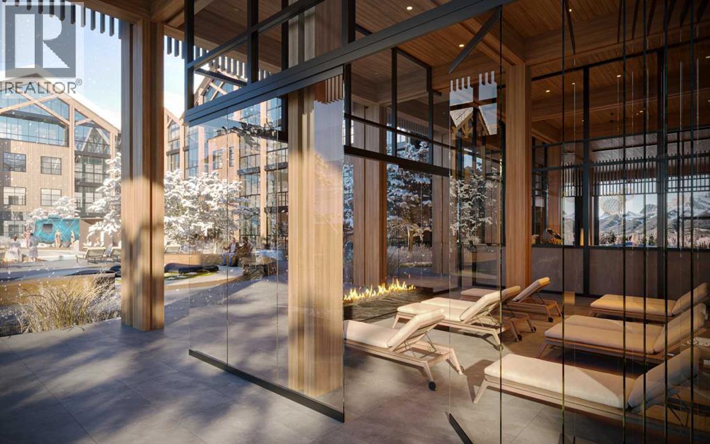 Experience refined mountain living in this modern 2bed/1bath at the exclusive Rundle Park, offering close to 700 sq ft of thoughtfully designed living space. This stunning unit features elevated contemporary finishes, a 3-piece bath, stainless steel appliances, a cozy fireplace, and an inviting indoor/outdoor solarium — perfect for soaking in the mountain air year-round. Rundle Park sets a new standard for alpine lifestyle with Nordic-inspired amenities designed for relaxation and rejuvenation. Enjoy a sophisticated hydrotherapy experience complete with an outdoor pool featuring two temperature zones, a sunken firepit lounge, and sauna pods, cabanas, and a warming room that create a true spa-like escape. Families will appreciate the outdoor playground and the Airstream trailer playroom, while fitness enthusiasts can stay active in the state-of-the-art fitness studio framed by a stunning mountain backdrop. Don't miss the opportunity to make this retreat your own! (id:63190)