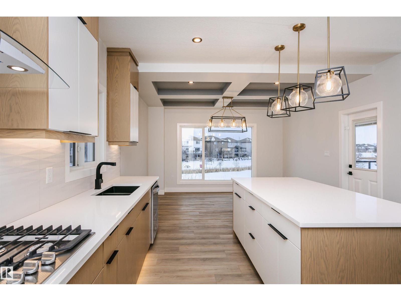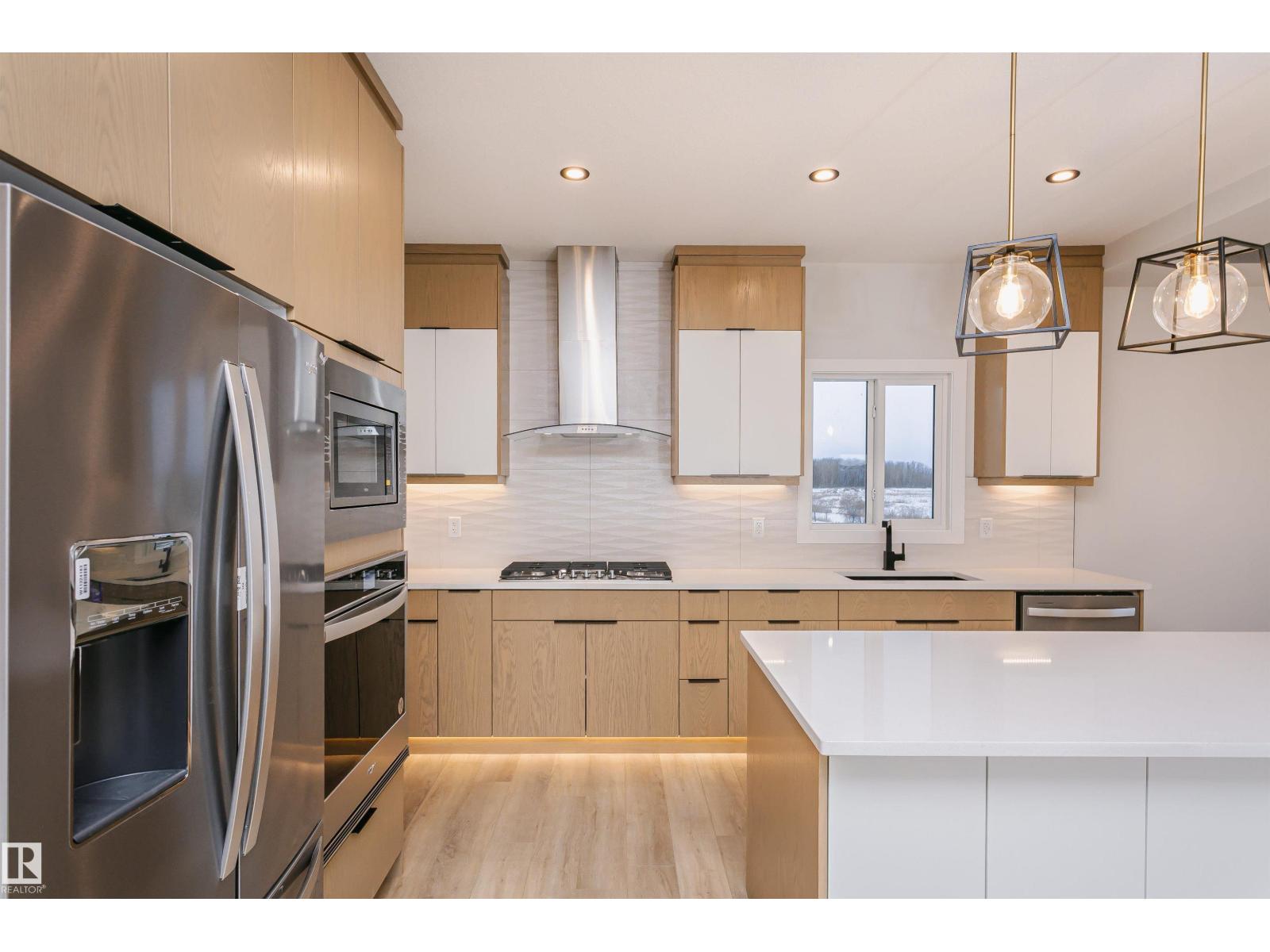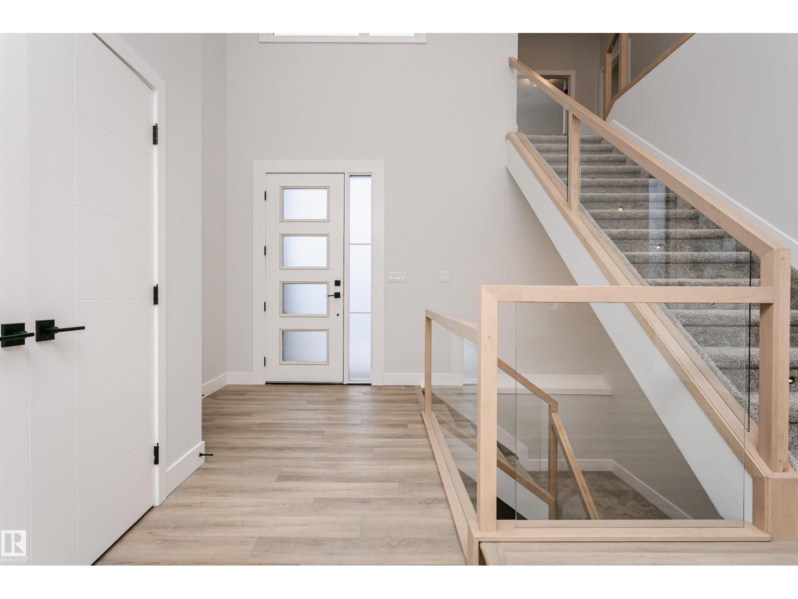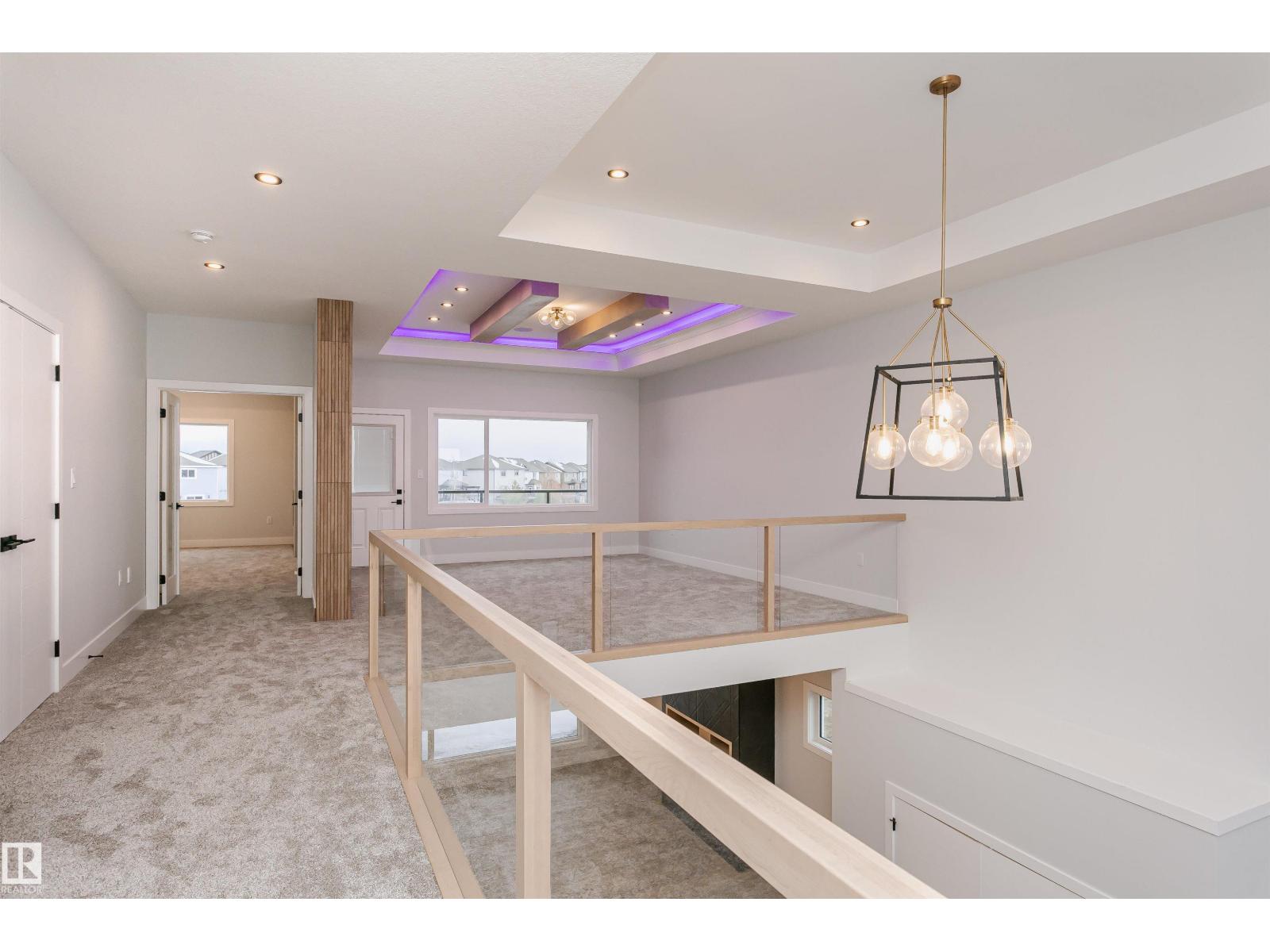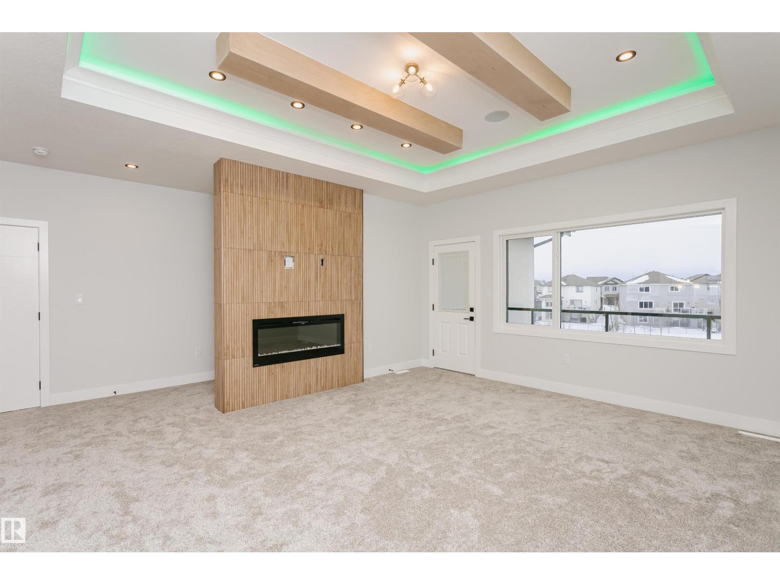 Set in Southfork, Leduc’s most sought-after master-planned community, this exceptional walkout estate backing onto a tranquil pond delivers approx. 2,800 sq. ft. of thoughtfully designed luxury living. Grand 18’ ceilings and an architectural maple staircase with glass inserts and LED step lighting create a striking first impression. The home showcases designer gas and electric fireplaces, coffered ceilings with statement lighting, and a chef’s kitchen & a spice Kitchen featuring custom premium oak cabinetry and stainless steel appliances. Expansive windows frame serene water views from the breakfast nook and main living area. The upper level offers three spacious bedrooms and an elegant bonus room, while the primary retreat impresses with a private pond-view balcony, spa-inspired ensuite, and walk-in closet with custom organizers. Enhanced with LED lighting throughout and EV charging rough-in, this residence blends modern luxury with everyday comfort in an unbeatable setting. (id:63190)