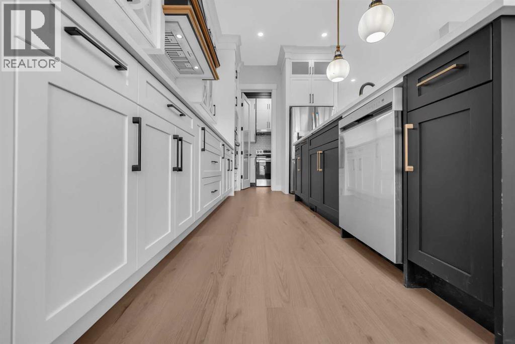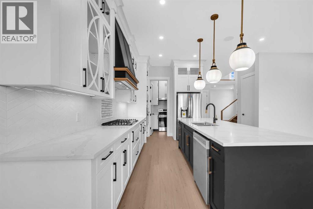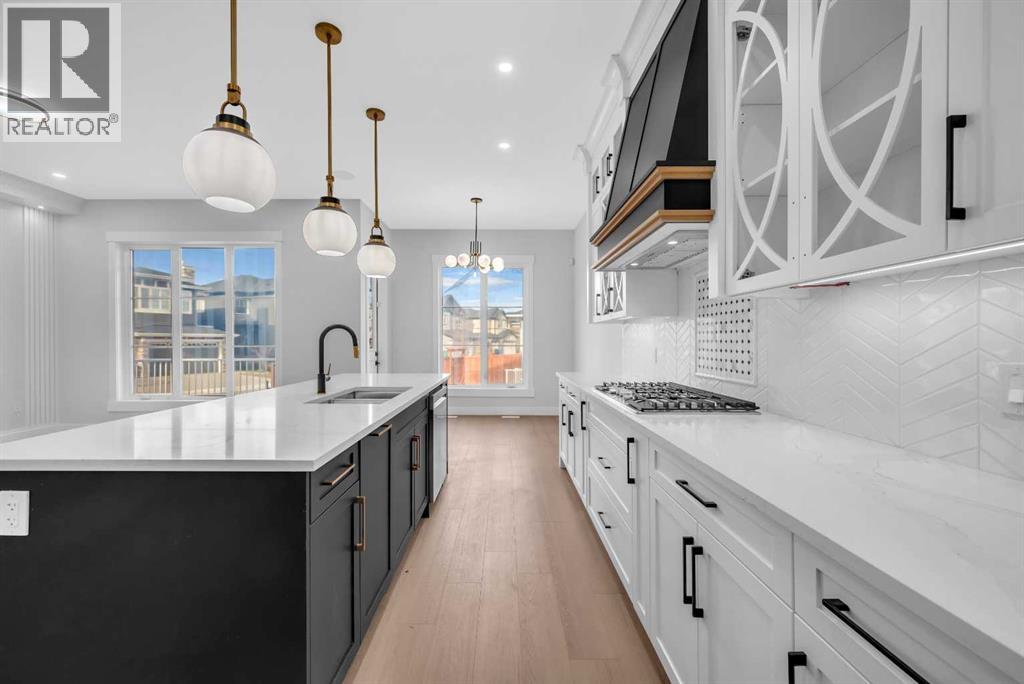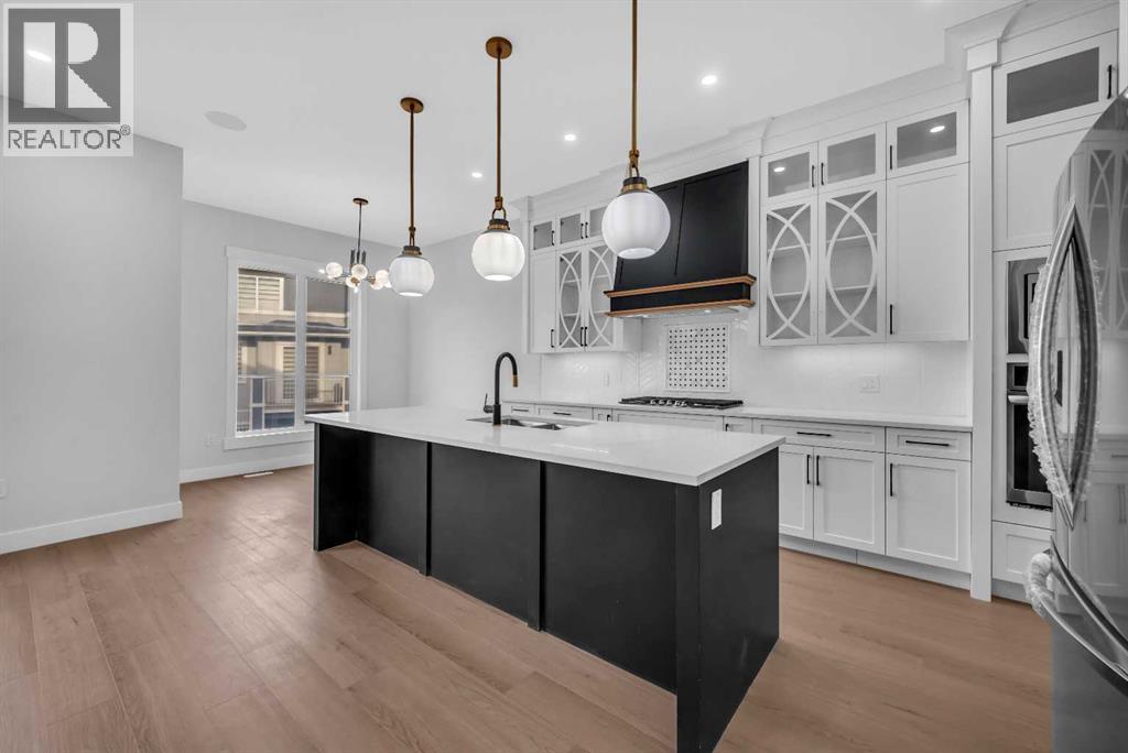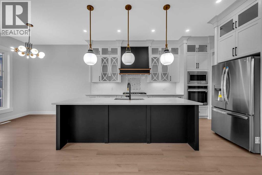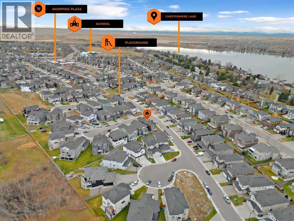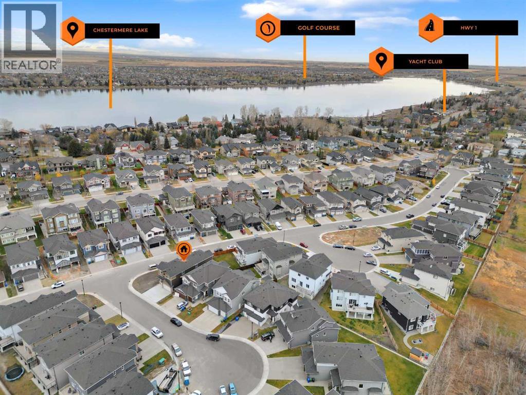 CORNER LOT ! Welcome to 203 Kinniburgh Place, in the highly sought-after Lake community of Chestermere. This Executive quality home boasts 3 fully finished levels complete with upgrades throughout.! Large open concept. OPEN TO BELOW living room on the main floor. 10 ‘ ceiling all over Main floor and 8’ doors. Main floor boasts a FULL BATH and BEDROOM for ELDERLY PARENTS. It also includes an impressive Chef Kitchen, featuring quartz's countertops, impressive upgraded light fixtures, a large double fridge, gas range, double wall ovens, full-height modern white cabinets, and an impressive spice kitchen with pantry. Open to the kitchen is a large dining area and modern living area complete with a feature wall of built-ins, surrounding a beautiful gas fireplace. Completing this main floor is a gorgeous SECOND LIVING ROOM space off the main entrance, a large mudroom off the garage, and a gorgeous 3 piece bathroom! Enjoy the abundance of natural light with large windows throughout the home . Head upstairs WITH BEAUTIFUL GLASS RAILING, where you will find a large sun-drenched bonus room. Your large master bedroom features a spa-like en suite and a large walk-in closet! Apart from the master, you will find a second master with 4 pc ensuite and 2 walk-in closets, 2 other bedrooms, 1 full bathroom, and a well-placed laundry room. Escape to the fully finished basement, This gorgeous space comes complete with a BAR FEATURE , HUGE LIVING ,DINNING AREA another beautiful 4 piece bathroom, and 2 additional bedrooms! Extend your summers in the fabulous backyard . Total 7 bedrooms and 5 full bathrooms. Chestermere is a vibrant family community with a multitude of parks, pathways, playgrounds, and of course beautiful Chestermere Lake, providing access to beaches, water sports, and boating in the summer months or skating in the winter months! Don't miss out on this amazing opportunity. THERE WAS NO DETAIL MISSED WHEN THIS HOUSE WAS BUILT ,COME CHECK OUT THIS BEAUTIFUL PROPERTY TO CALL YOUR NEXT HOME. (id:63190)