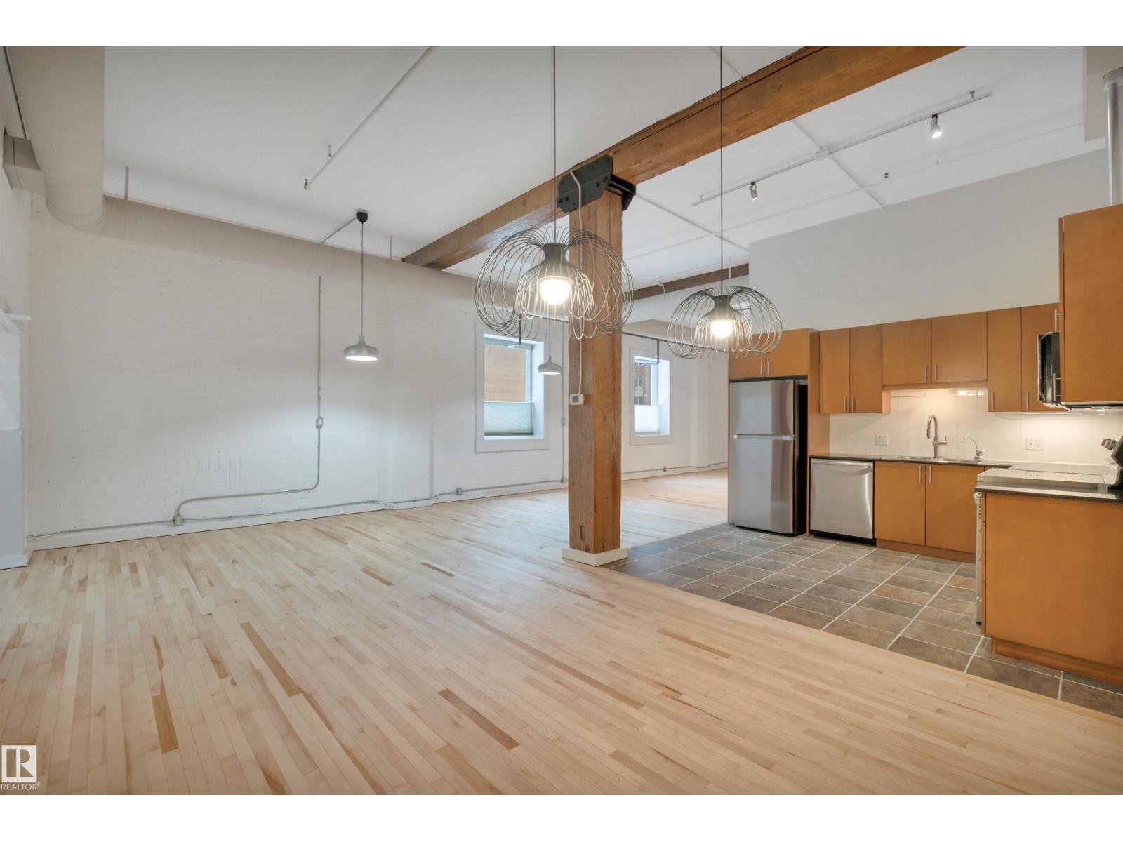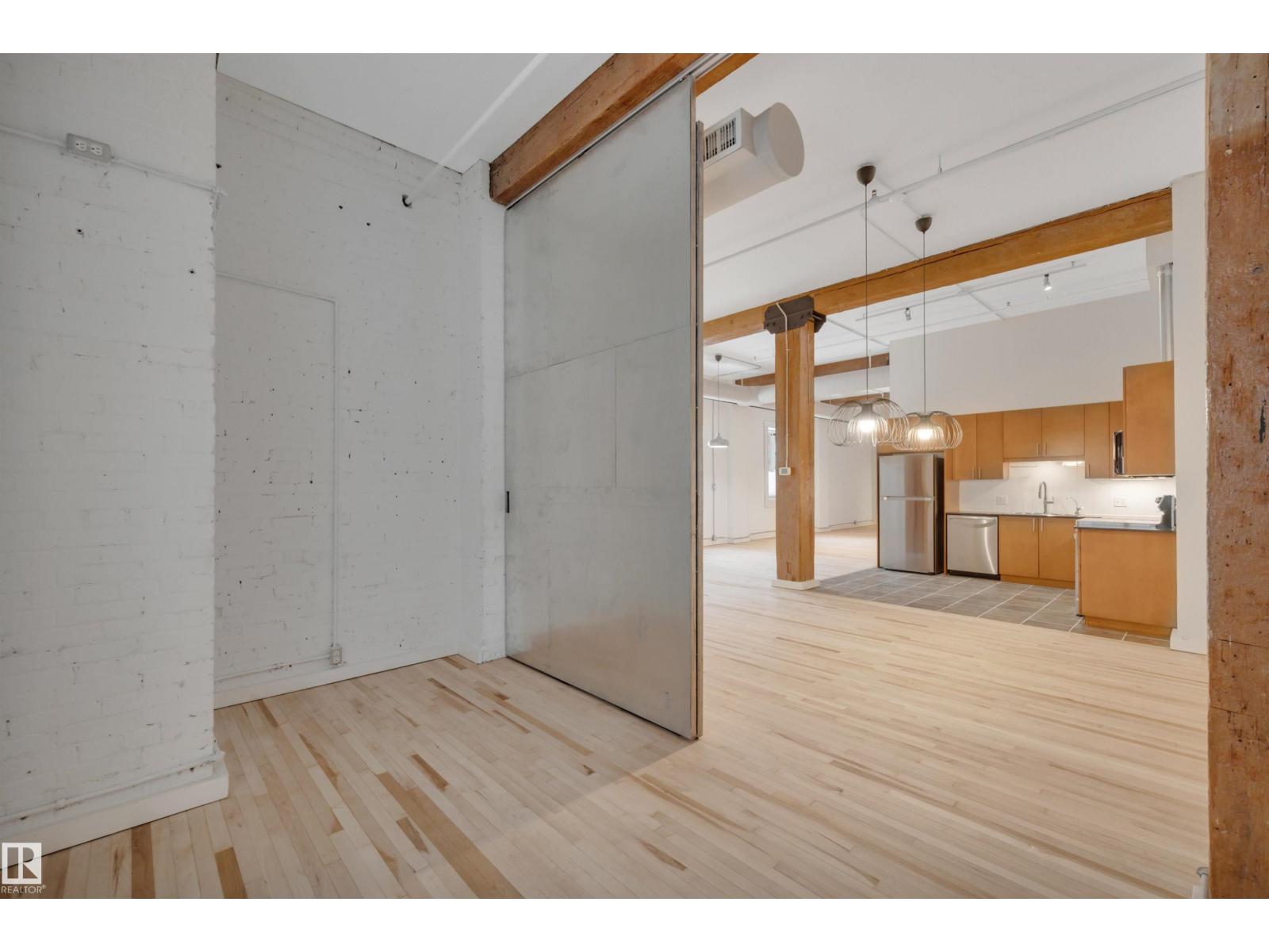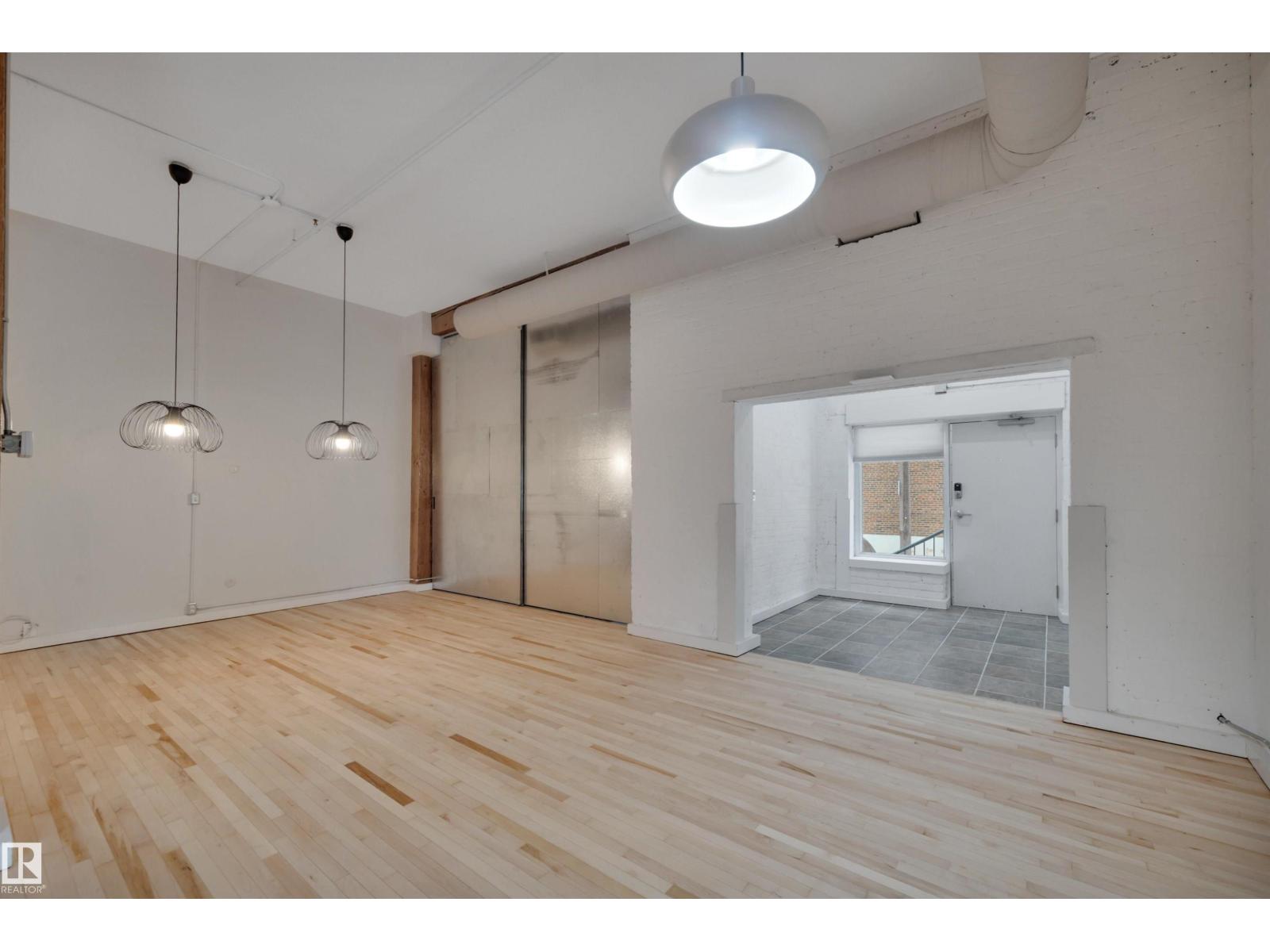 Stunning 1471 sqft Historic Loft in Downtown Edmonton. This beautifully renovated main-floor loft blends historic charm with modern upgrades. Featuring expansive ceiling heights and updated flooring throughout, the space is bathed in natural light, creating an airy and inviting atmosphere. The kitchen boasts brand-new appliances, and fresh paint enhances the loft’s clean, contemporary feel. This unit offers both privacy and convenience plus 2 baths with one having a steam shower! Located in the heart of downtown Edmonton, you’re just steps away from shopping, dining, and cultural attractions, making this a prime location for city living. Don’t miss the opportunity to own a piece of history in one of Edmonton’s most vibrant neighbourhoods. THIS COULD BE THE PERFECT HOME BASED BUSINESS OPPORTUNITY TOO... WITH YOUR VERY OWN PRIVATE BACK DOOR THERE IS NO NEED TO COME THROUGH THE FRONT EVERY TIME. There is even a roof top patio that offers a super cool vibe. (id:63190)