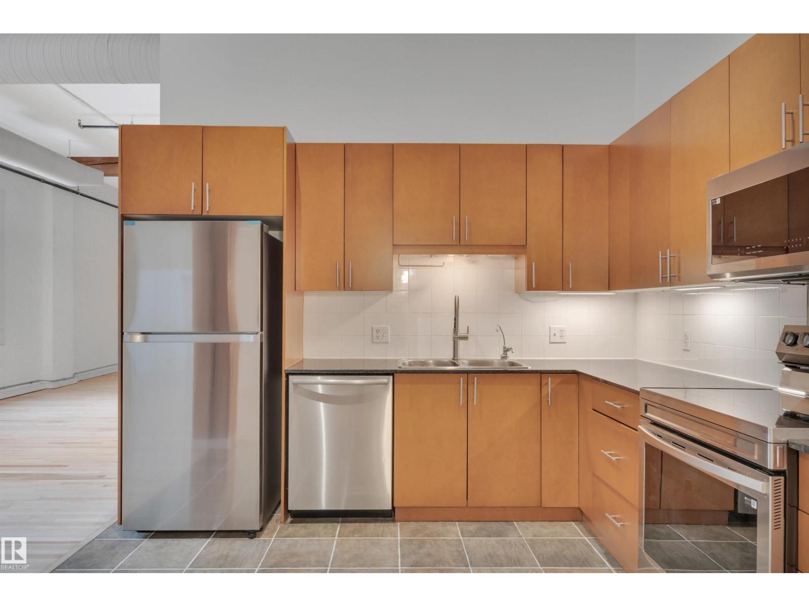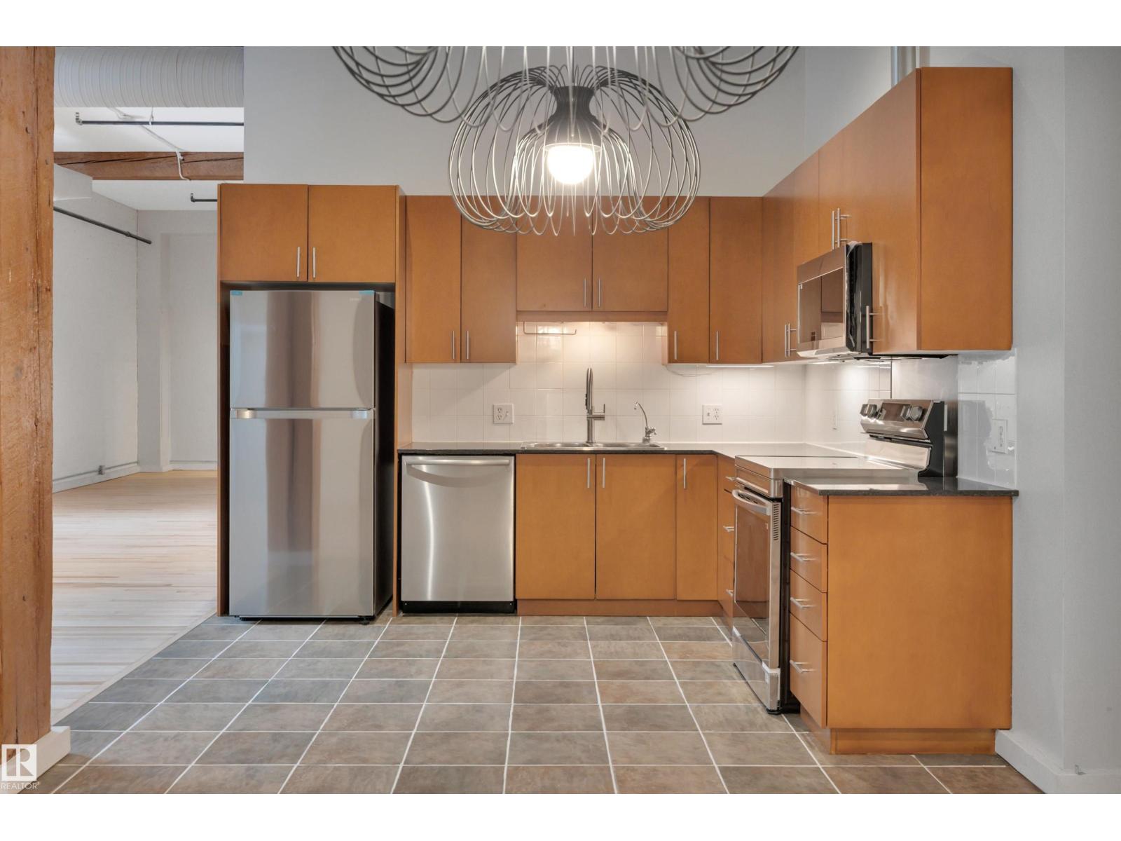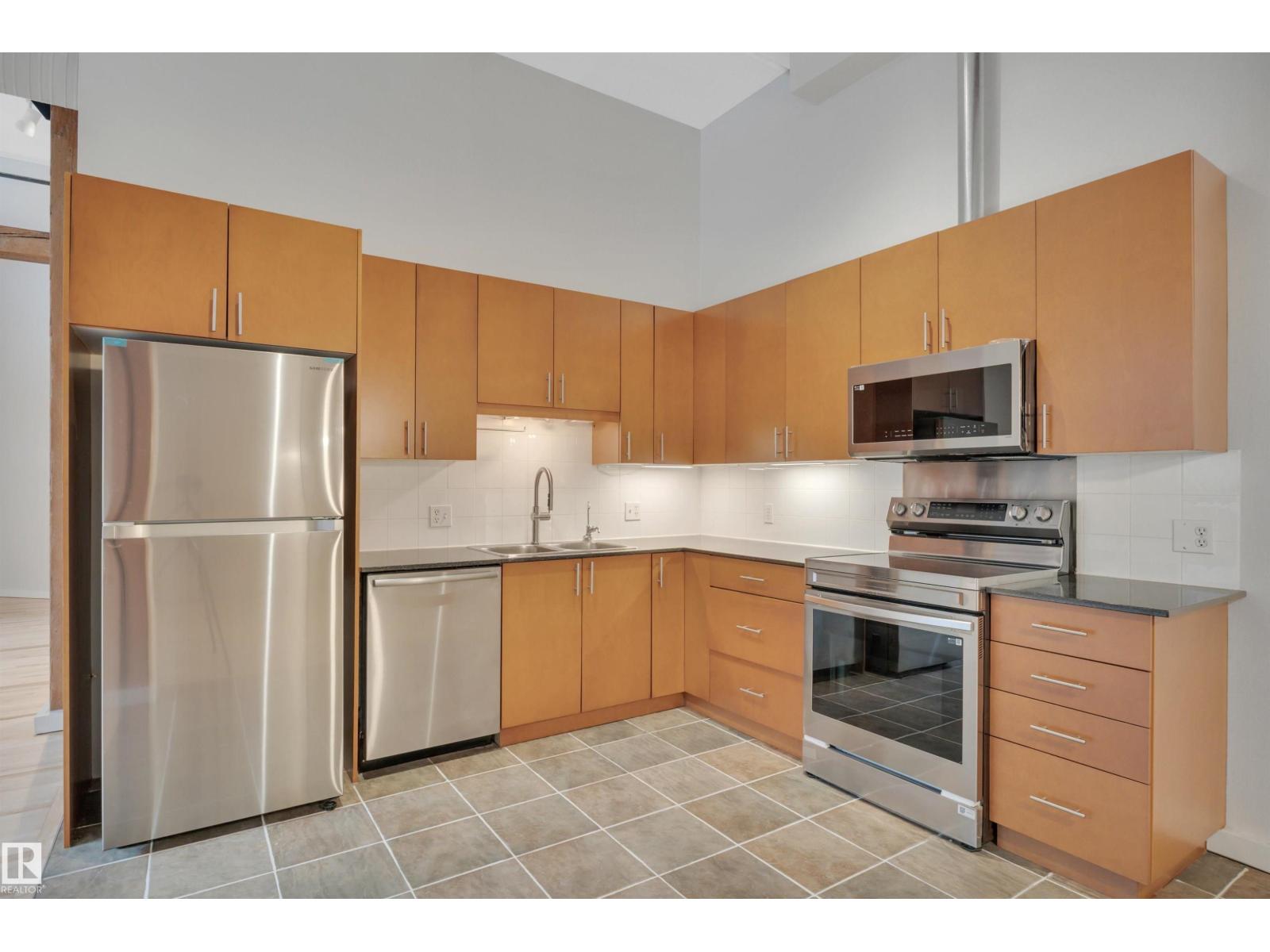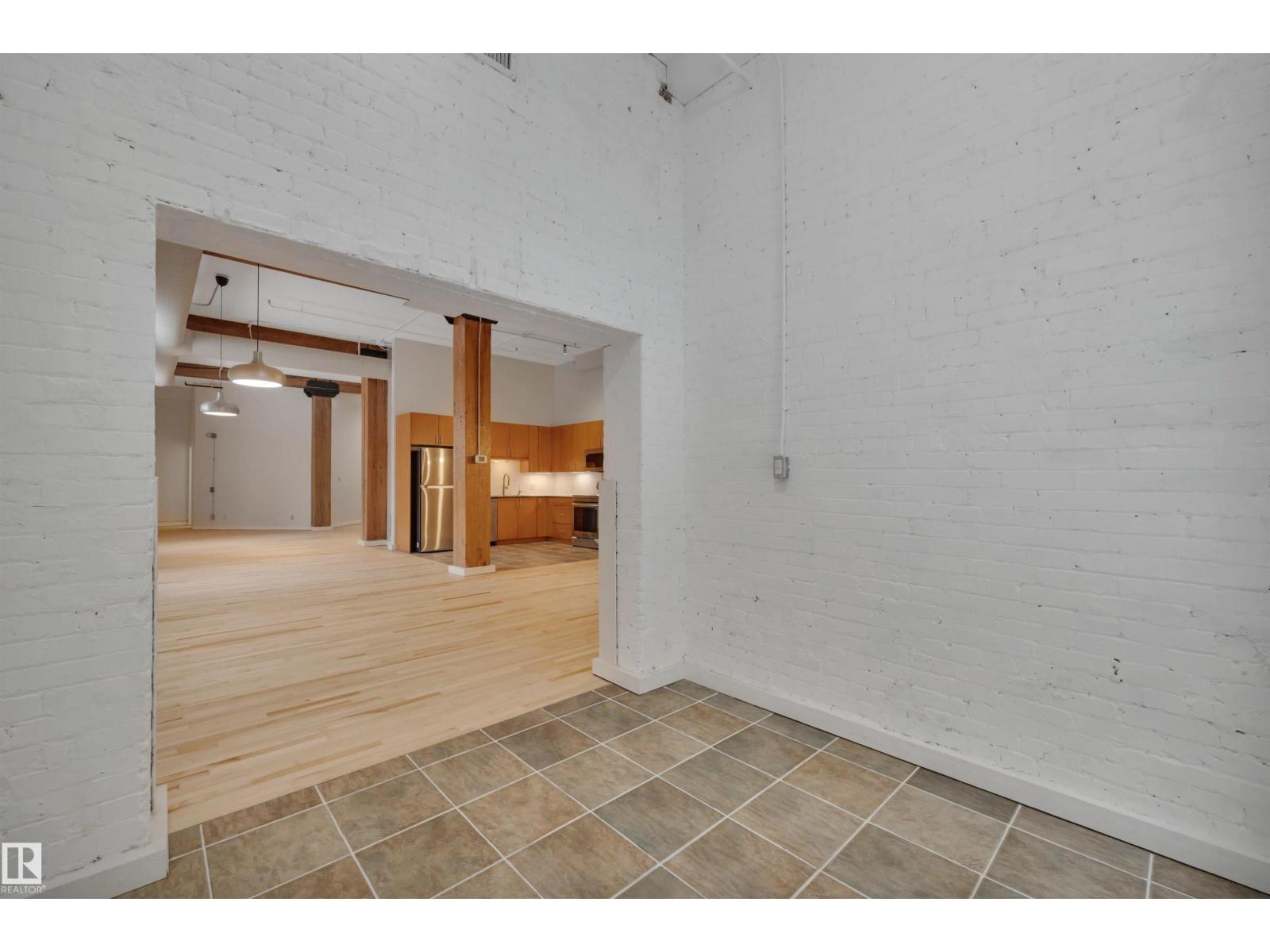 Stunning 1471 sqft Historic Loft in Downtown Edmonton. This beautifully renovated main-floor loft blends historic charm with modern upgrades. Featuring expansive ceiling heights and updated flooring throughout, the space is bathed in natural light, creating an airy and inviting atmosphere. The kitchen boasts brand-new appliances, and fresh paint enhances the loft’s clean, contemporary feel. This unit offers both privacy and convenience plus 2 baths with one having a steam shower! Located in the heart of downtown Edmonton, you’re just steps away from shopping, dining, and cultural attractions, making this a prime location for city living. Don’t miss the opportunity to own a piece of history in one of Edmonton’s most vibrant neighbourhoods. THIS COULD BE THE PERFECT HOME BASED BUSINESS OPPORTUNITY TOO... WITH YOUR VERY OWN PRIVATE BACK DOOR THERE IS NO NEED TO COME THROUGH THE FRONT EVERY TIME. There is even a roof top patio that offers a super cool vibe. (id:63190)