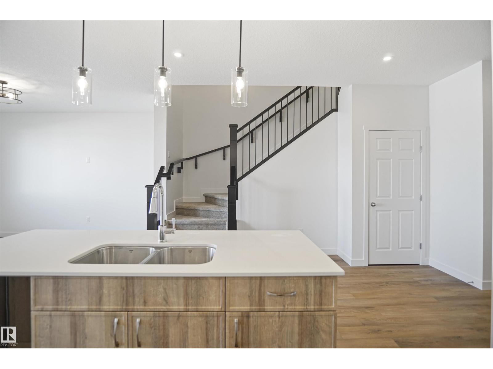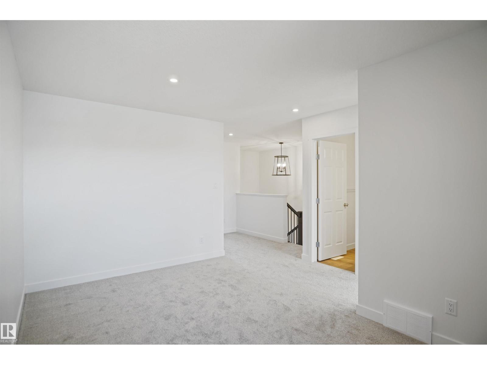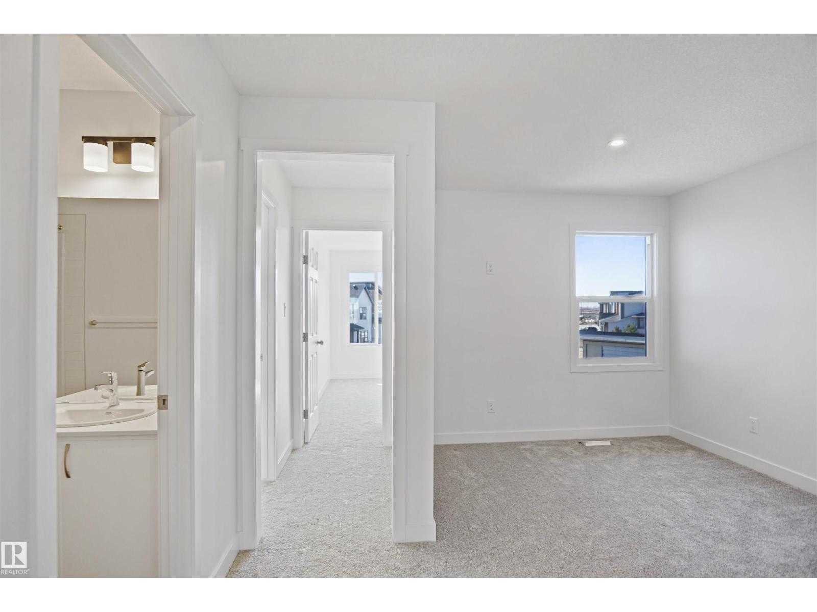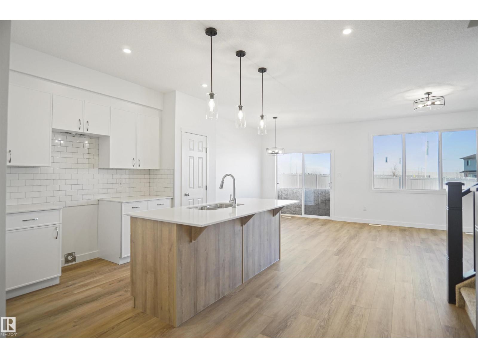 Welcome to the Kaylan built by the award-winning builder Pacesetter homes and is located in the heart of the Uplands at Riverview and just steps to the neighborhood parks and walking trails, this home sits on a over sized lot. As you enter the home you are greeted by luxury vinyl plank flooring throughout the great room, kitchen, and the breakfast nook. Your large kitchen features tile back splash, an island a flush eating bar, quartz counter tops and an undermount sink. Just off of the kitchen and tucked away by the front entry is a den and a 3 piece bathroom. Upstairs is the master's retreat with a large walk in closet and a 4-piece en-suite. The second level also include 2 additional bedrooms with a conveniently placed main 4-piece bathroom and a good sized bonus room. Close to all amenities and easy access to the Henday. *** Home is under construction and the photos used are from a previously built home same model colors may vary , to be complete by March 2026*** (id:63190)