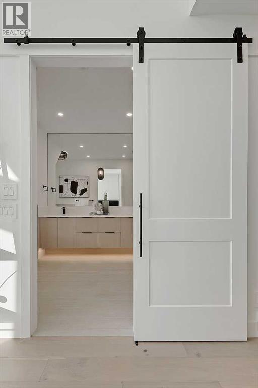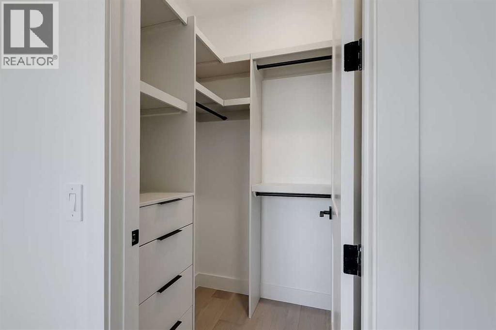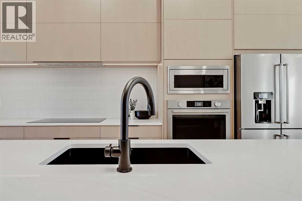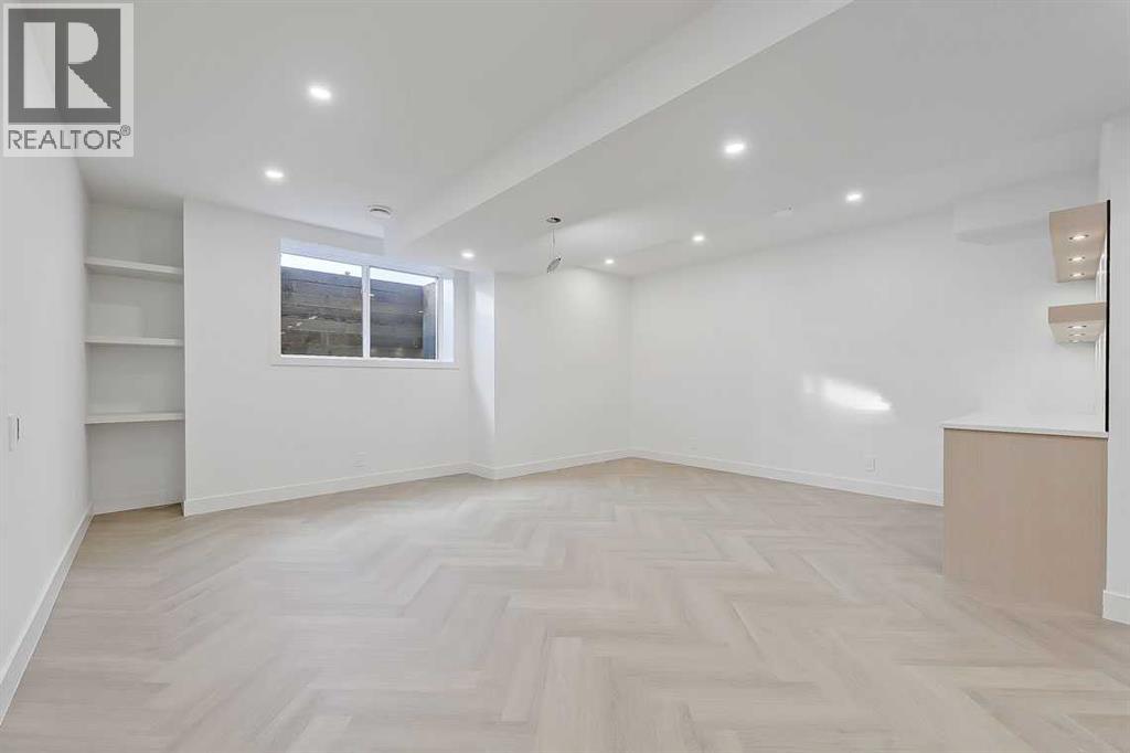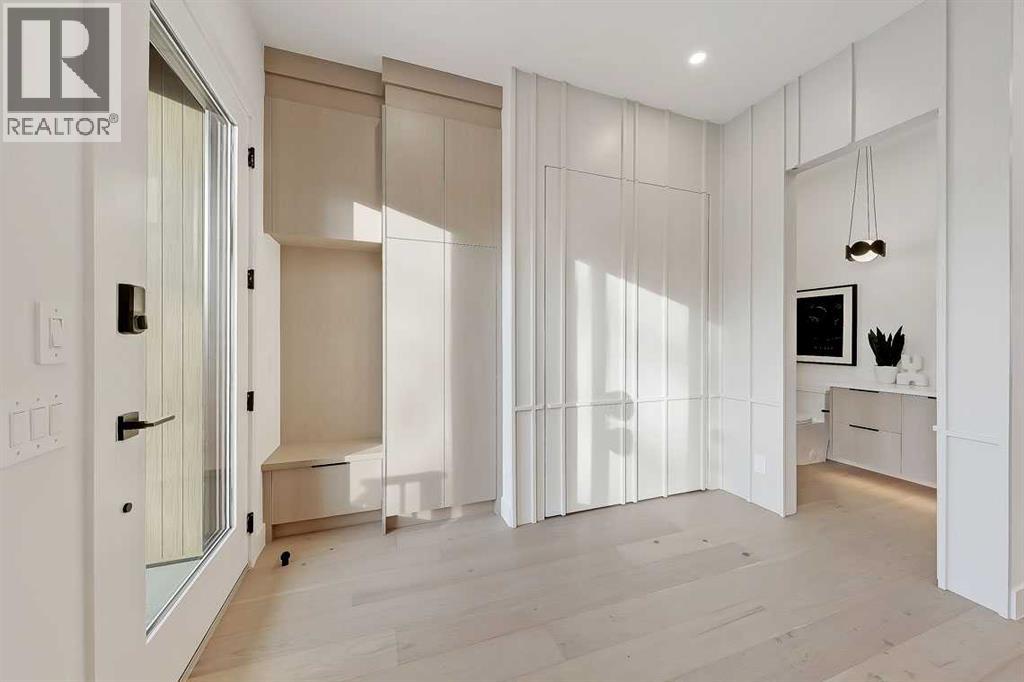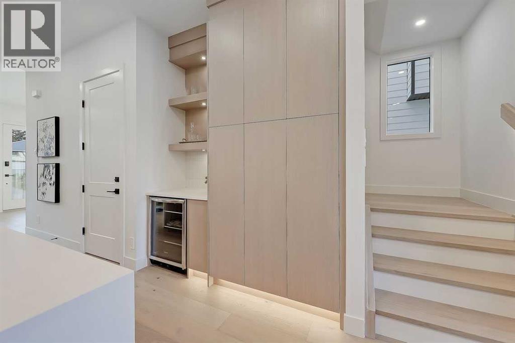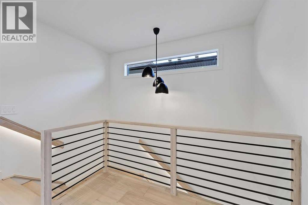 This architecturally striking semi-detached infill in Killarney is a refined expression of modern Scandinavian design, thoughtfully layered with mid-century modern elements. Clean lines, warm wood tones, minimalist detailing, and intentional functionality come together in a home that feels both sophisticated and welcoming. With three fully finished levels and an RARE EXTENDED BASEMENT featuring a legal 2-bedroom suite, this residence offers elevated design, smart versatility, and exceptional income potential in one of Calgary’s most desirable inner-city communities.Step inside to a bright, airy foyer where clean millwork and a built-in bench create an organized and understated welcome. A discreet, hidden door conceals the powder room, maintaining the seamless, minimalist aesthetic that defines the main floor. The open-concept layout is enhanced by 10-foot ceilings, oversized windows, and warm natural finishes that reflect Scandinavian simplicity while mid-century inspired lighting and architectural detailing add depth and character.The living room is anchored by a sleek fireplace and flows effortlessly into the kitchen — a space designed as beautifully as it performs. Quartz countertops, full-height custom cabinetry, a built-in pantry & coffee station, and stainless steel appliances offer both style and functionality. The oversized island invites gathering & connection.The dining area is a standout architectural feature, complete with a built-in decorative buffet showcasing full-length shelving with integrated lighting & elegant fluted glass cabinetry. This thoughtfully designed focal point adds warmth, texture, and curated display space while enhancing the home’s cohesive Scandinavian aesthetic. Expansive sliding doors open from the dining space, seamlessly extending the living area onto the rear deck and backyard — creating effortless indoor-outdoor flow ideal for entertaining and everyday living.At the back of the home, a mudroom with sleek built-in stora ge & bench seating adds everyday convenience without compromising the streamlined design.Upstairs, the primary retreat offers a vaulted ceiling, private WEST facing balcony, and a spa-inspired ensuite with dual vanities, a soaker tub, and glass-enclosed tiled shower with body jets. Two additional bedrooms, a full bath, and upper laundry complete the level.The extended basement is fully developed into a self-contained legal 2-bedroom suite featuring HERRINGBONE floors, a full kitchen with quartz counters, island with seating, separate laundry, a 4-piece bath, and an oversized living & dining area that create a space that feels open, comfortable, and far above typical lower-level living.Walking distance to Shaganappi LRT, local amenities, schools, parks, and the Killarney Aquatic Centre — with quick access to downtown & major routes — this home offers the perfect balance of timeless design and everyday functionality. Experience elevated inner-city living in Killarney — book your private showing today. (id:63190)