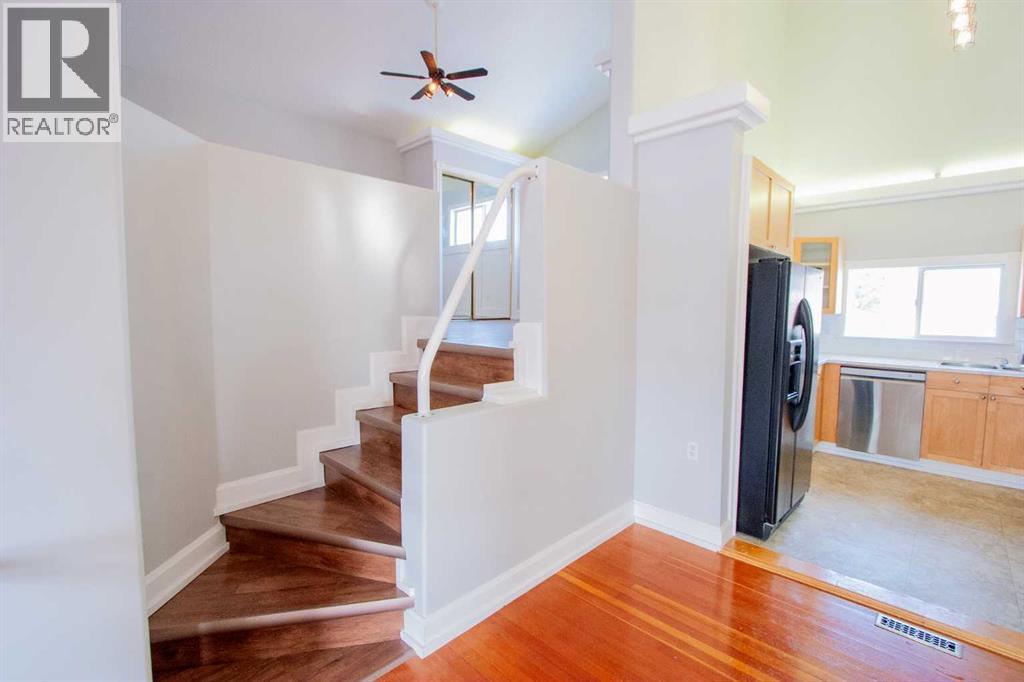 Welcome to this fully renovated and architecturally unique split-level home offering 1,898 sq ft of developed living space on a 6,000 sq ft lot in the welcoming community of Crossfield.This home features a rare and dramatic open-concept design that creates a bright, airy atmosphere from the moment you enter. The main level flows seamlessly upward into the open upper level, creating impressive vertical space and natural light throughout the home.Offering 3 bedrooms and 3 full bathrooms, plus half bath, this home provides flexibility for families of all sizes. The upper level hosts the distinctive primary retreat with ensuite bath, designed within the home’s open architectural layout. A second bedroom or office is conveniently located near the kitchen on the main level.The lower level — part of the main home — offers additional living space, a 2p bathroom/laundry room, walk-out access to the backyard deck, and direct entry into the attached garage, providing excellent functionality and flow.The basement level features its own separate side entrance and additional developed living space, offering flexibility for extended family.Extensive renovations have been completed throughout, including new flooring, fresh paint, updated fixtures, brand new bathroom finishes, new hot water tanks, and numerous additional improvements. The kitchen is bright and functional with newer appliances.Outdoor relaxation is exceptional with four separate exterior spaces: a welcoming front porch, rear deck off the kitchen, a large upper deck over the garage, and a lower walk-out deck to the backyard. Rear alley access provides a two-car wide opening to the back parking pad.Located close to schools, parks, shopping, and essential services, this home offers small-town charm with convenient access to Airdrie and Calgary.A truly unique property combining architectural character, thoughtful updates, and versatile living space. (id:63190)
