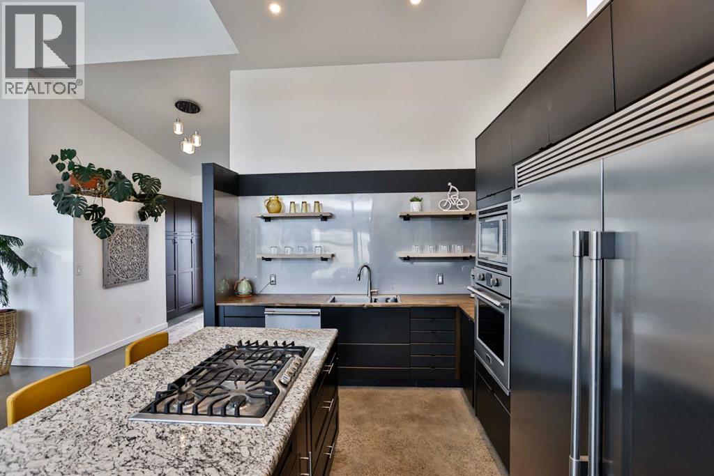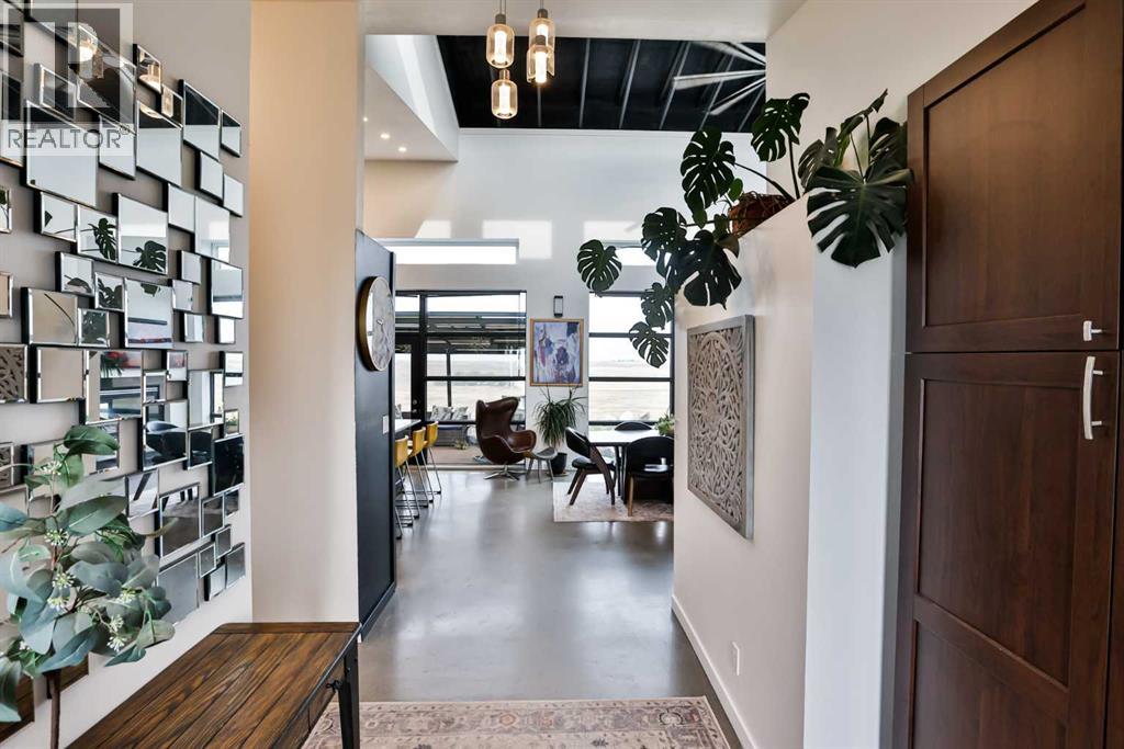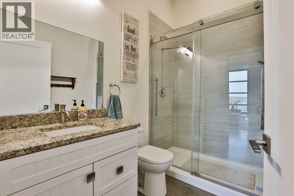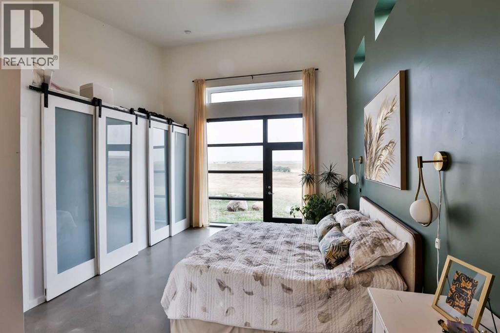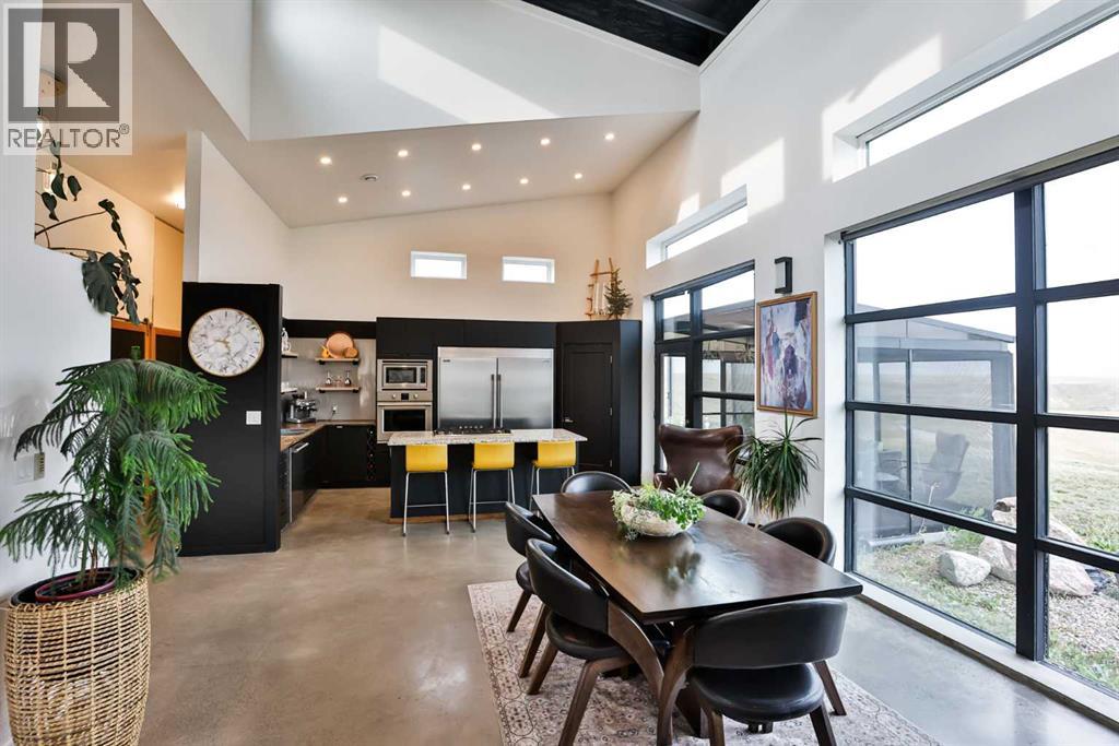 Welcome to 309 Alta Vista Blvd., a modern ranch-style oasis perfectly situated on 13.49 picturesque acres in Carmangay, Alberta. Backing onto the serene Coulee and the soothing flow of Little Bow River, this property offers the intimate charm of small-town living with all the comforts of modern design—only 40 minutes from Lethbridge and 15 minutes from Vulcan.Built in 2018, the slightly over 1,700 ft² bungalow marries contemporary style with top-tier construction. The home features durable ICF block walls paired with Lux triple pane windows and spray foam insulation, ensuring energy efficiency and year-round comfort. Enjoy the luxury of in-floor heating and a state-of-the-art HRV system that circulates fresh air throughout the residence. An on-demand hot water system and 200 amp service. Step inside to discover a modern aesthetic defined by concrete floors, a shed roof vault design with additional transom windows, and a striking three-sided fireplace that creates a captivating focal point in the living area. The expansive kitchen is designed for the modern chef, boasting a built-in fridge & freezer, wall oven & microwave, five-burner gas cooktop, butcher block countertops, granite counters, stainless steel backsplash, and a convenient corner pantry—perfect for gourmet gatherings and everyday meal prep.The soaring ceilings flow gracefully into the primary bedroom, a tranquil retreat with awe-inspiring views of the coulee. Elegant barn doors separate the spacious closets, the ensuite has double sinks, a large tiled shower and a thoughtfully placed window flood the space with natural light. Two additional bedrooms, divided by a stylish black metal and glass barn door, share a full bathroom featuring a generous five-foot tile shower, ensuring ample space for family or guests. Practicality meets design with abundant built-in storage right from the welcoming entrance, complemented by a laundry room and a discreet mechanical room tucked behind the kitchen. For those loo king to harness the beauty of nature, the property offers access to the river. All the conveniences of modern town living are at your fingertips with in-town water. Outside, enjoy low maintenance yet eye-catching curb appeal. The exterior is finished in dark, rich colours accented with textured steel details. A detached triple-car garage spans an impressive 32 feet wide by 24 feet deep, featuring three overhead doors—one operated remotely—for all your storage and vehicle needs. Between the home and garage, a specially protected area hosts a hot tub, windscreen, and fire pit area, creating an ideal outdoor retreat.The natural landscaping around the house artfully blends with the surrounding coulees. Larger decorative shrubs add captivating texture while maintaining a seamless connection to the land, making this property a perfect sanctuary for those who appreciate modern comforts amid rustic beauty. (id:63190)
