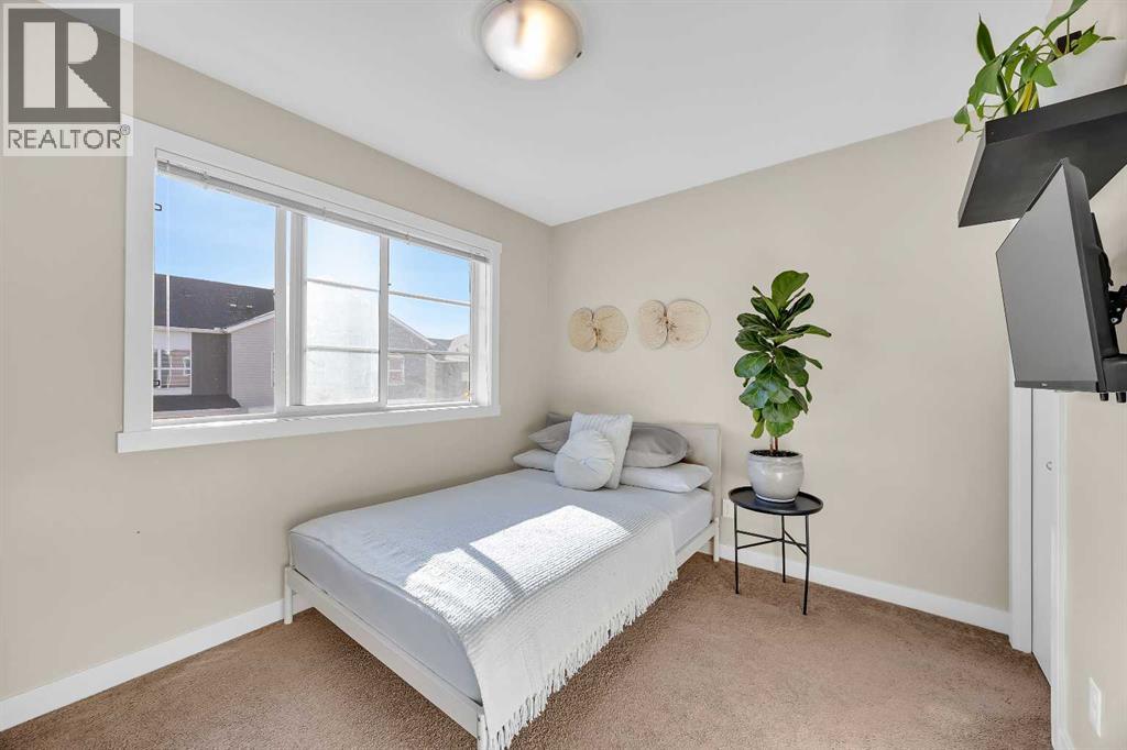 Welcome to this well-maintained corner end-unit townhome in Redstone offering 4 bedrooms, 2.5 bathrooms, and a single attached garage with a full driveway for additional parking. With windows on multiple sides, this home is filled with natural light and benefits from its desirable corner location.The ground level features a versatile fourth bedroom that works perfectly as a home office, guest room, or flex space. Upstairs, the main living level showcases an open-concept layout with wide plank laminate flooring, a functional kitchen with island, spacious dining area, and bright living room with direct access to the balcony — ideal for relaxing or summer BBQs.The upper level offers three additional bedrooms, including a primary suite with its own ensuite, plus another full bathroom for added convenience.Visitor parking is located right beside the unit, making it easy for guests. Situated with quick access to Metis Trail, Stoney Trail, and Deerfoot, commuting is effortless. Calgary International Airport, CrossIron Mills, and Saddletowne LRT are all just a short drive away.A practical layout, strong location, and corner-unit advantage make this a solid opportunity in a growing community. (id:63190)