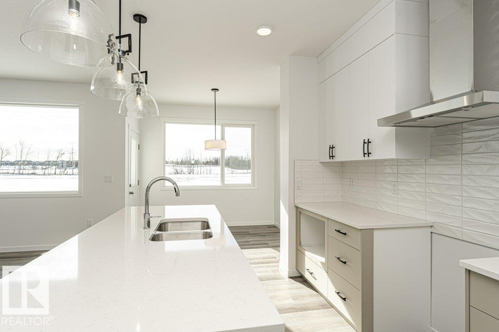 Introducing a spacious 2-storey home built by Anthem, in the vibrant, amenity-rich community of McConachie, located on the north side of Edmonton! This beautiful home offers 1 bedroom on Main Floor, SIDE Entry for Basement, 3 Bedrooms and a Bonus Room on Upstairs, Quartz Counter Tops, Front Double Attached Garage, Vinyl Flooring on main floor, in bathrooms, in laundry room and Carpet on Upper Floor, Convenient Upper Floor Laundry with linen shelf, Stunning lighting fixtures, His/Hers sinks in Ensuite, Walk Thru Pantry, Large dining area, Bright living room, Steps away from pond, Stainless Steel Kitchen Appliances, Fireplace, Open concept main floor maximizes space.*Home is still under construction. *Photos of previous build, interior colors are represented. *Actual colors and upgrades may vary. (id:63190)